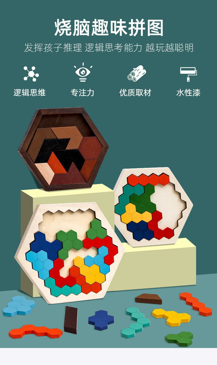 나무 어린이 퍼즐 테트리스 논리적 사고 훈련 벌집 육각형 퍼즐 재미있는 빌딩 블록스토어 가기