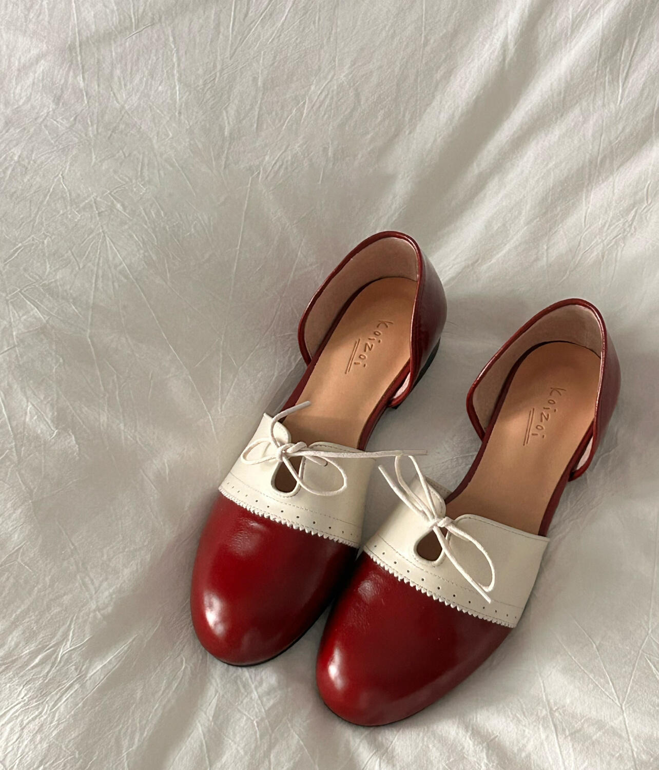 Cowhide 버전 ~ Retro 영국 스타일 브록 레이스 업 할로우 작은 가죽 신발 여성용 샌들 라운드 발가락 두꺼운 힐 로우 싱글 레이어 신발