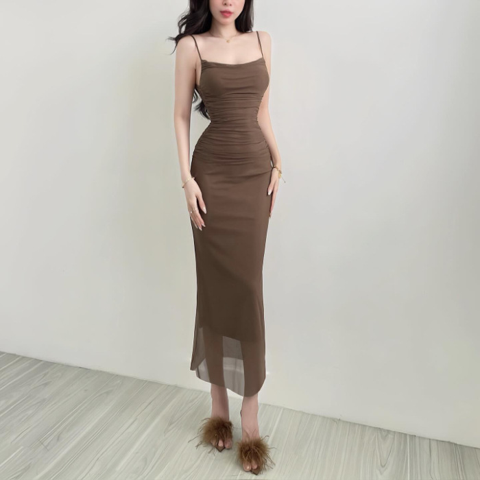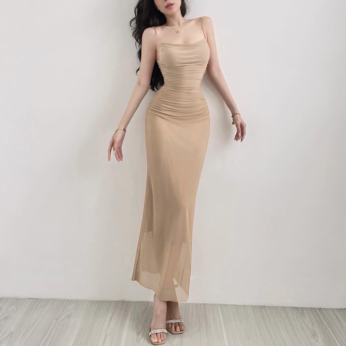국경 간 대외 무역 도매 여름 미국 순수한 욕망 섹시한 슬림 슬림 소매 슬링 원피스 여성용 긴 스커트