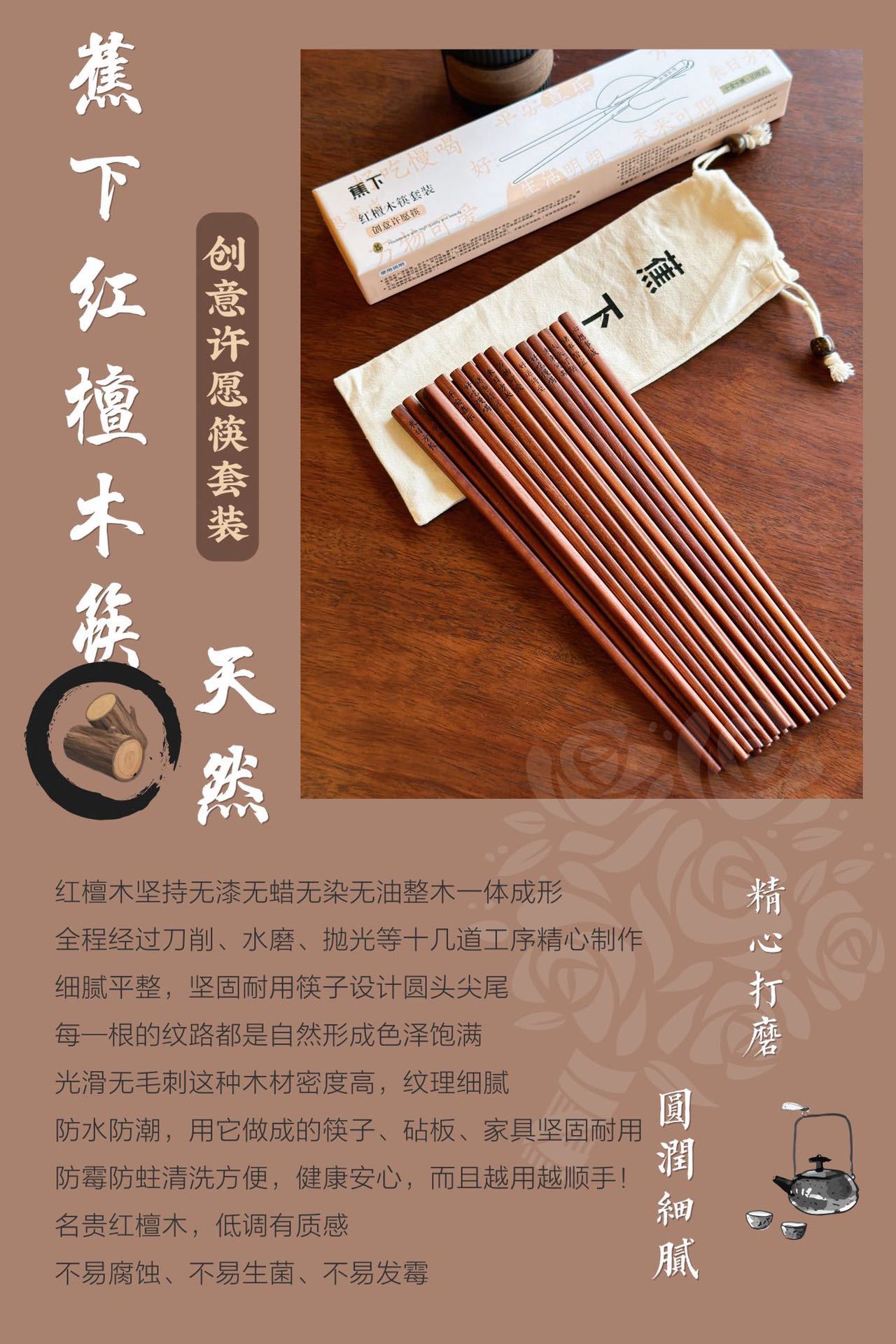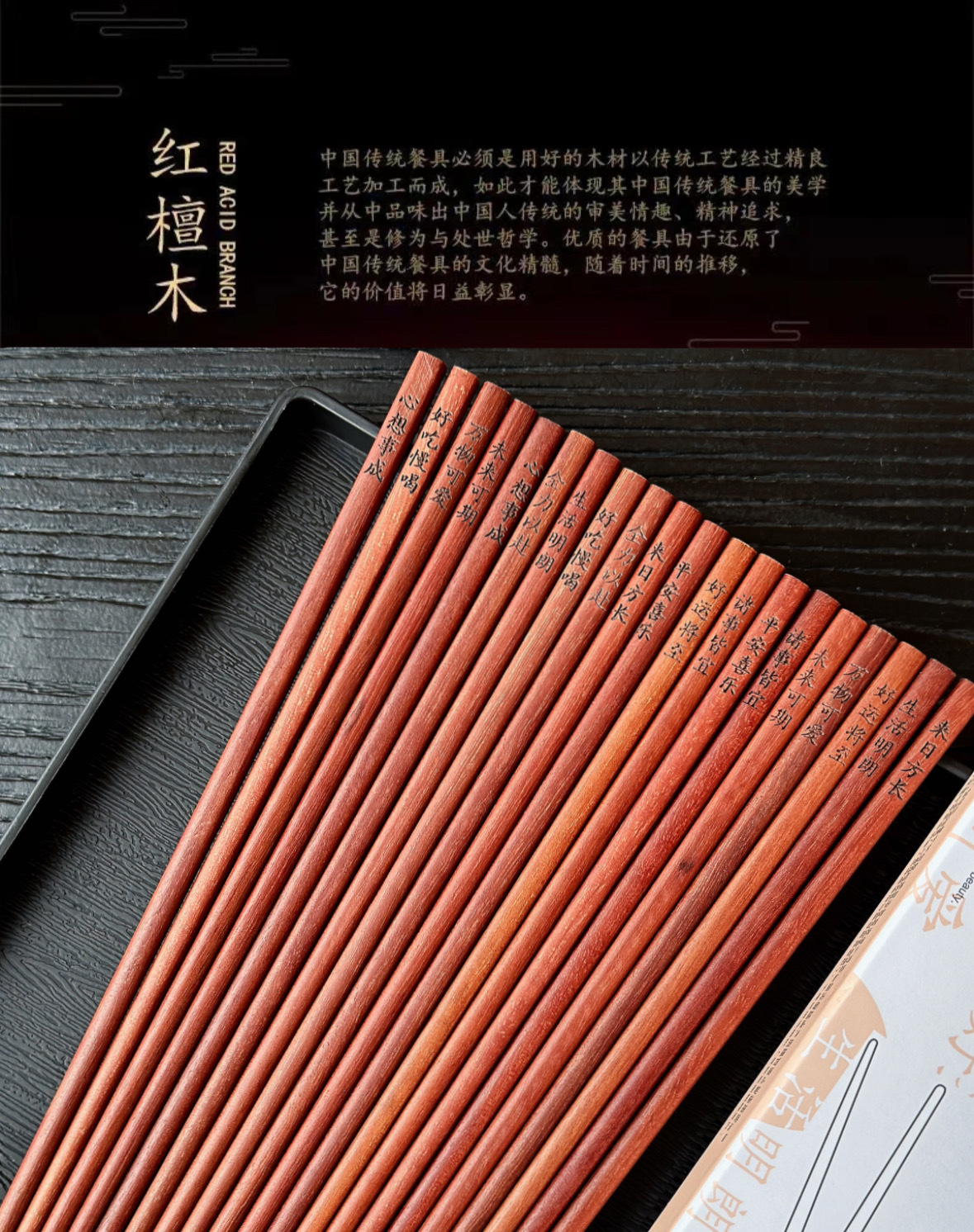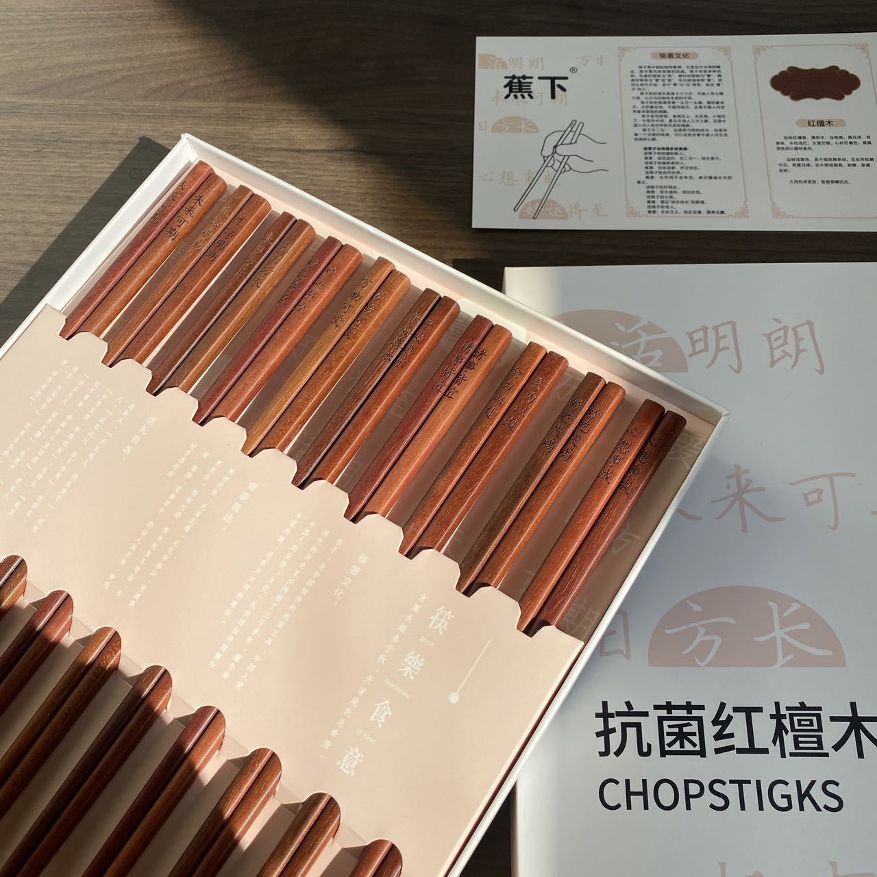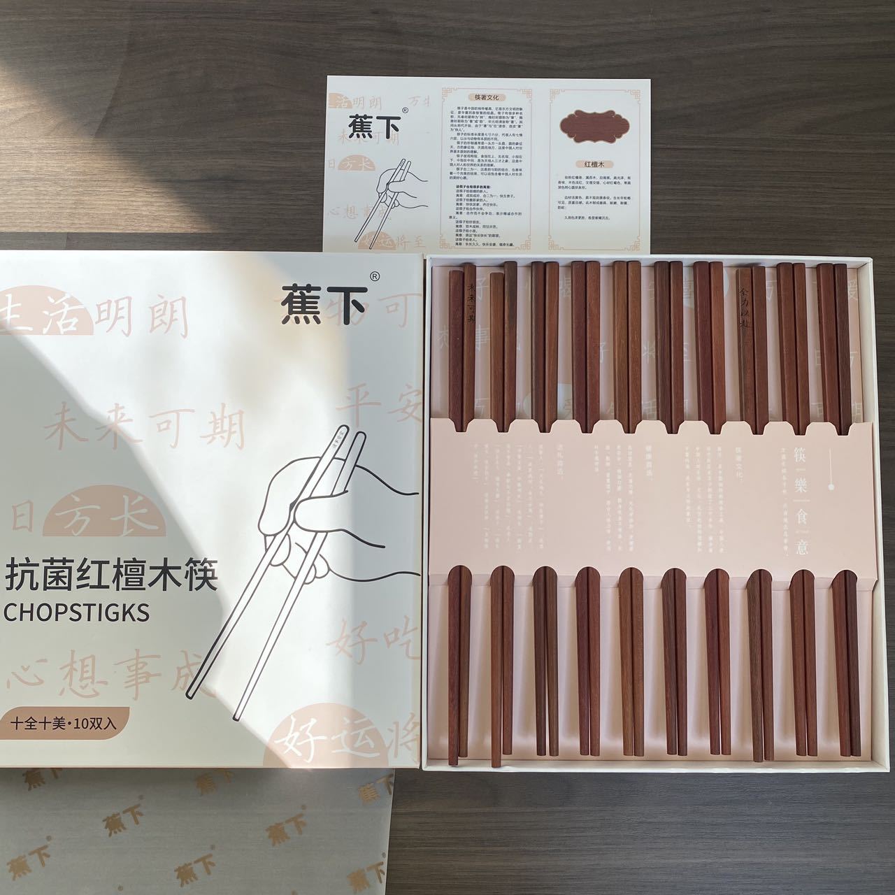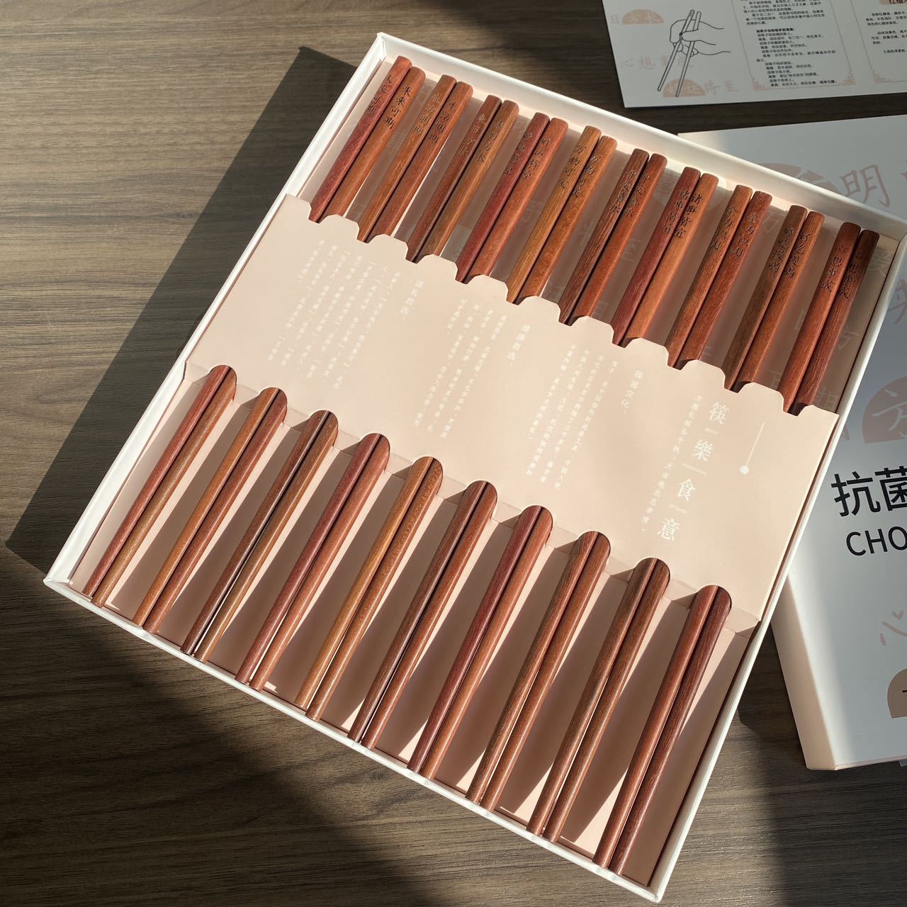BANANAUNDER 레드 샌달 우드 젓가락 세트 10 쌍의 선물 상자 창의적인 소원 젓가락 선물-좋은 도덕적 비 옻칠 고급 통나무 제공