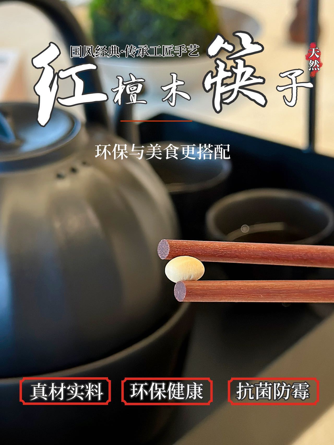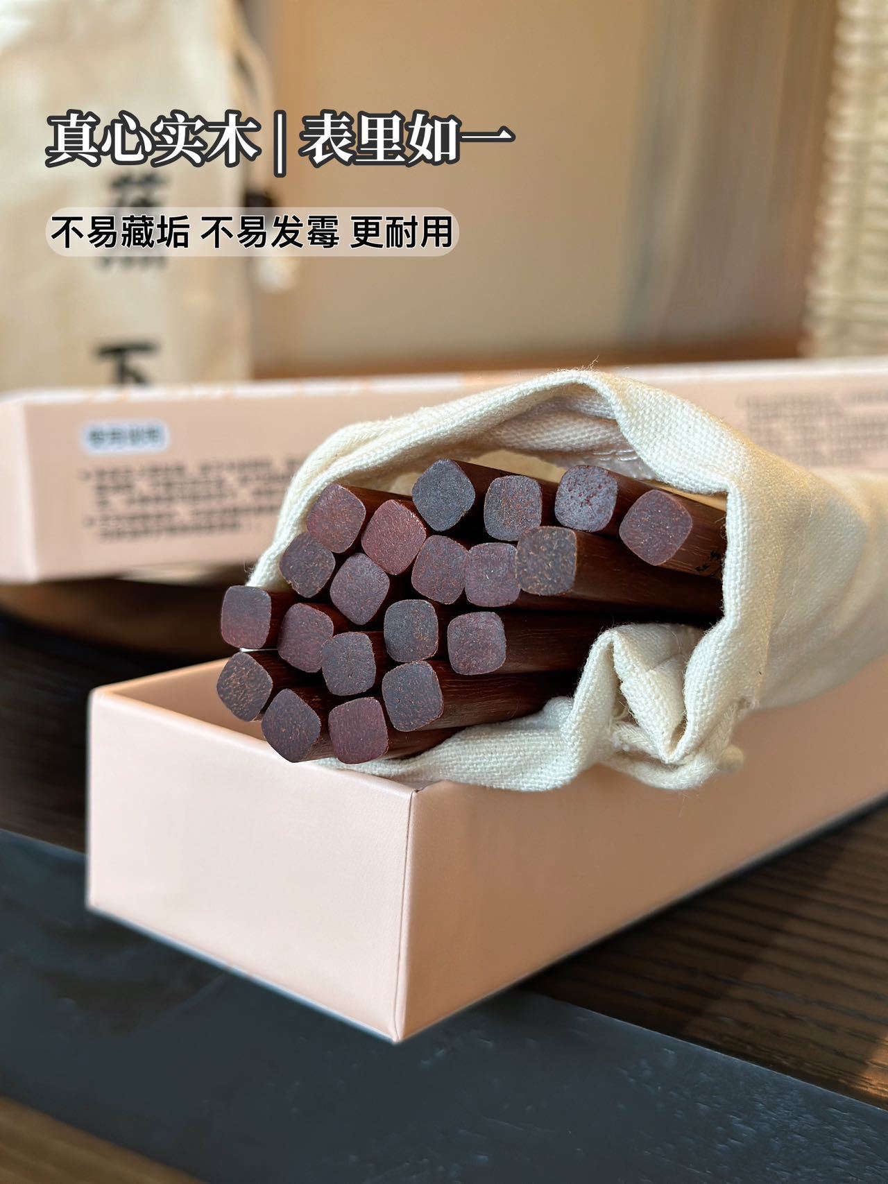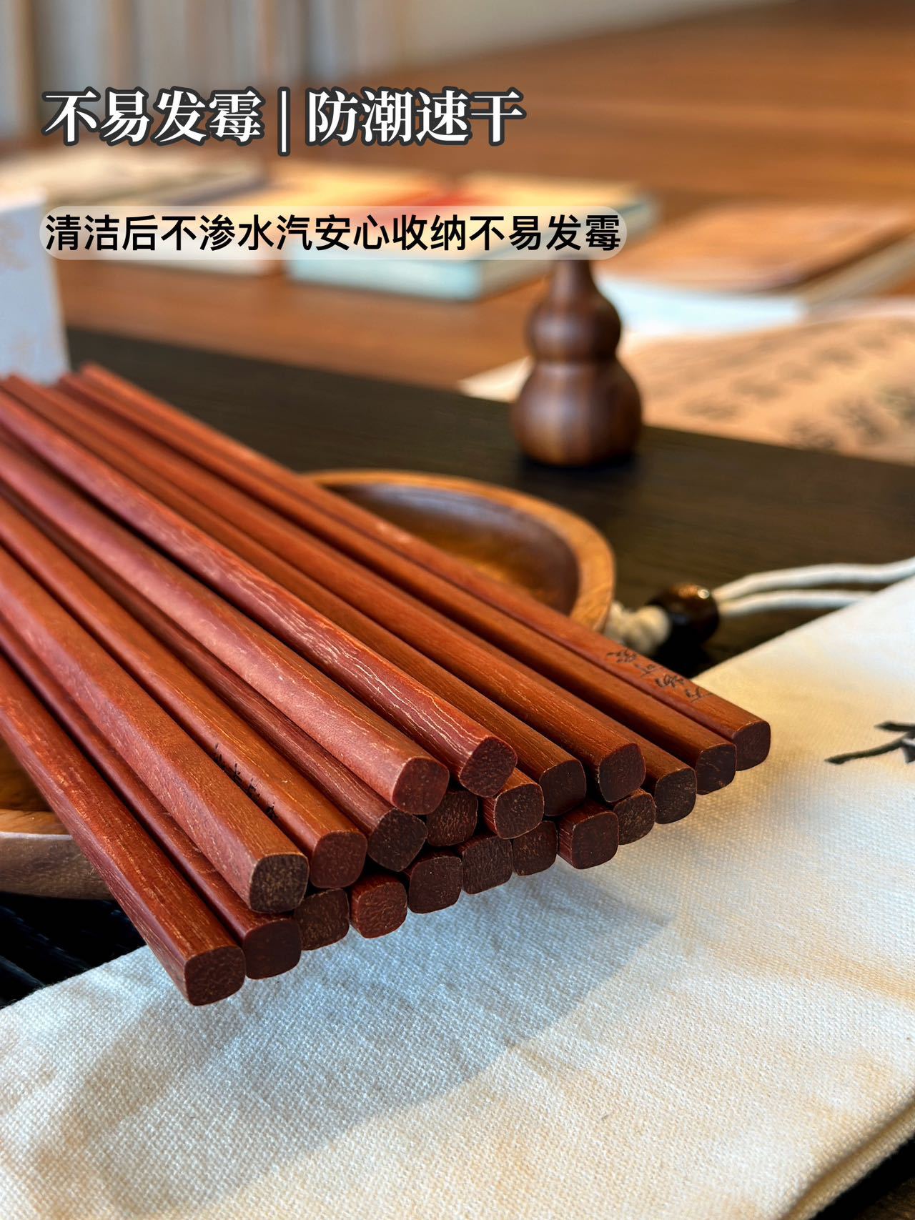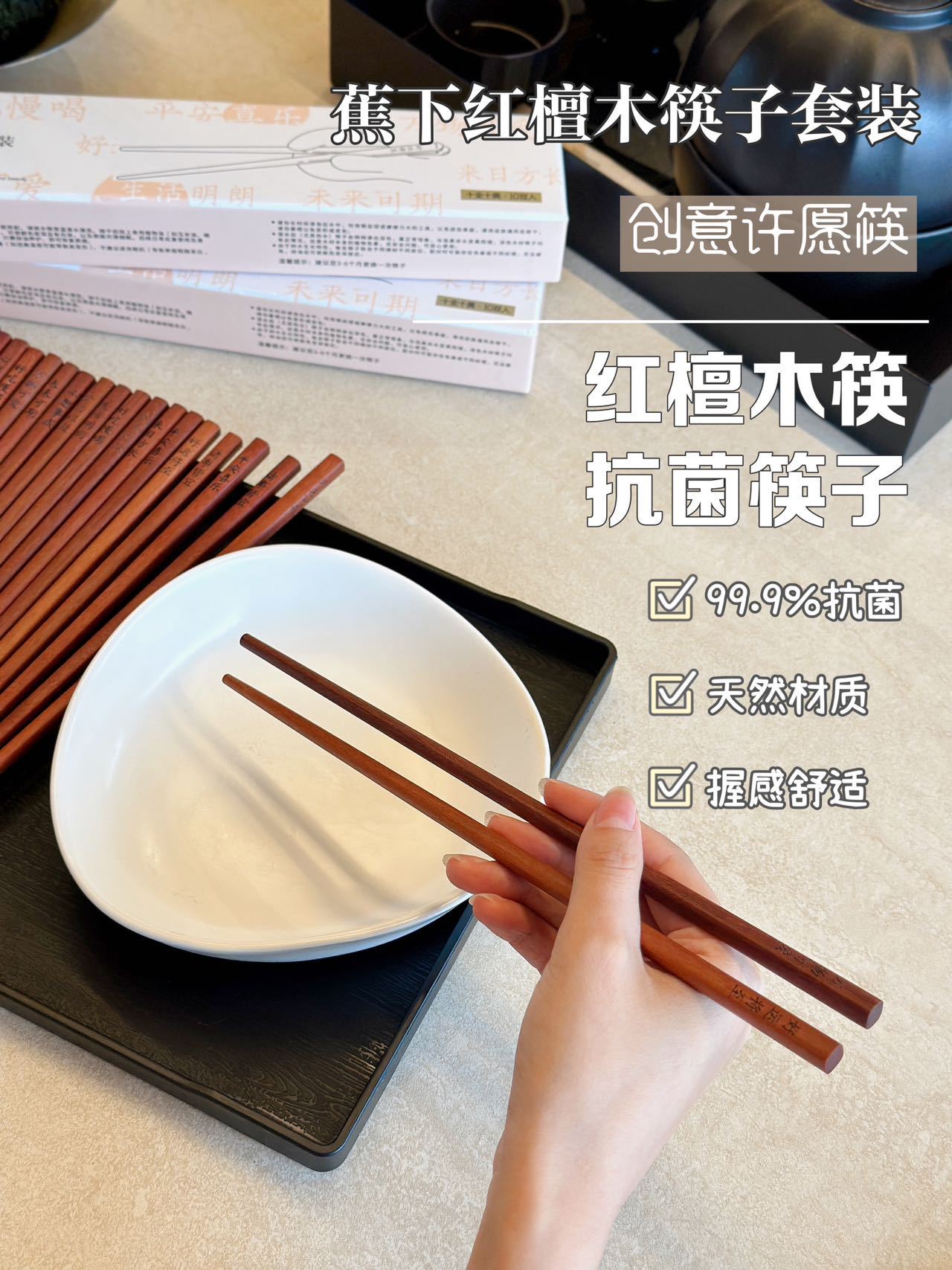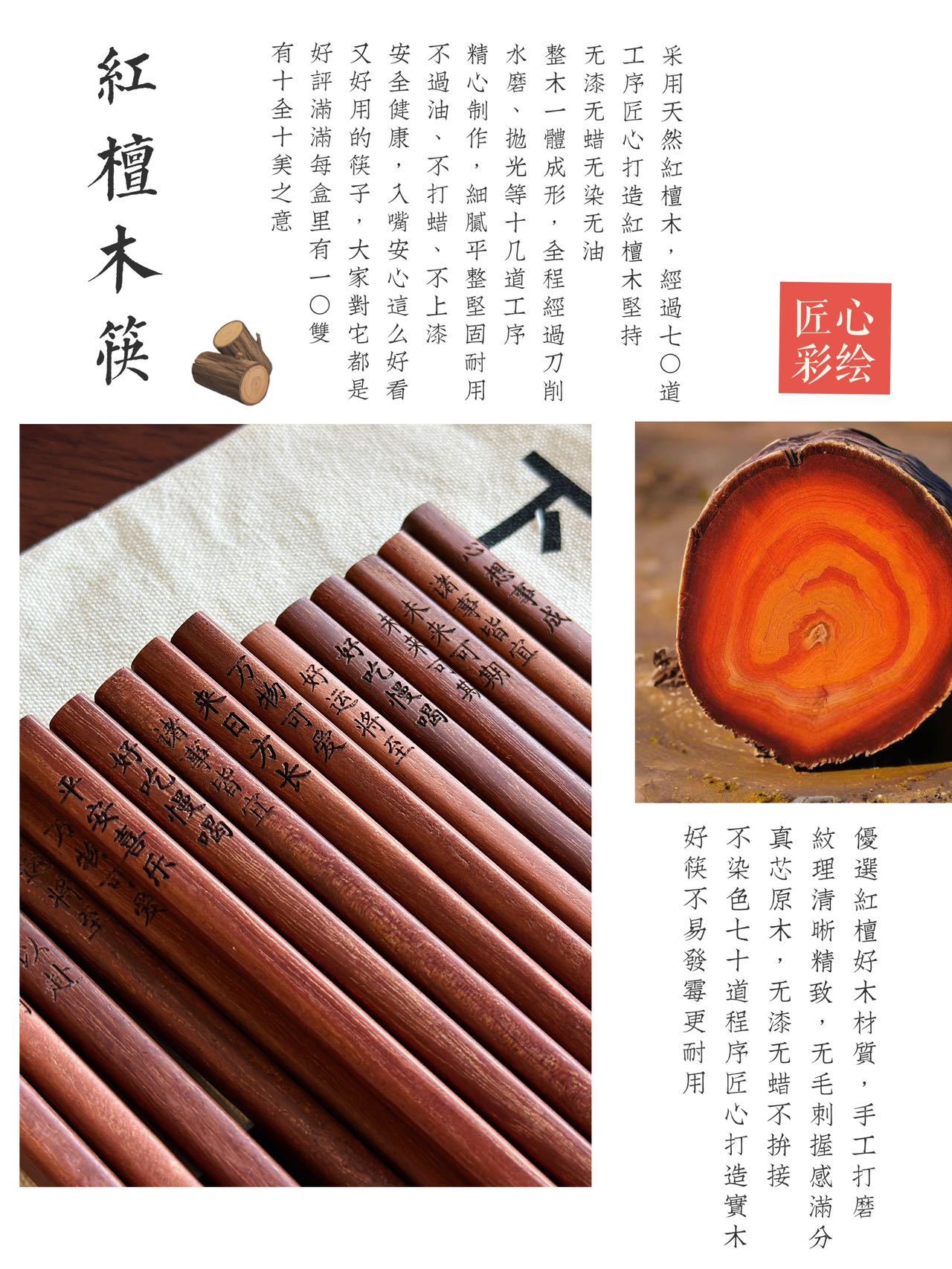 BANANAUNDER 레드 샌달 우드 젓가락 세트 10 쌍의 선물 상자 창의적인 소원 젓가락 선물-좋은 도덕적 비 옻칠 고급 통나무 제공