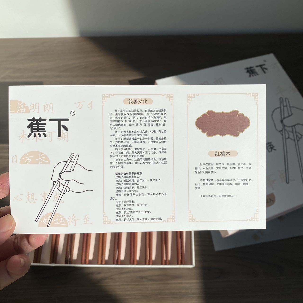 BANANAUNDER 레드 샌달 우드 젓가락 세트 10 쌍의 선물 상자 창의적인 소원 젓가락 선물-좋은 도덕적 비 옻칠 고급 통나무 제공스토어 가기