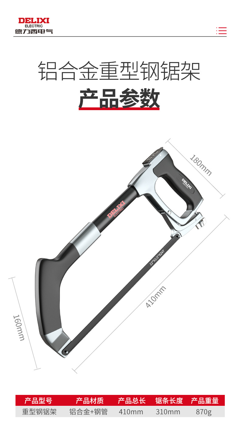 • Delixi 강력한 쇠톱 + 탄소강 톱날 5개