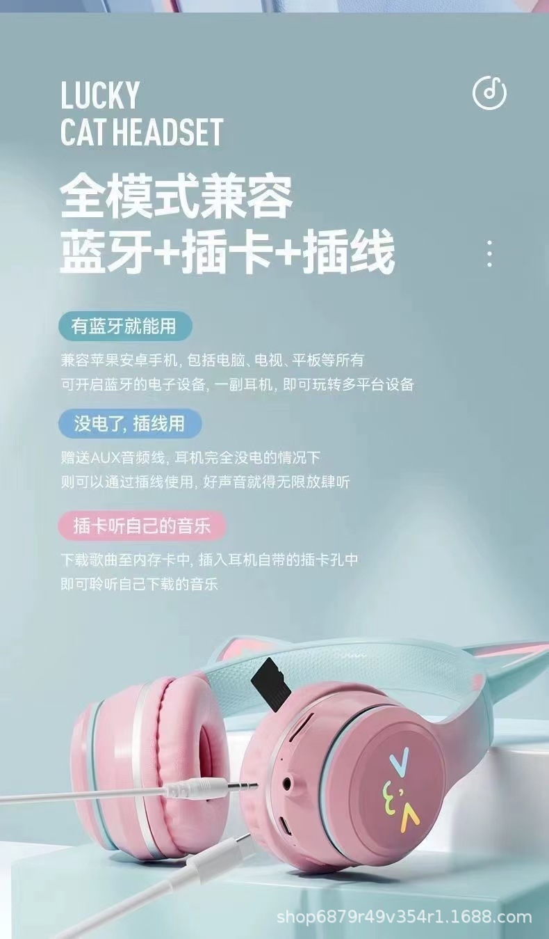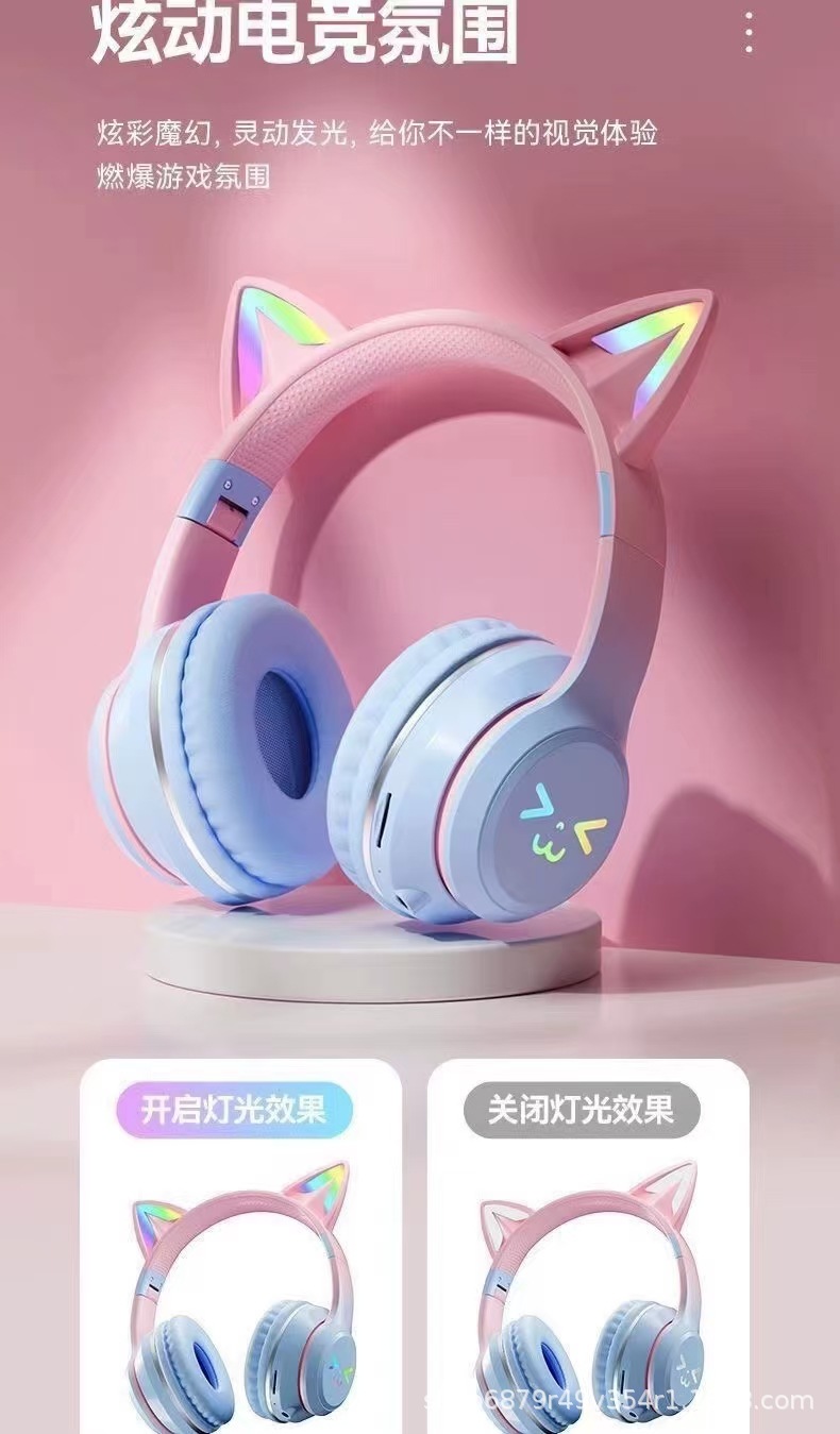 2025 새로운 BT618 귀여운 고양이 귀 헤드셋 무선 블루투스 헤드셋 긴 내구성 제조 업체 도매 스트레이트