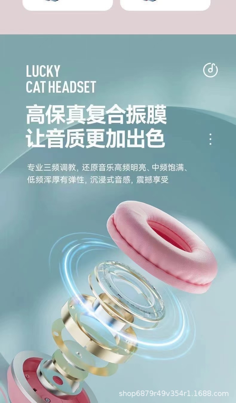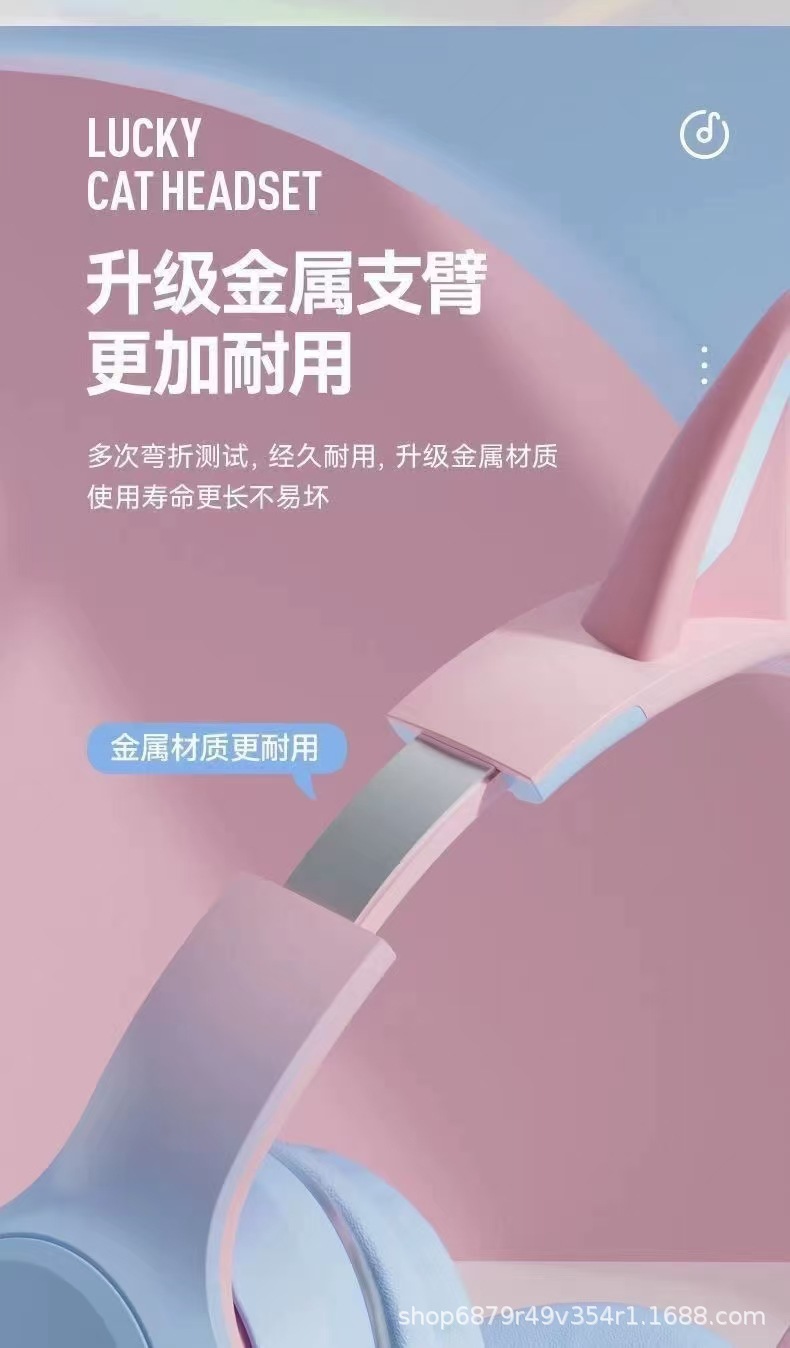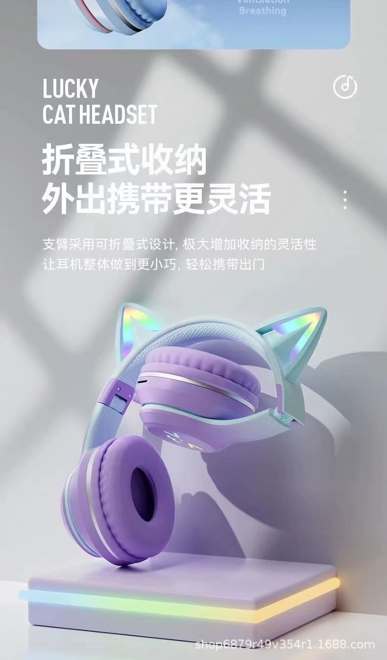 2025 새로운 BT618 귀여운 고양이 귀 헤드셋 무선 블루투스 헤드셋 긴 내구성 제조 업체 도매 스트레이트스토어 가기