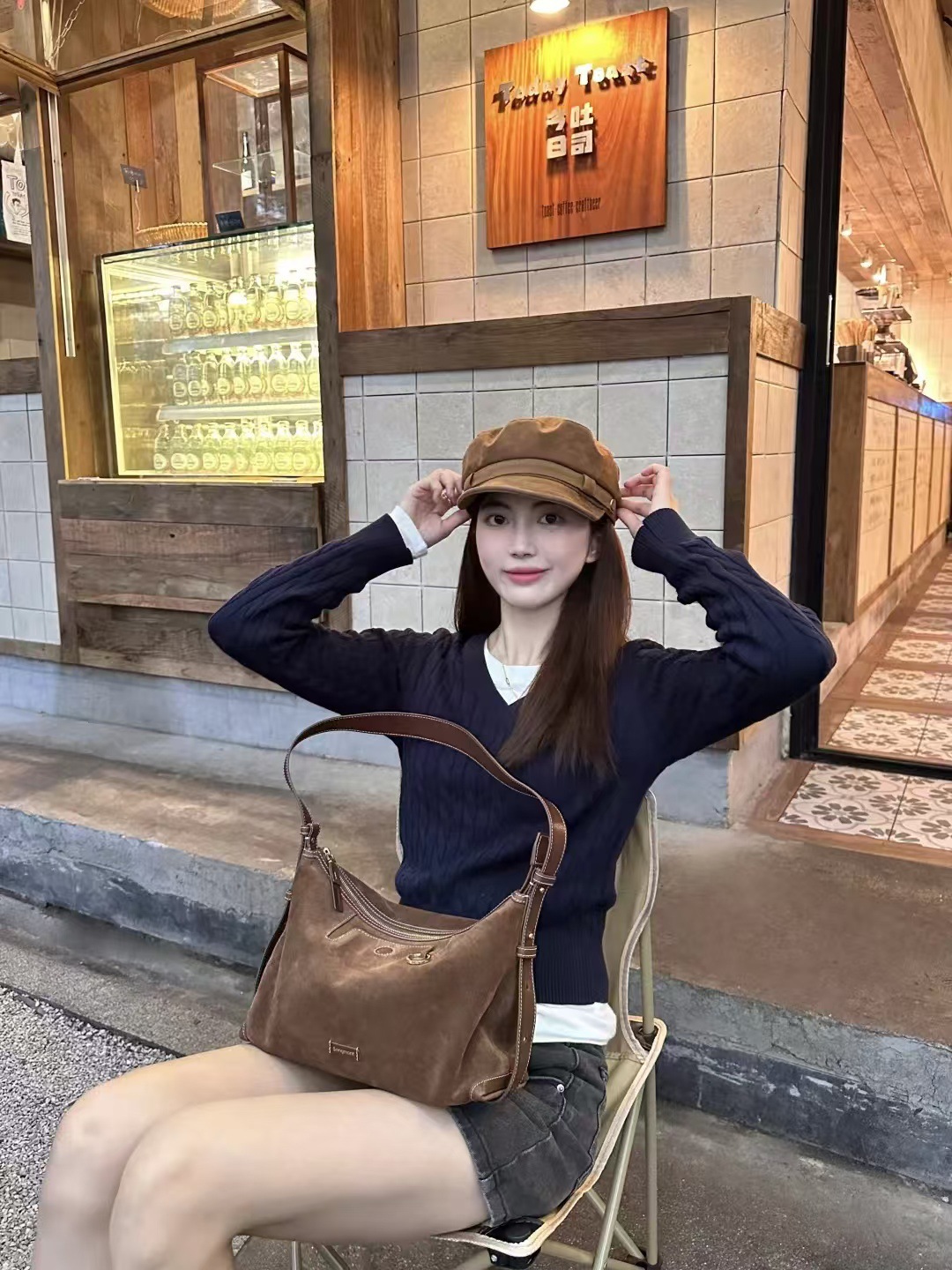 송몬트 마운틴 루즈 추적 시리즈 얕은 라인 호보 스웨이드 언더 암 통근 가방 가을 겨울 여성용 만두 백