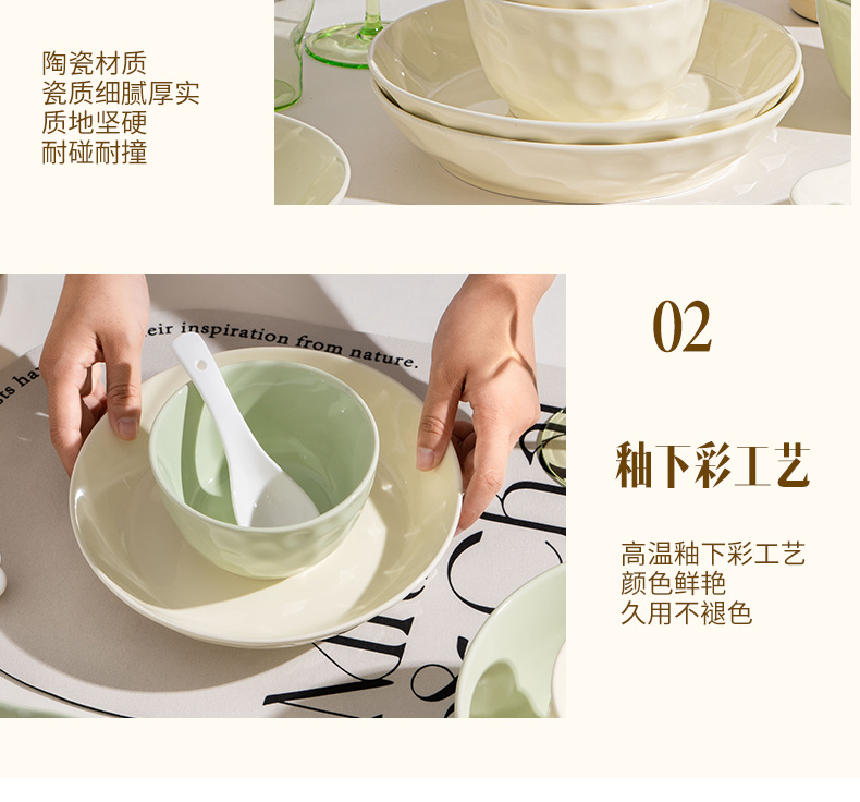크림 스타일 세라믹 그릇 가정용 2024 새로운 스타일 인터넷 식탁 고색 가치 요리와 접시 조합 간단한 밥 그릇 접시스토어 가기