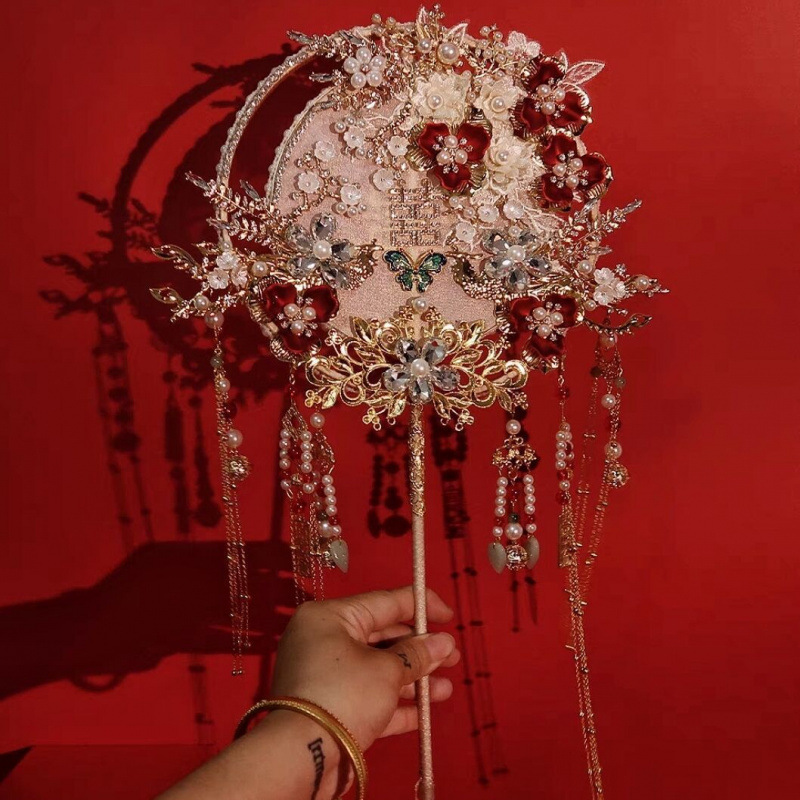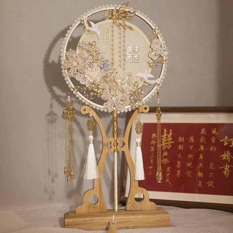 Tuuan 팬 웨딩 신부 Xiuhe 소재 가방 중국 스타일 웨딩 Xi 팬 명나라 수제 웨딩 팬 완료 양면
