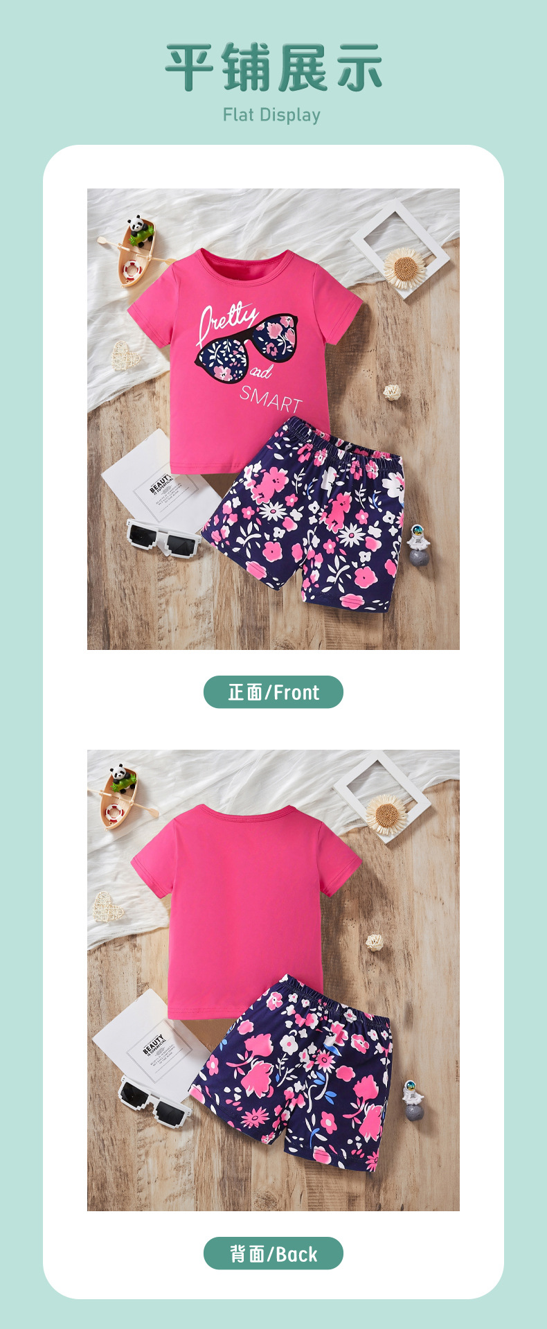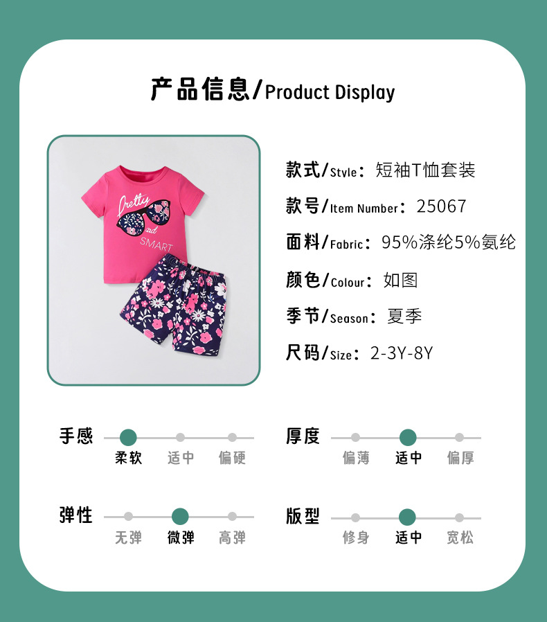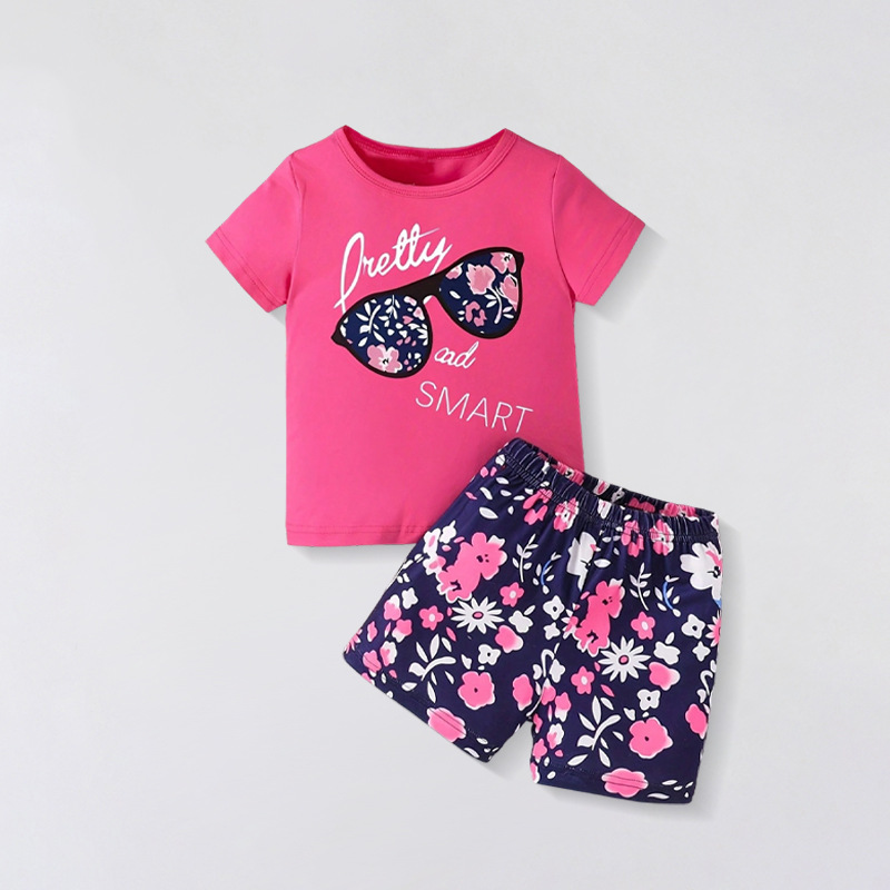 2025 여름 새로운 어린이 반팔 반바지 세트 패션 귀여운 소녀 투피스 작은 꽃 의류스토어 가기