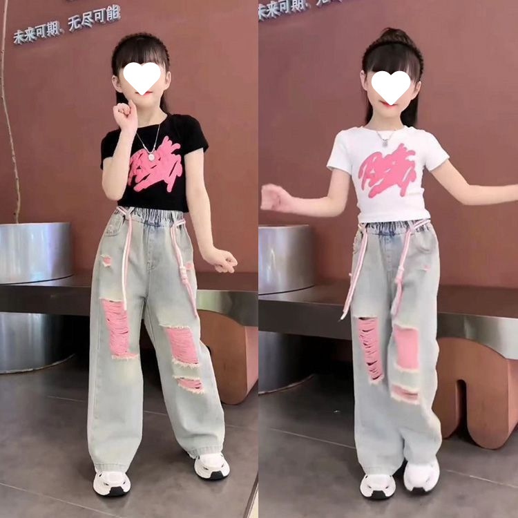 [반복 고객 1,000 명 이상] 여자 여름 세트 2025 새로운 외국식 소녀 짧은 소매 중학생 조수 소스토어 가기
