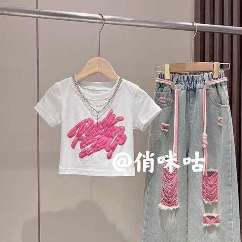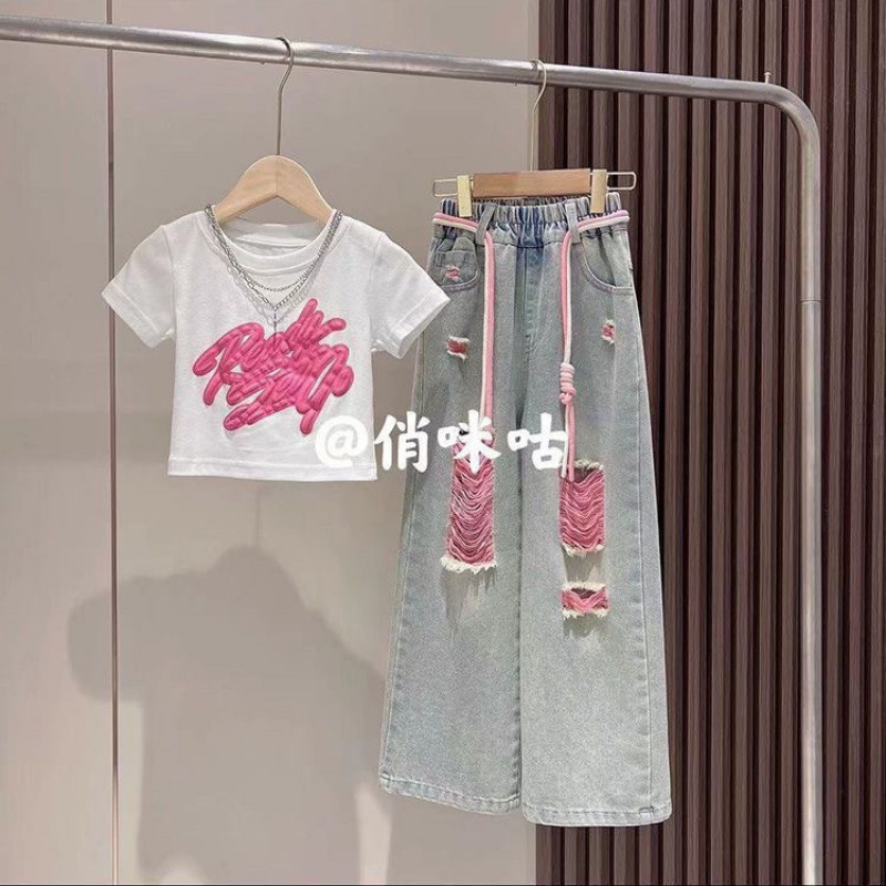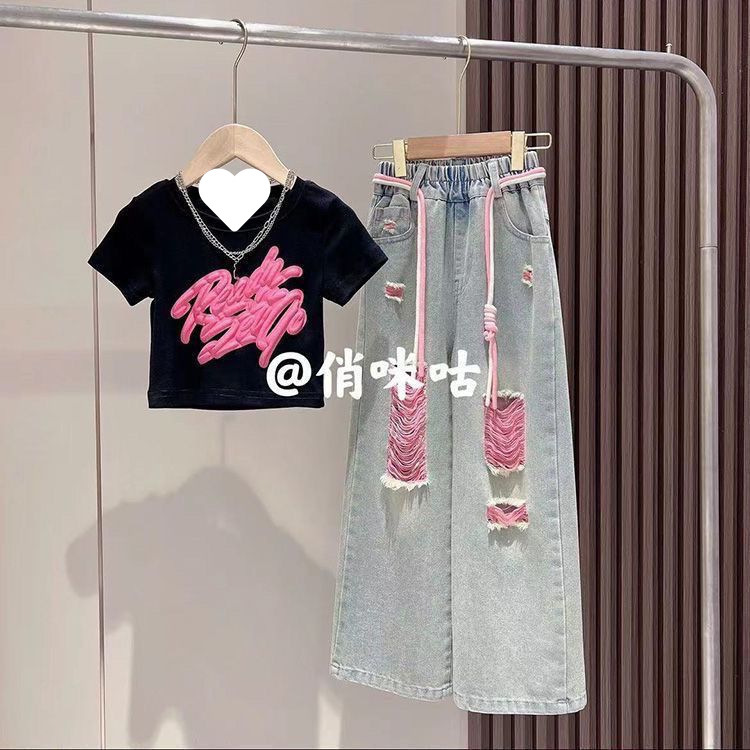 [반복 고객 1,000 명 이상] 여자 여름 세트 2025 새로운 외국식 소녀 짧은 소매 중학생 조수 소