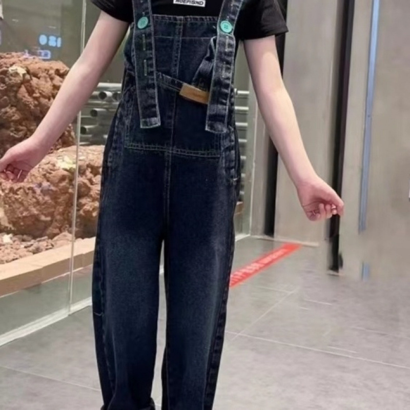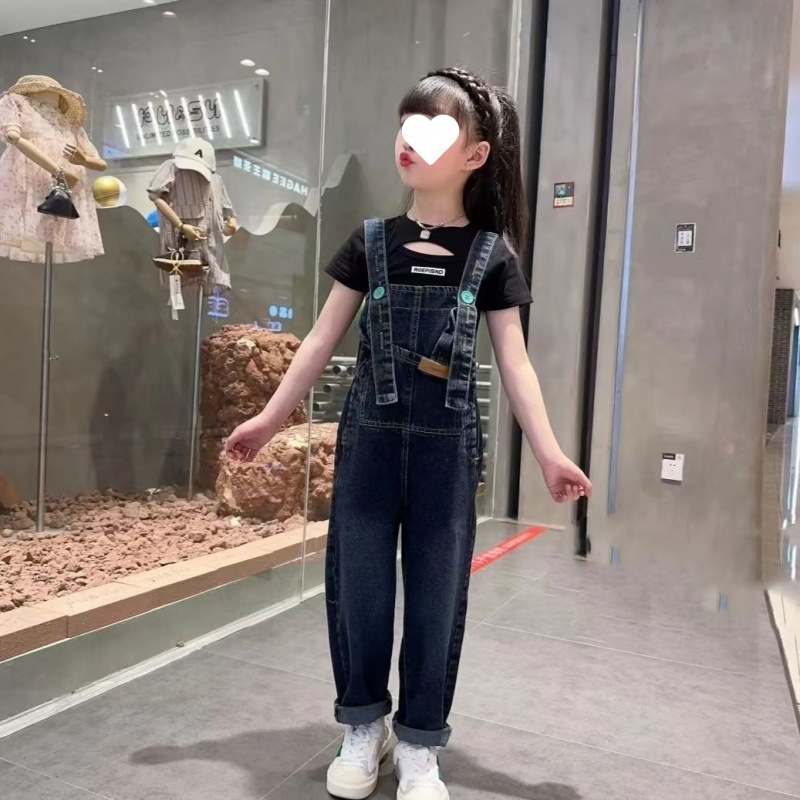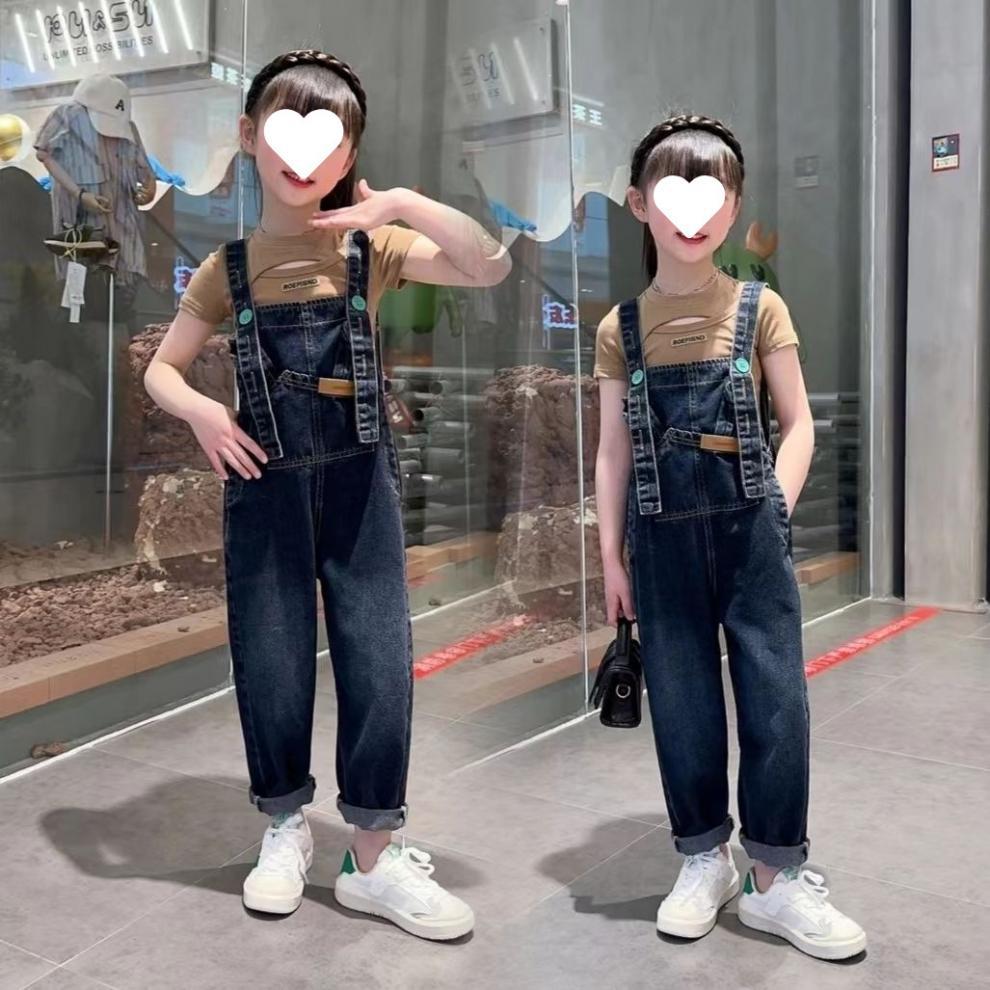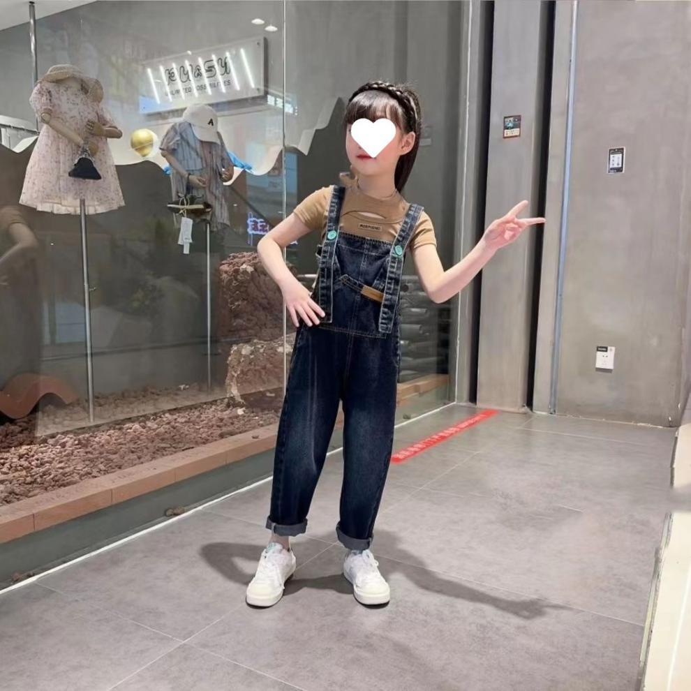 소녀의 봄과 여름 청바지 어린이 세련된 여름 서스펜더 바지 한국 캐주얼 여름 원피스 소녀 큰 어린이 서스펜더 바지스토어 가기
