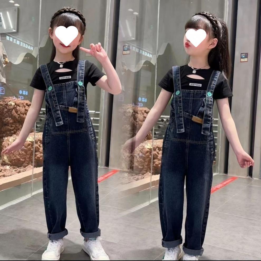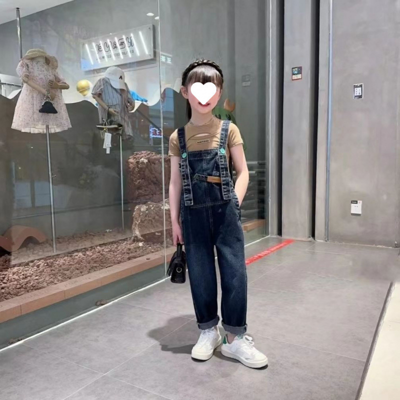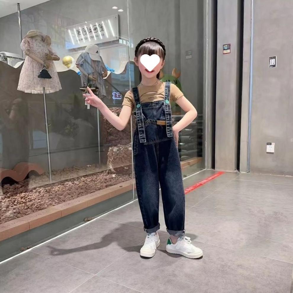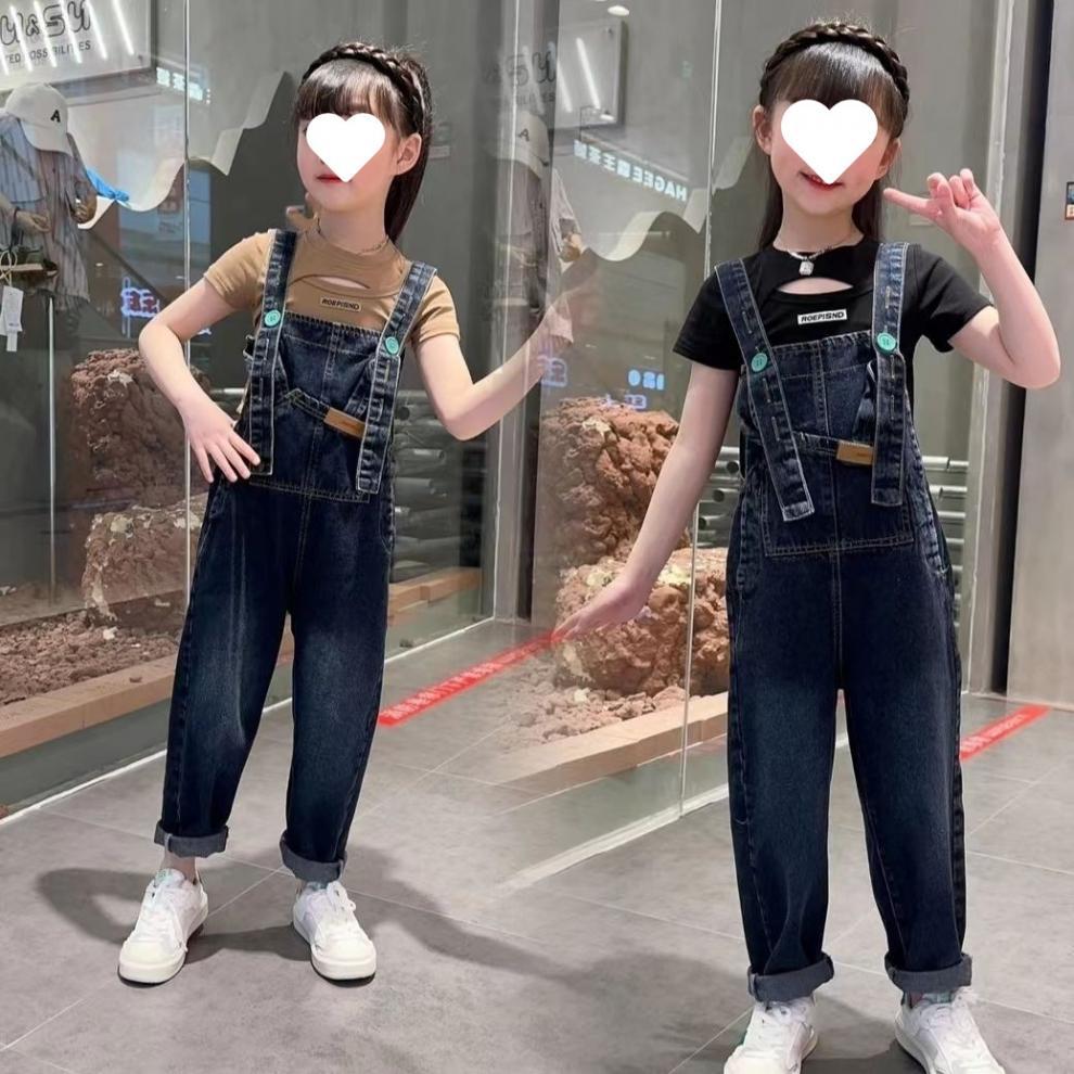 소녀의 봄과 여름 청바지 어린이 세련된 여름 서스펜더 바지 한국 캐주얼 여름 원피스 소녀 큰 어린이 서스펜더 바지스토어 가기