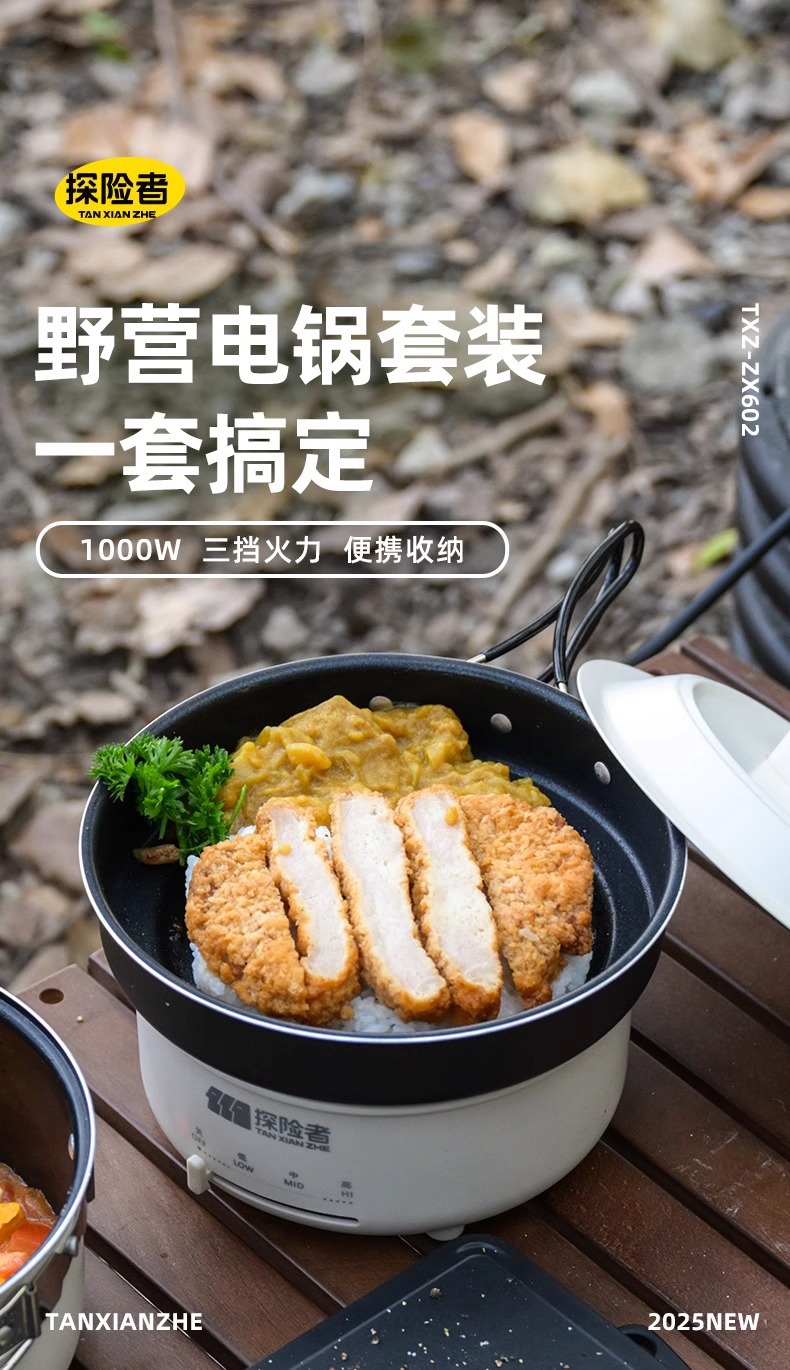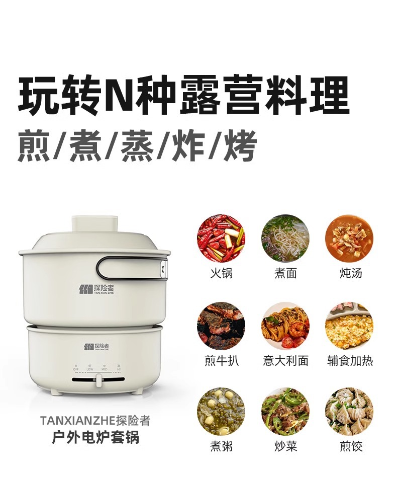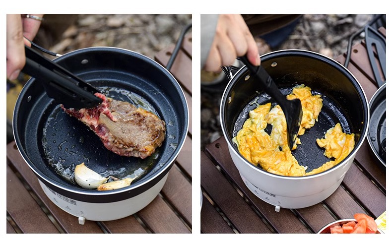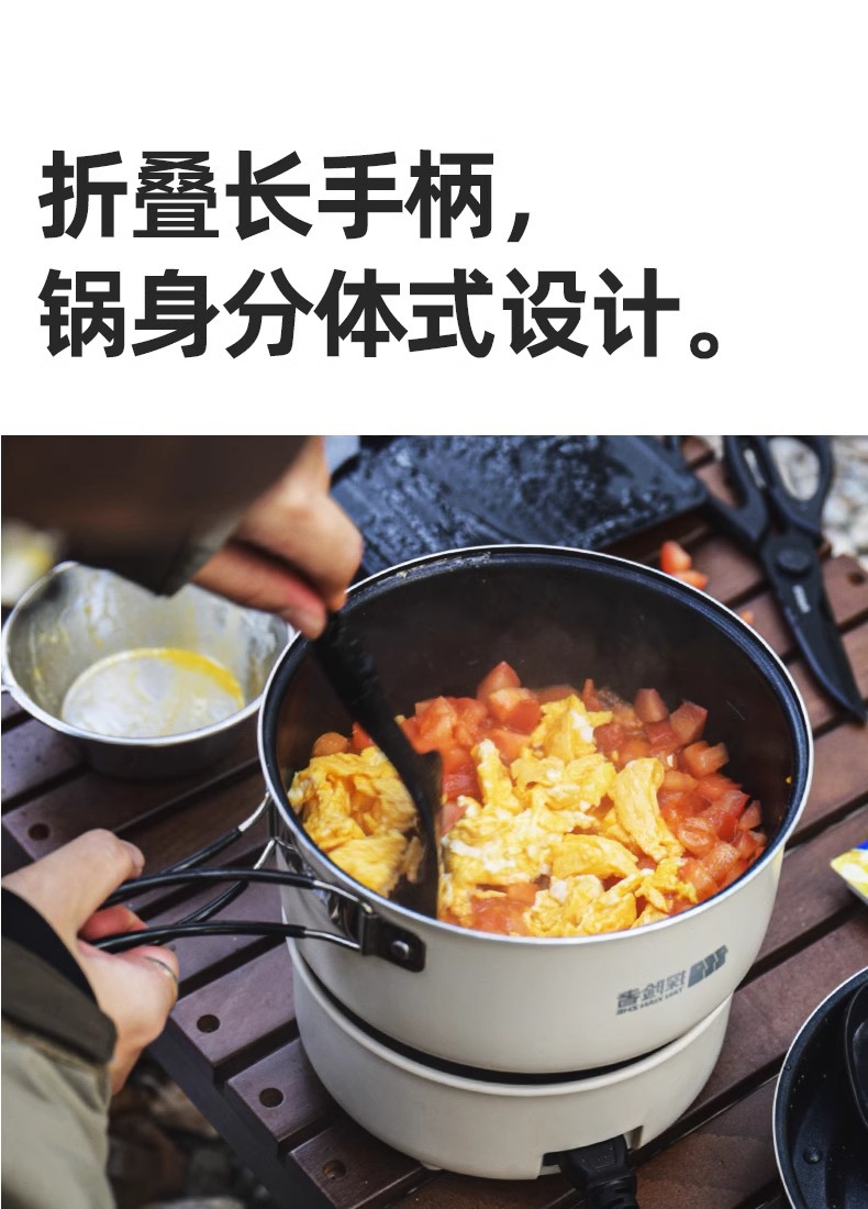 탐색기 캠핑 접이식 냄비 조리기구 휴대용 여행 작은 다기능 전기 요리 냄비 튀김 및 볶음 분할 전기 뜨거운 냄비
