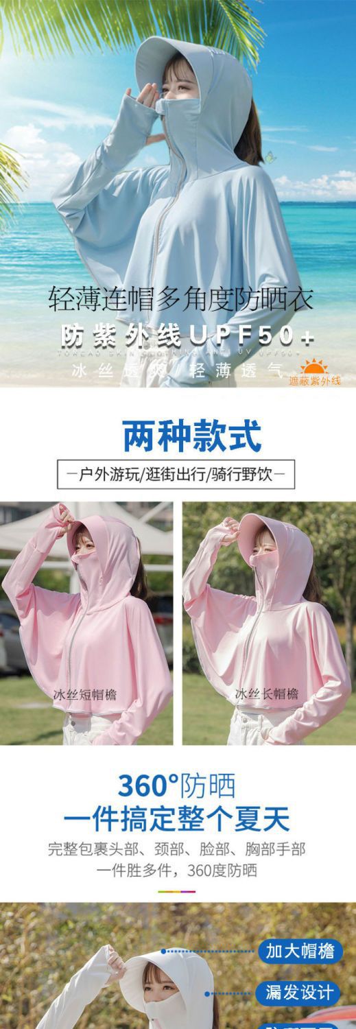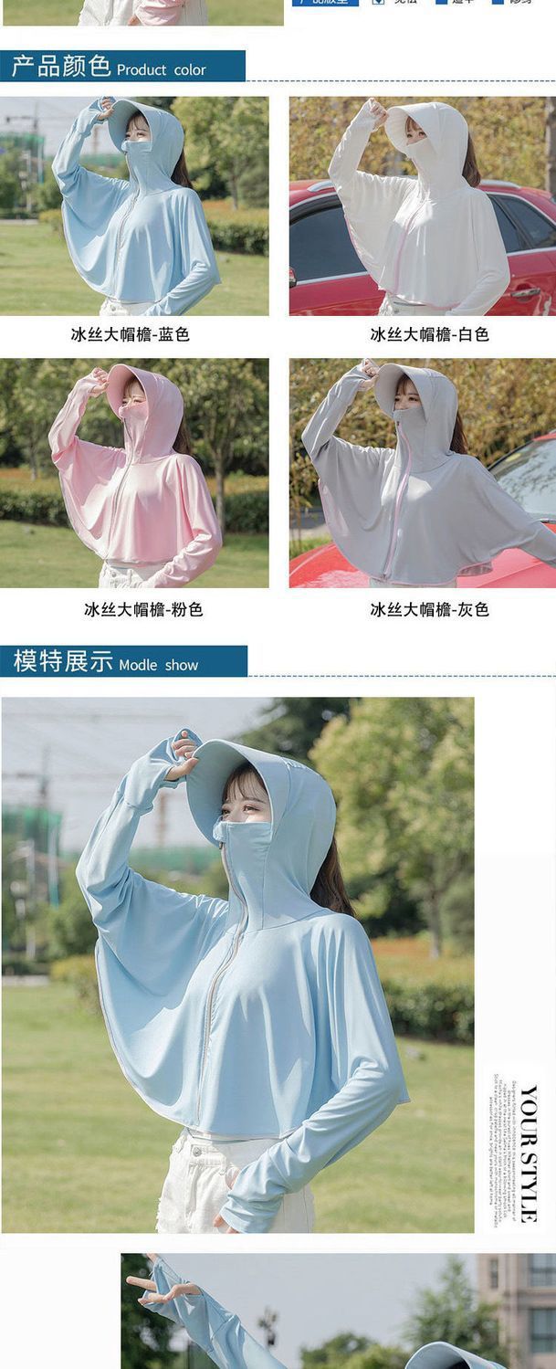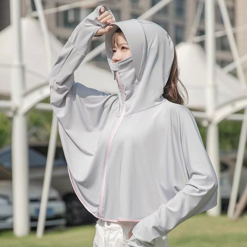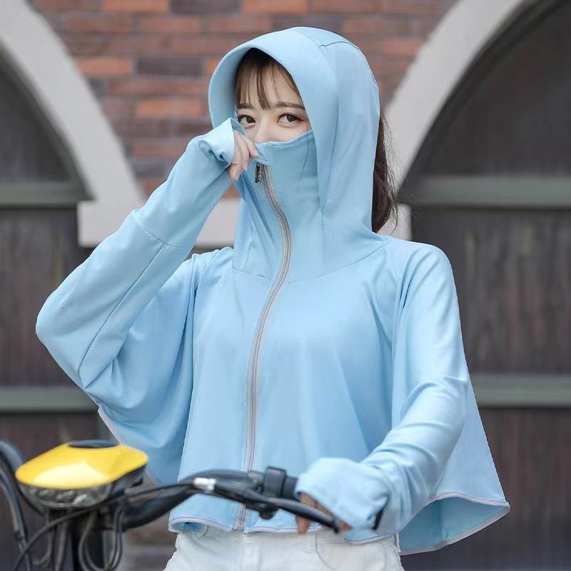 선스크린 옷 여성용 외부 착용 아이스 실크 마스크 모자 새 여름 얇은 긴팔 재킷 사이클링 안티 록스토어 가기