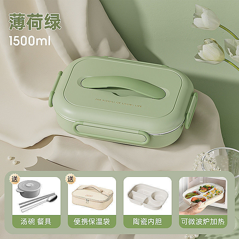 • ◆민트그린[스테인리스] 1.5L 4칸 + 그릇, 젓가락◆