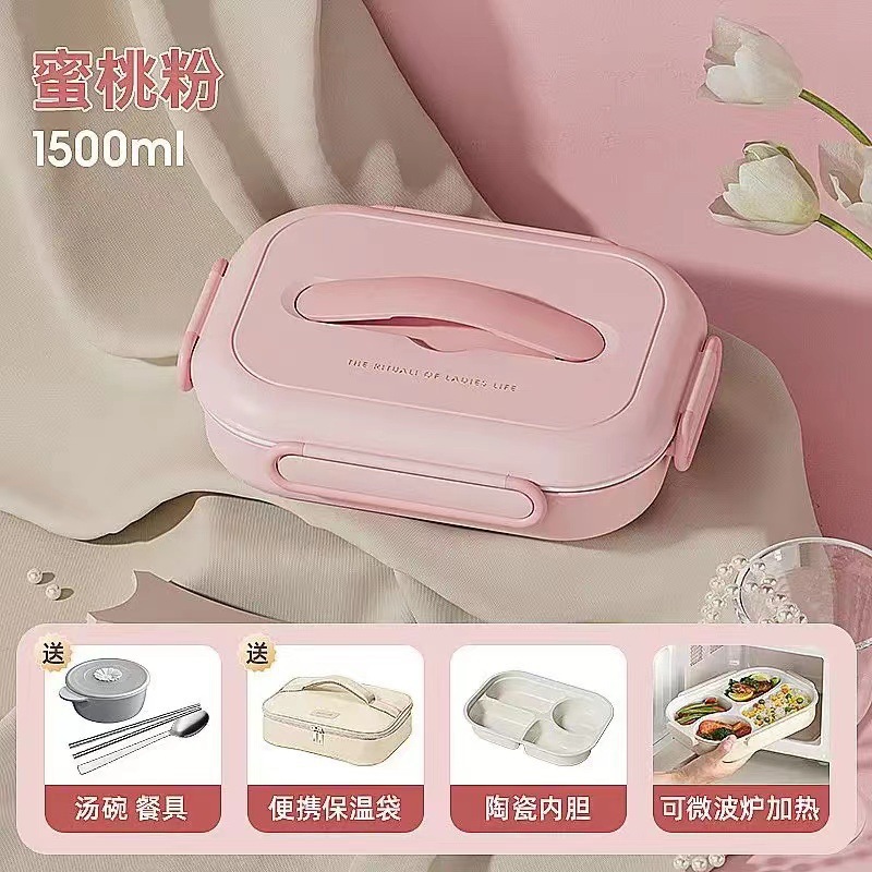 어린이와 학생 세라믹 스테인레스 스틸 절연 도시락 사무실 노동자 전자 레인지 난방 플레이트 구획 도시락 지금스토어 가기