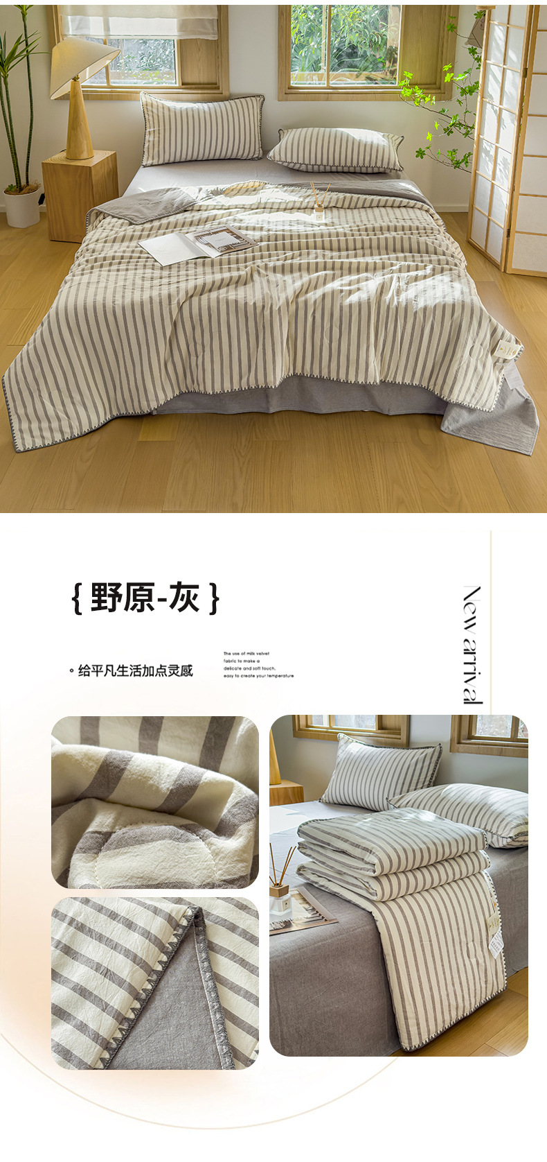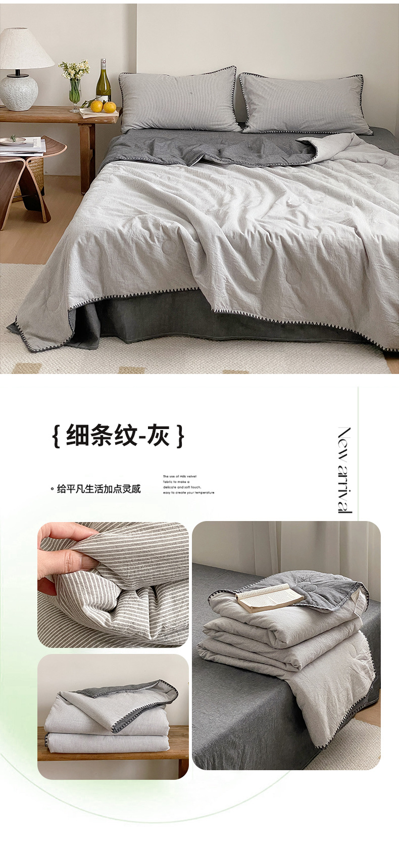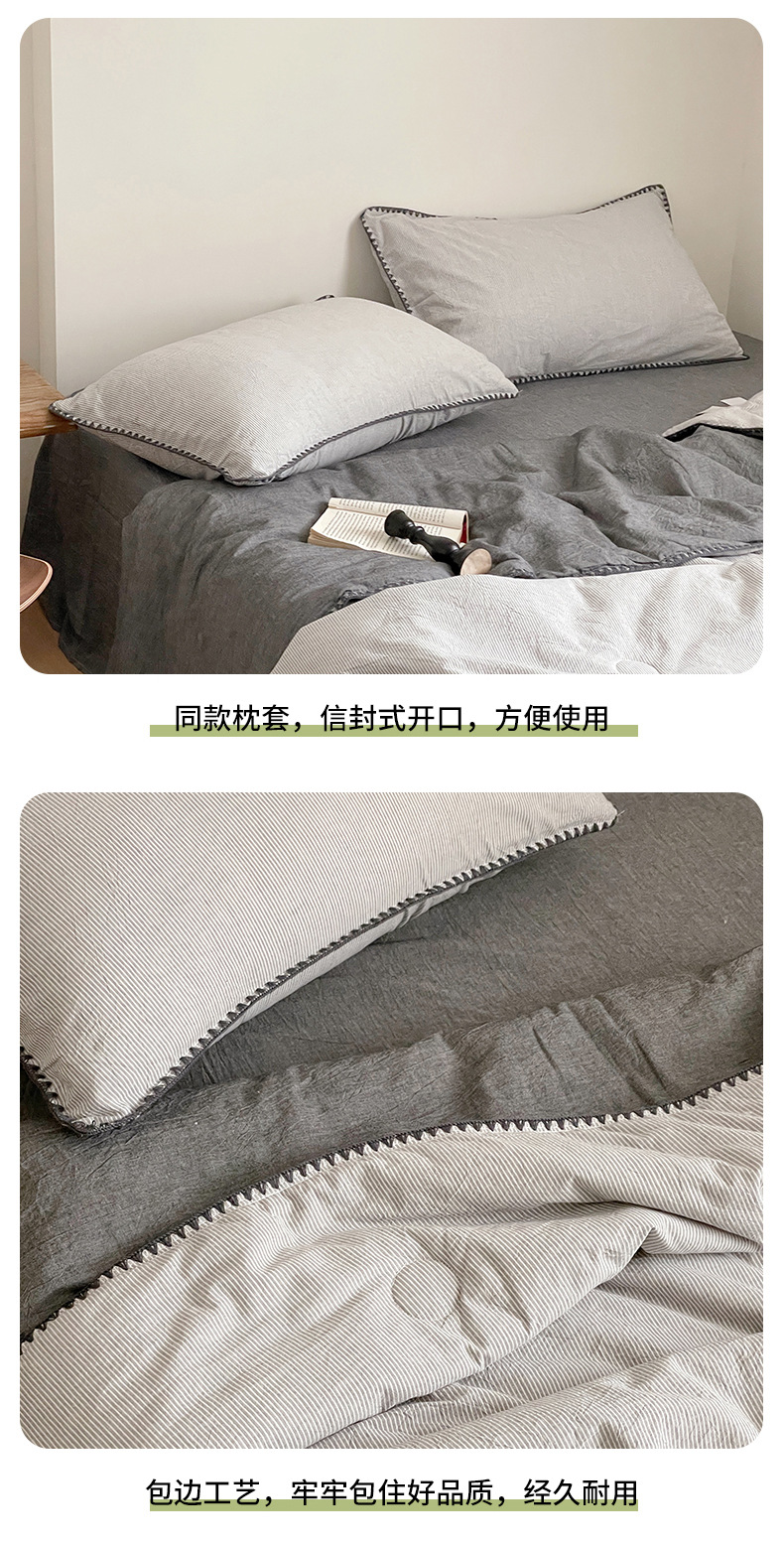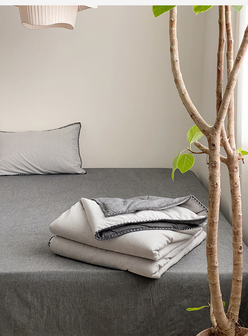• 면 100% 워싱 코튼 여름 이불 핀스트라이프 그레이