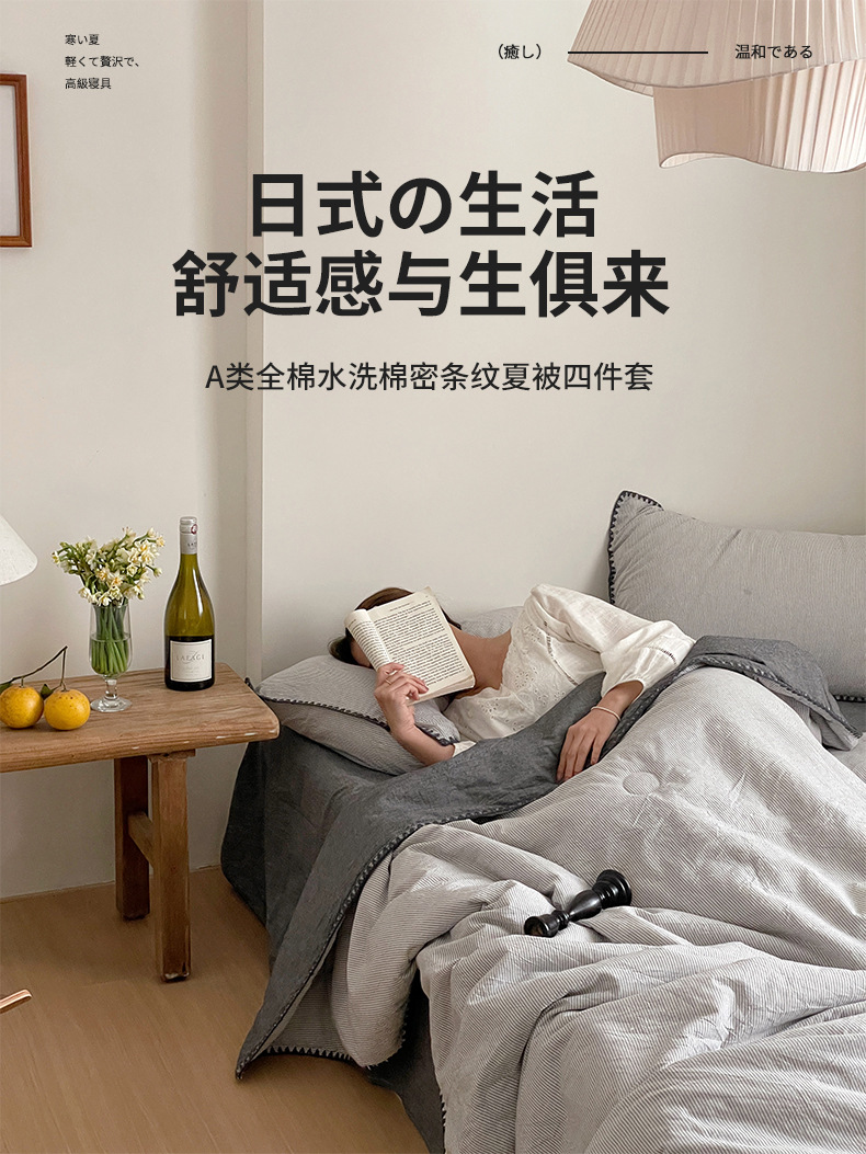 • 면 100% 워싱 코튼 여름 이불 핀스트라이프 라이스
