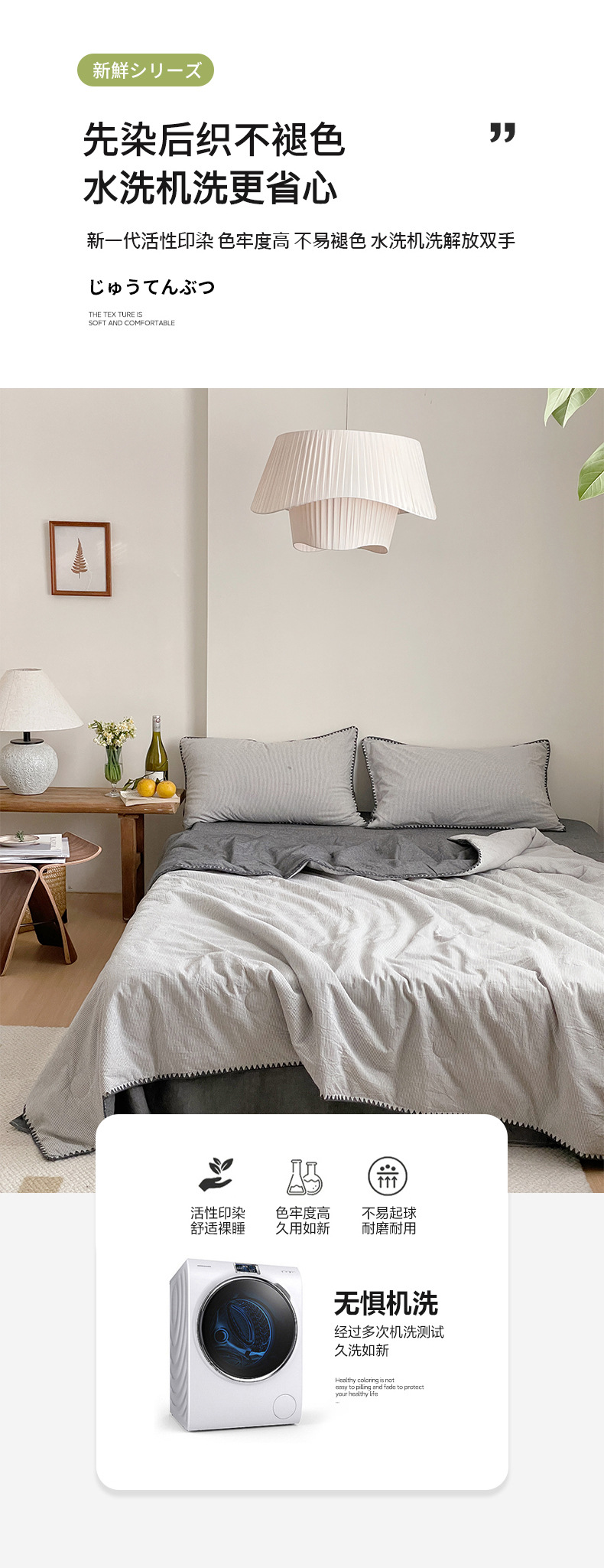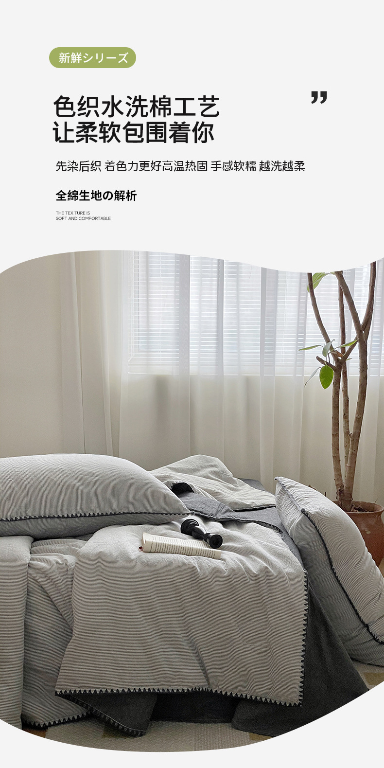 • 면 100% 워시드 코튼 여름 이불-노하라-그레이