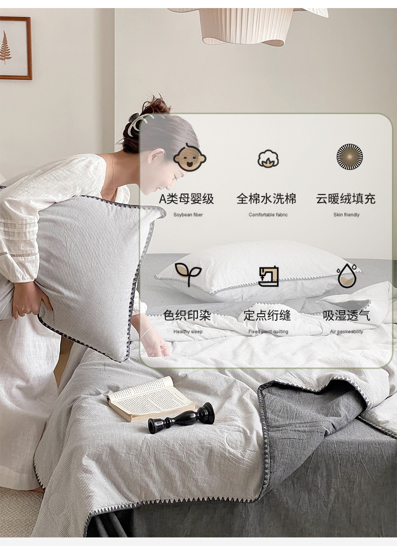 클래스 A 스트라이프 코튼 여름 퀼트 코튼 워시면 간단한 에어컨 여름 이불 얇은 이불 기숙사 150*200*230스토어 가기