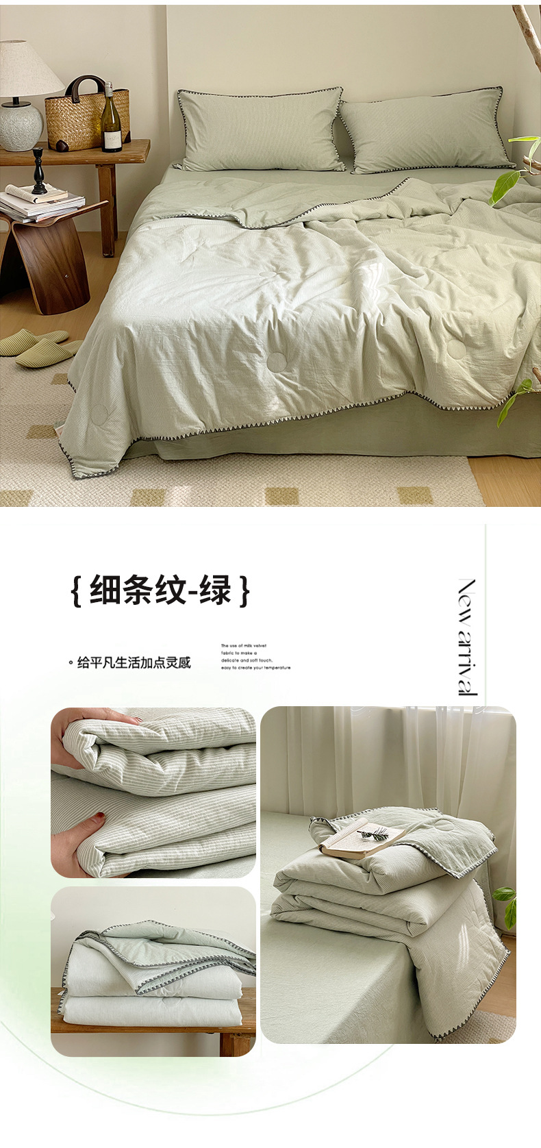 • 면 100% 워싱 코튼 여름 이불 핀스트라이프 그린
