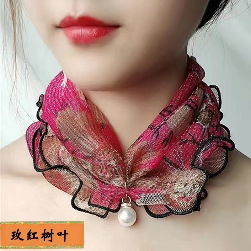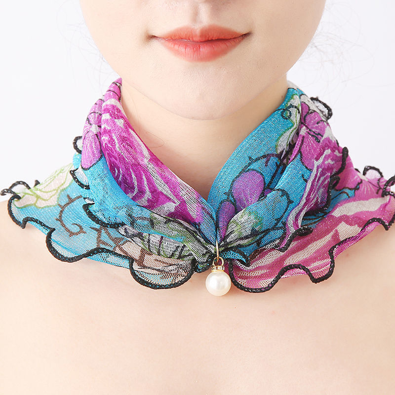 봄, 여름, 가을 한국 스타일 메쉬 풀오버 작은 스카프 여성 목 커버 실크 스카프 얇은 패셔너블 올 매치 세미 장식 스카프스토어 가기