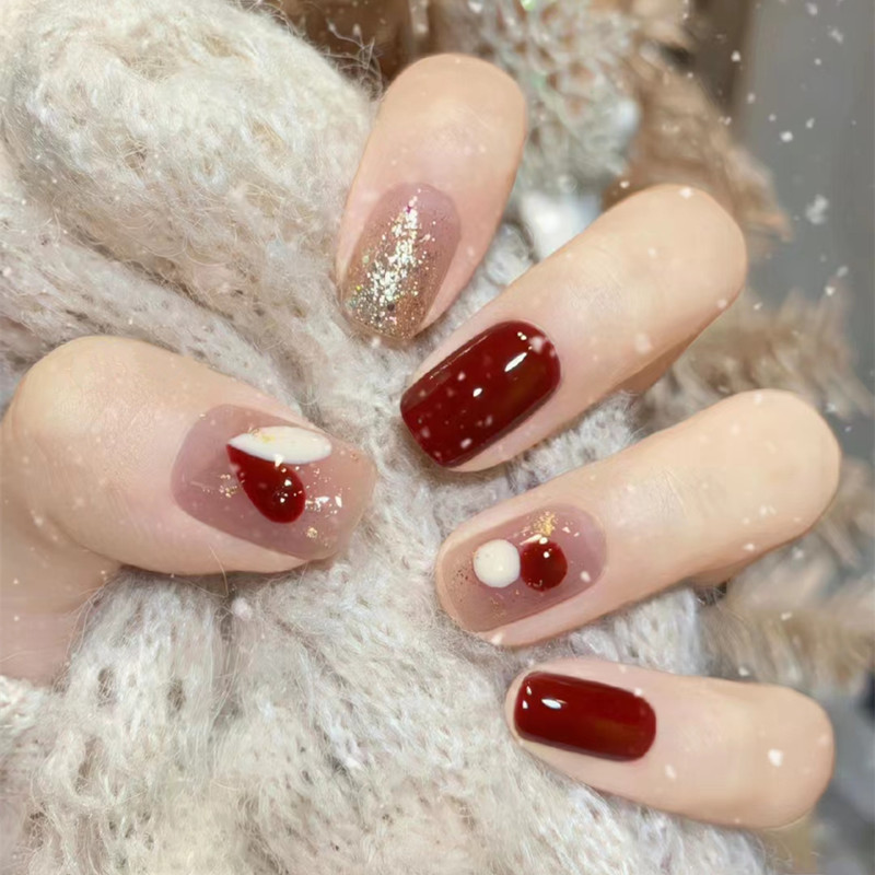 • ♡프렌치 체리【R719】쇼트 스타일/24개입⭐뷰티 에그 1개를 무료로 받으세요♡