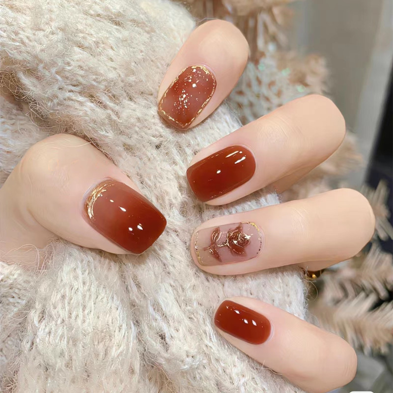 • ♡골든 브라운 스머지드【R617】숏스타일/24개입⭐뷰티 에그 1개를 무료로 받으세요♡