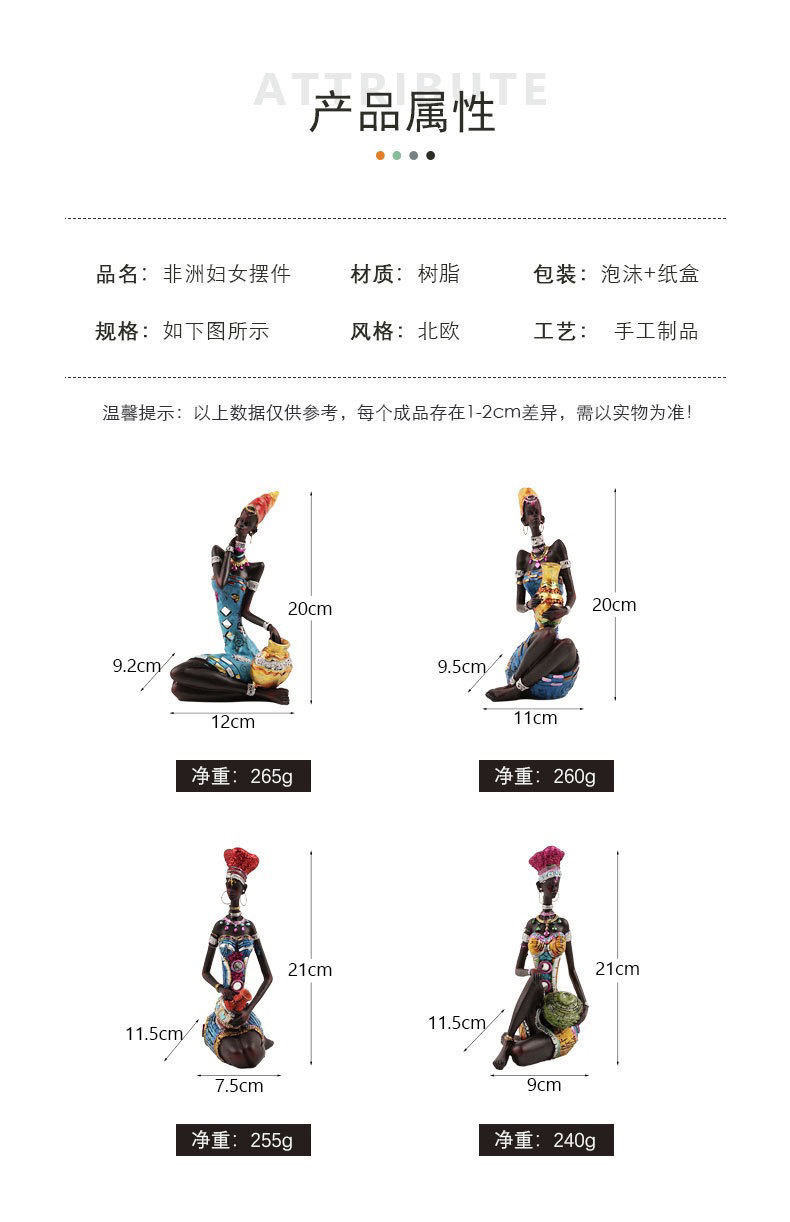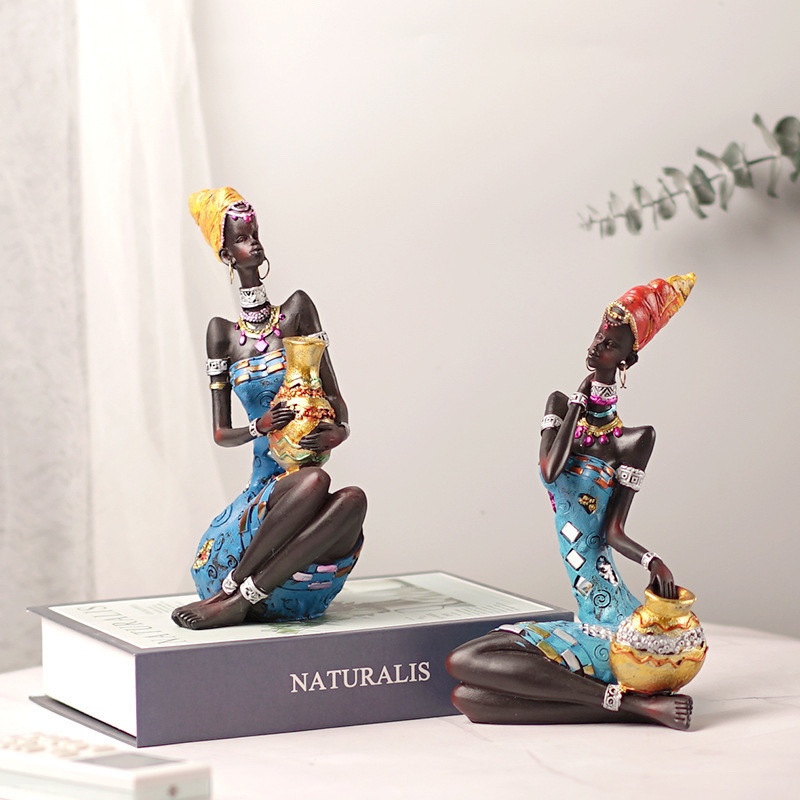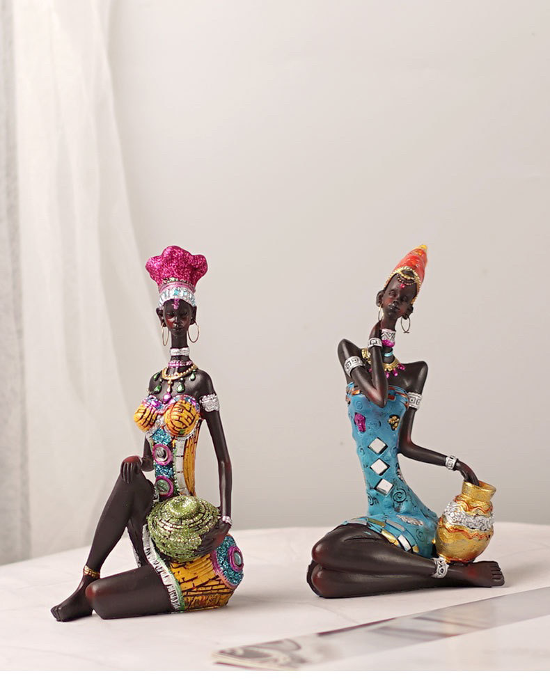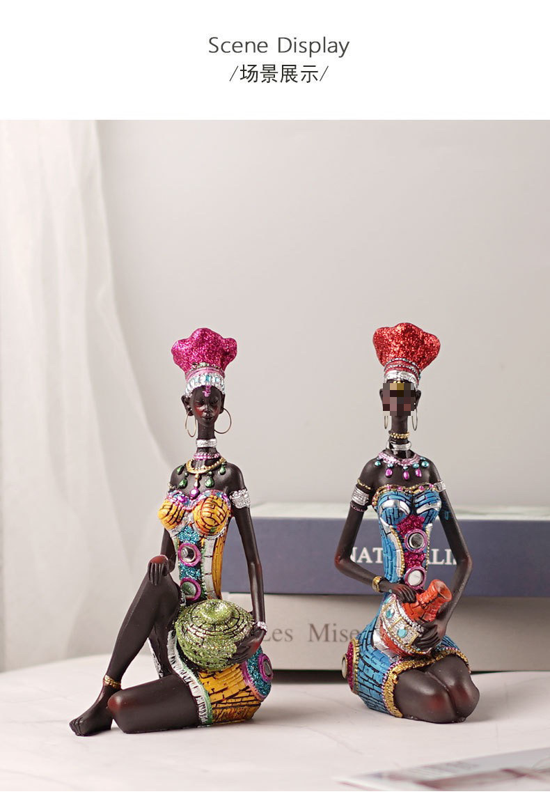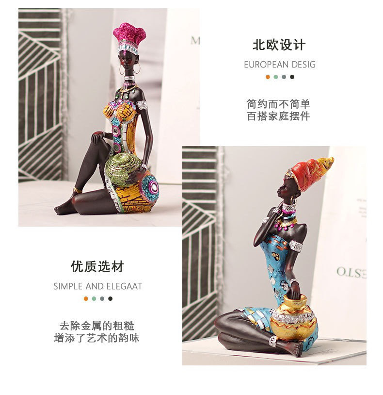 跨境欧式非洲黑人妇女雕塑摆件家居酒柜样板间咖啡厅树脂工艺品