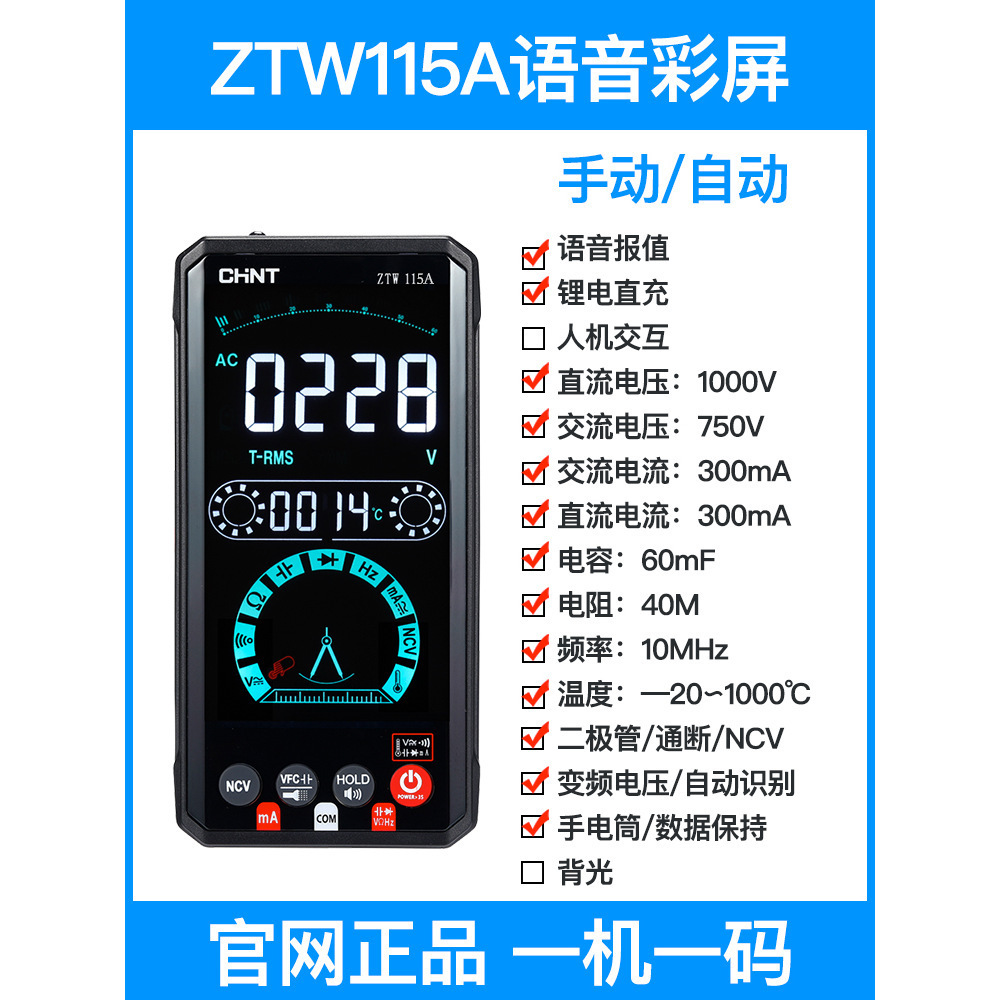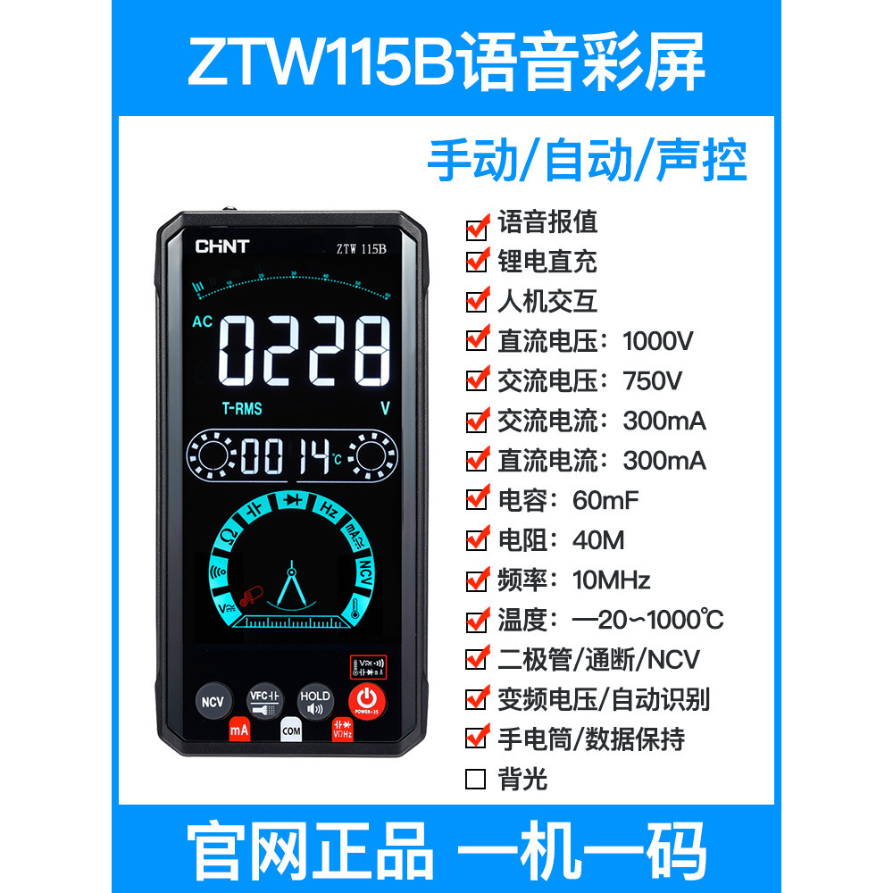 Chint 멀티 미터 디지털 고정밀 자동 지능형 안티 번 충전식 음성 전기 미터스토어 가기