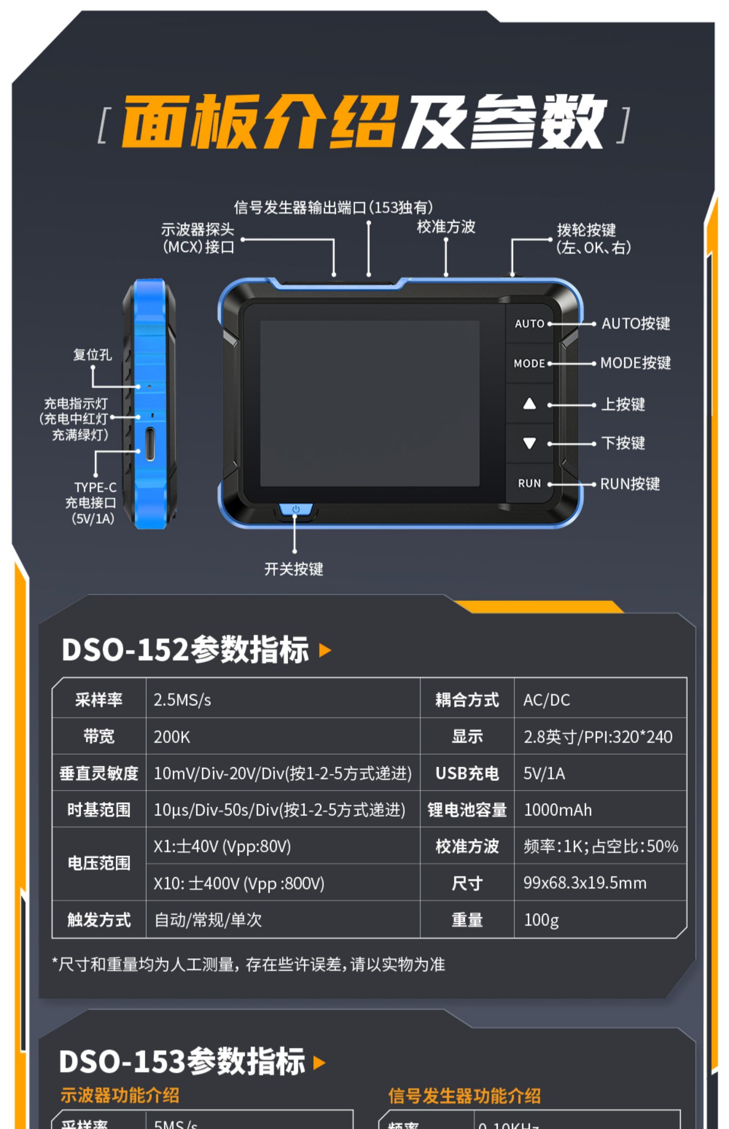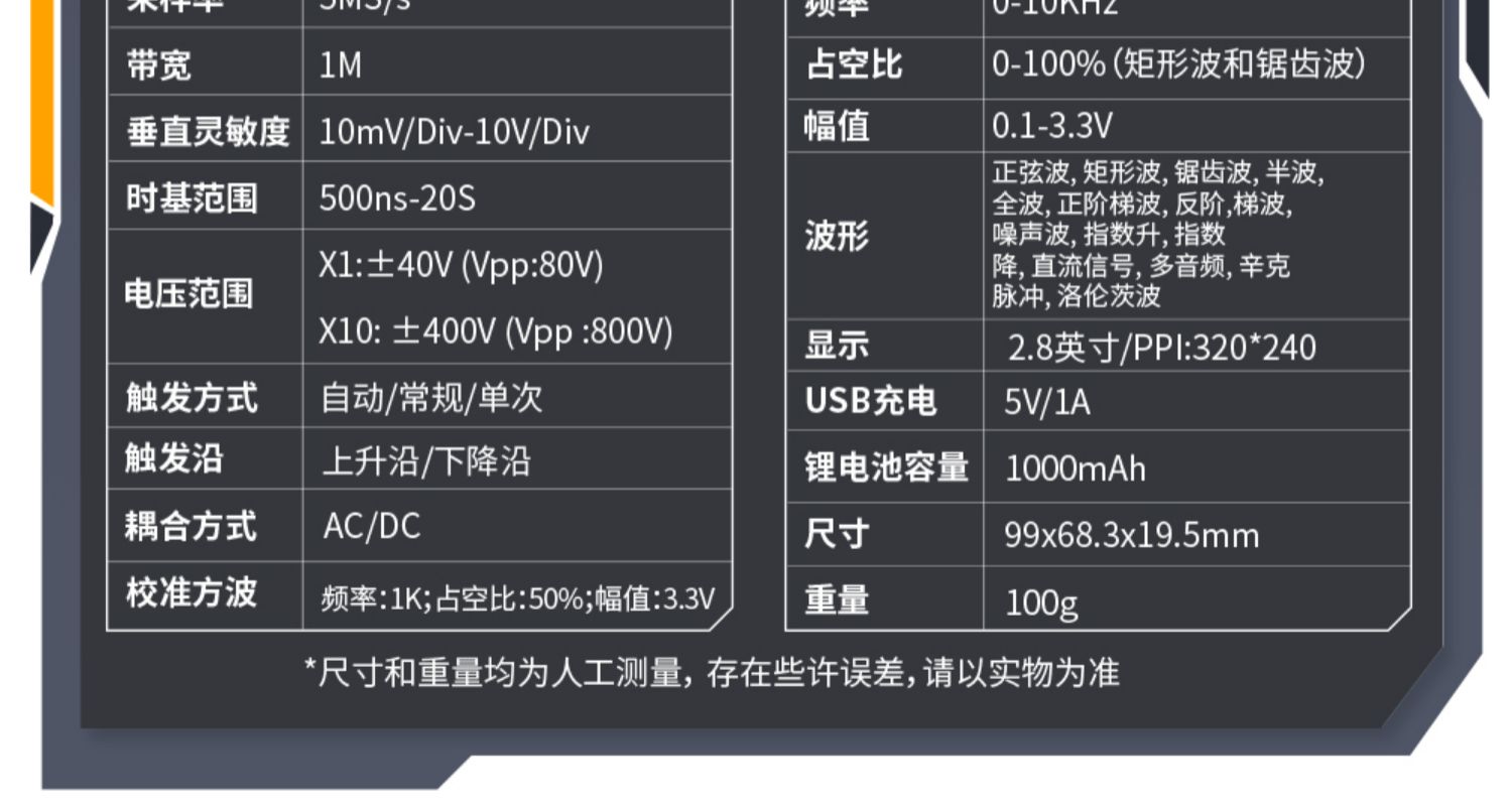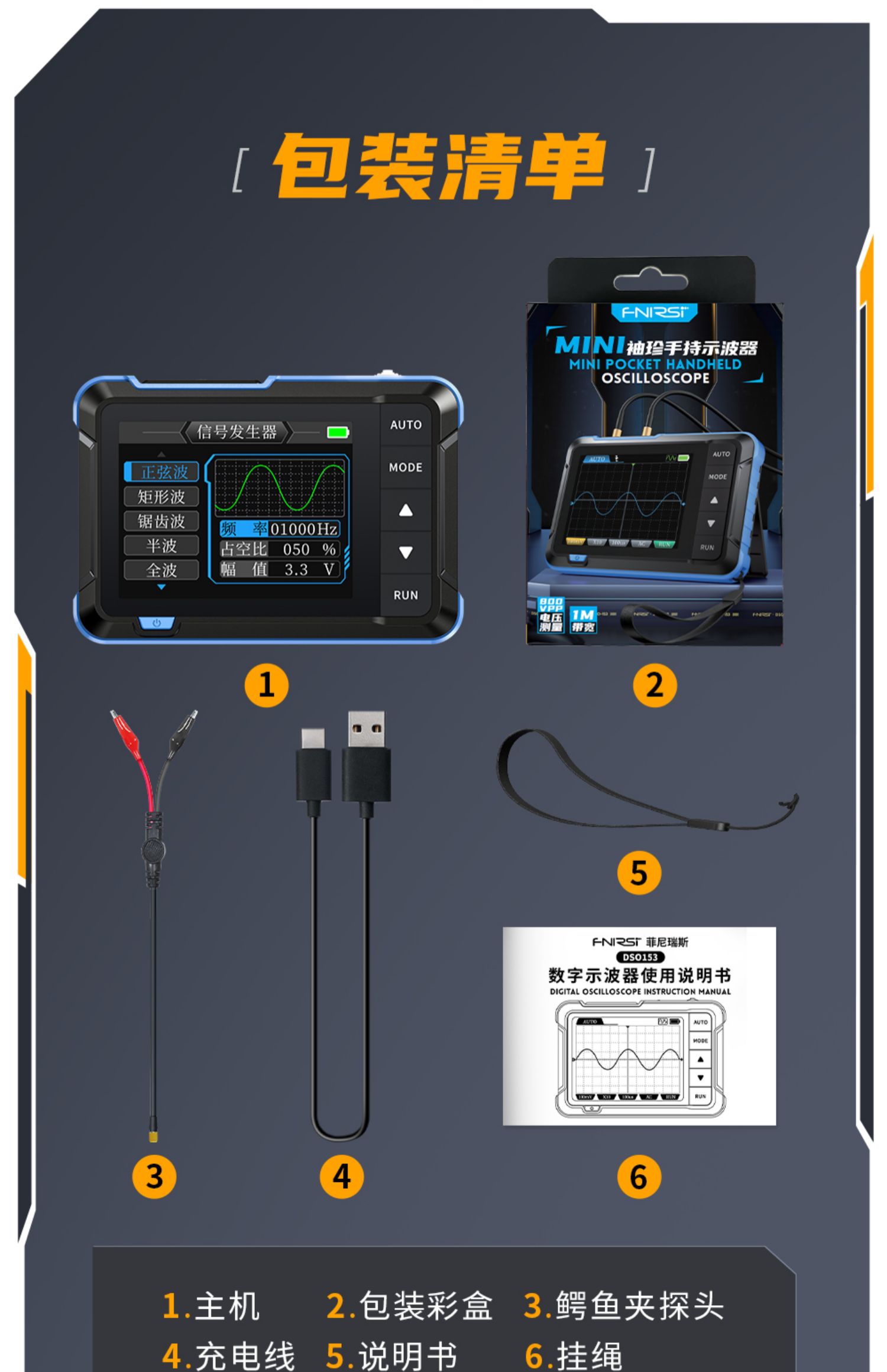 Fnirsi 휴대용 소형 디지털 오실로스코프 2-in -1 다기능 휴대용 미니 신호 발생기 1 M 대역폭
