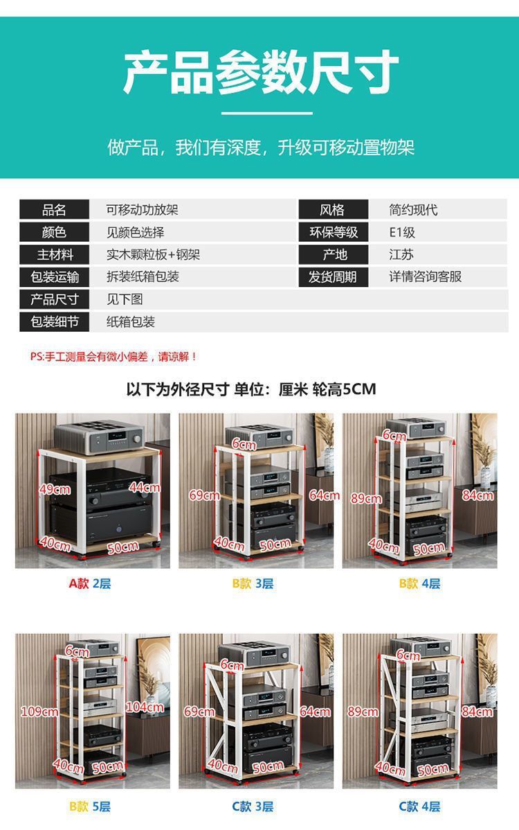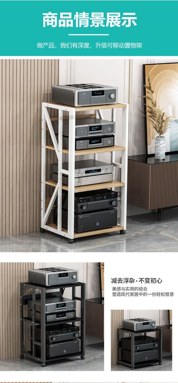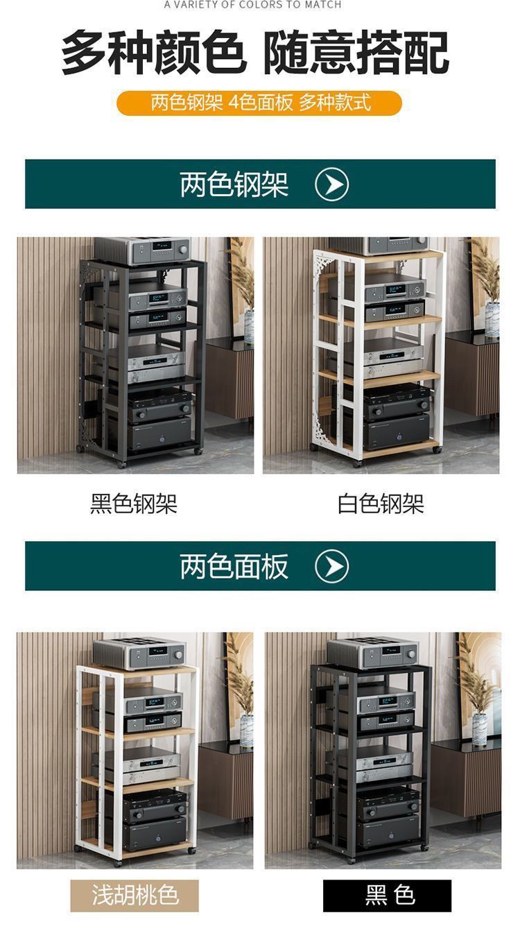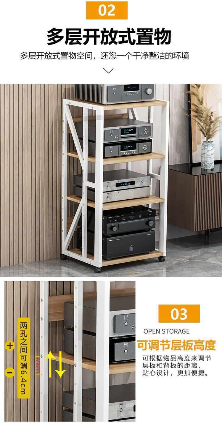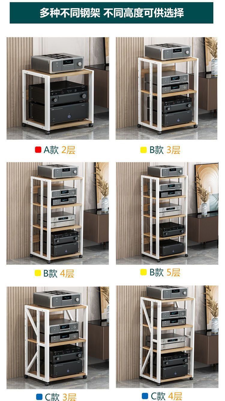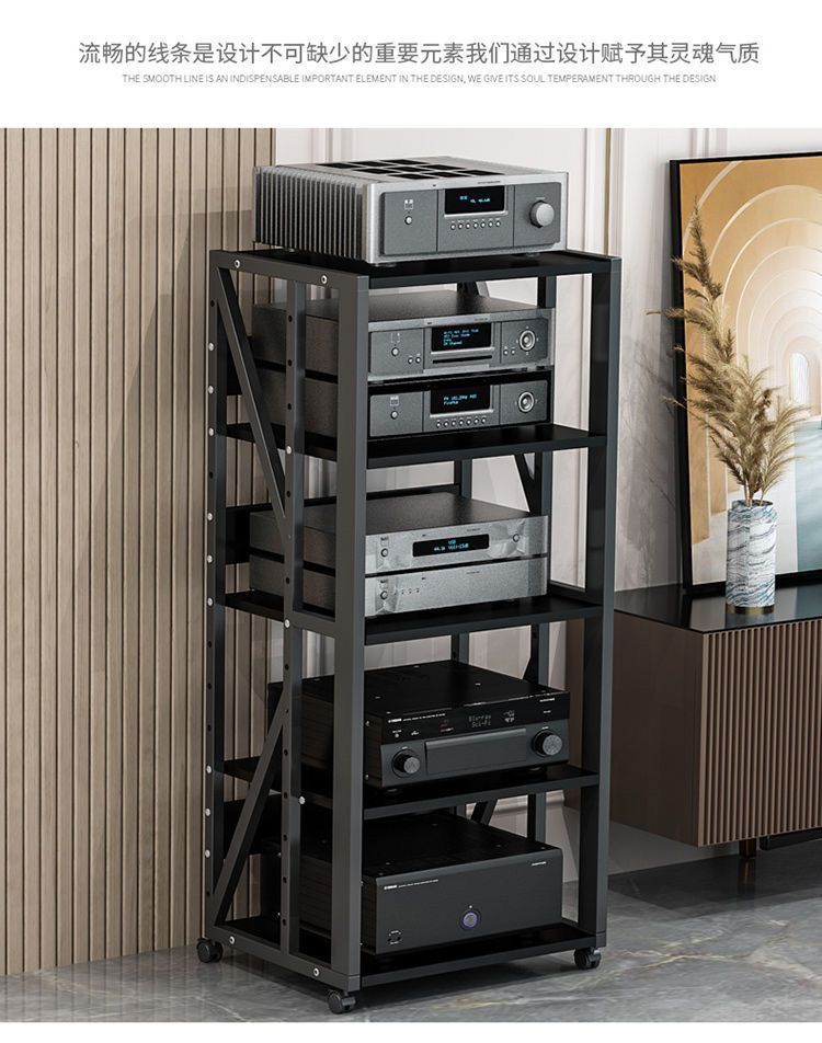 파워 앰프 랙 다층 가정용 조절 가능한 간격 모바일 담낭 스탠드 캐비닛 스피커 오디오 발 선반 바닥