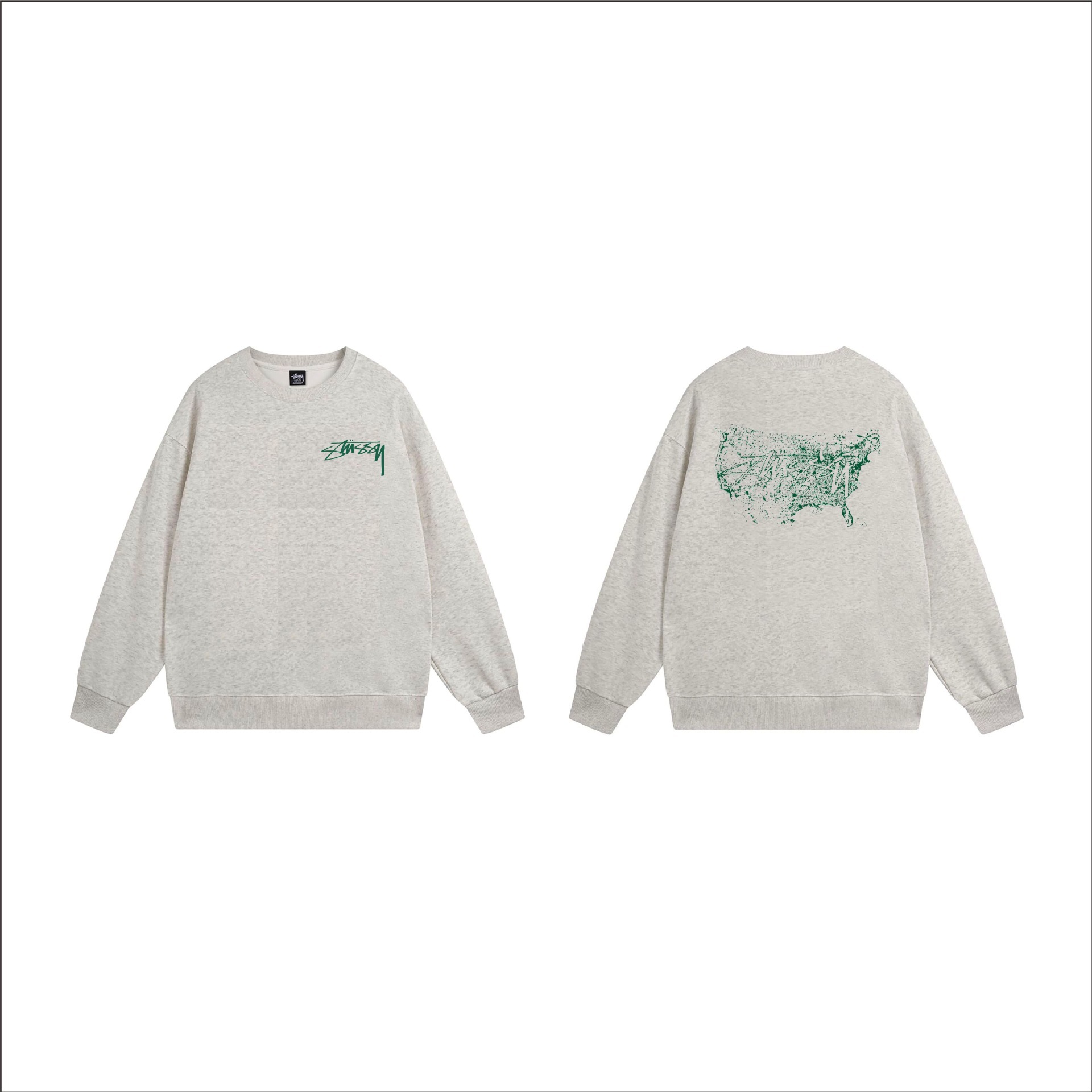 국경 간 Stussy Stusi 유럽과 미국의 블랙 8 스웨트 셔츠 남성과 여성의 냄비 가을과 겨울 크루 넥 코트 긴 소매