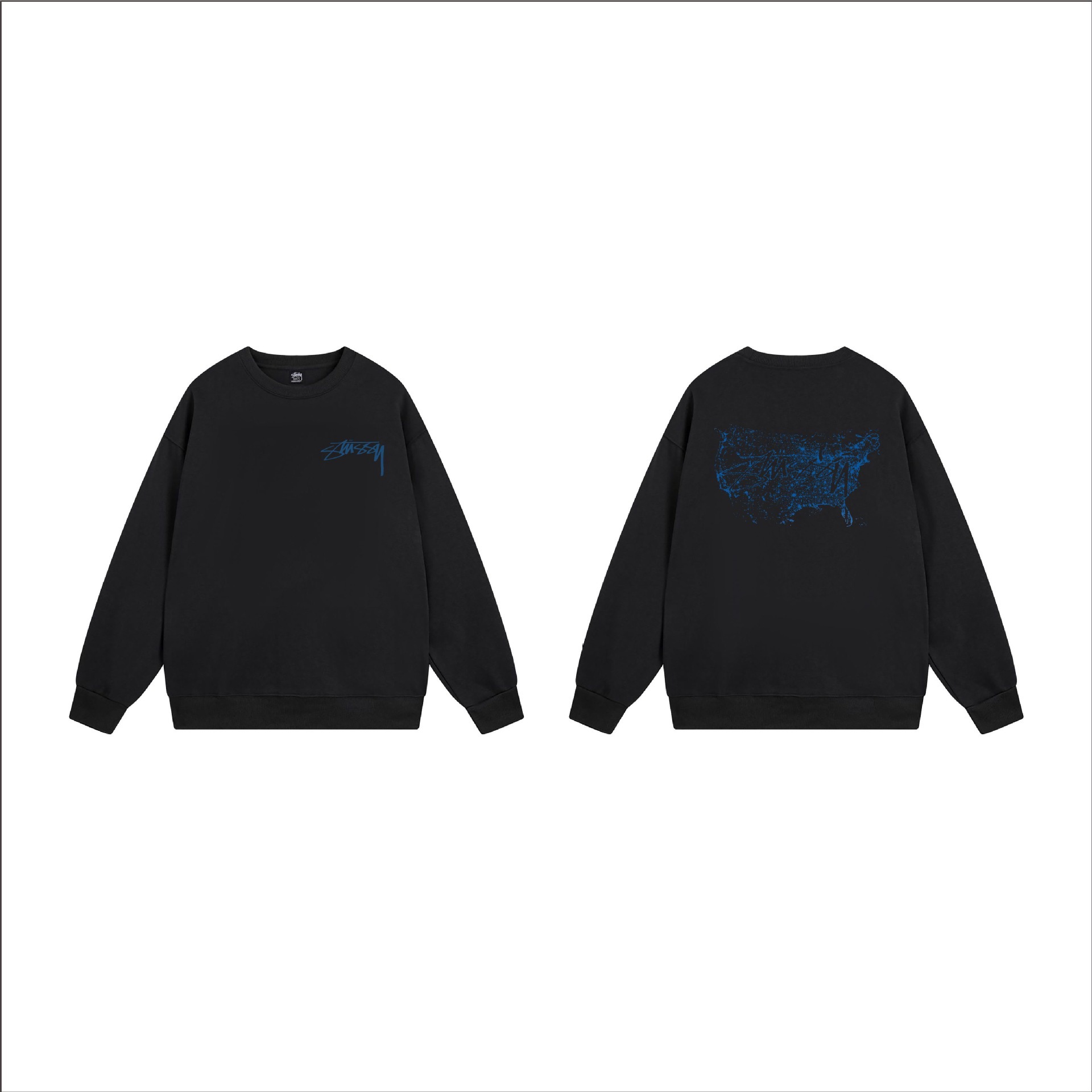 국경 간 Stussy Stusi 유럽과 미국의 블랙 8 스웨트 셔츠 남성과 여성의 냄비 가을과 겨울 크루 넥 코트 긴 소매스토어 가기