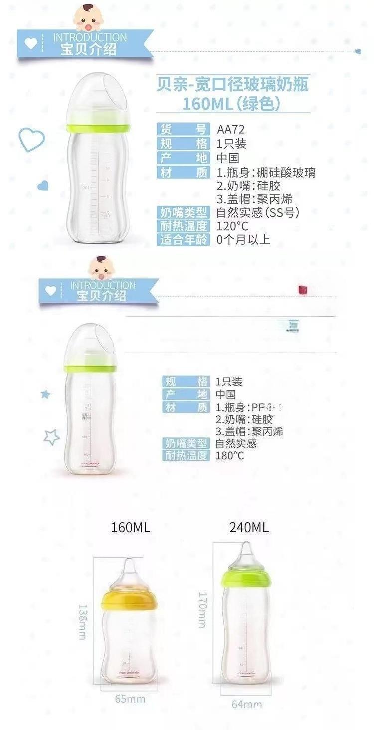 넓은 직경 유리 병 아기 안티-헛배 높은 온도 저항 자연 느낌 160/240ml 아크스토어 가기