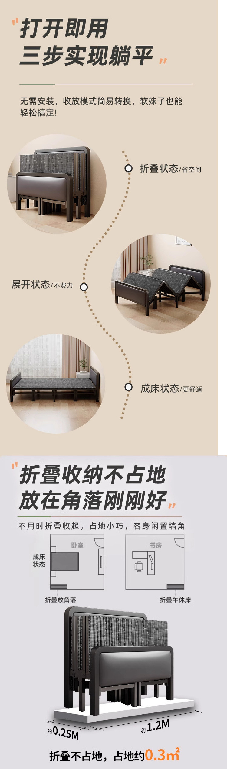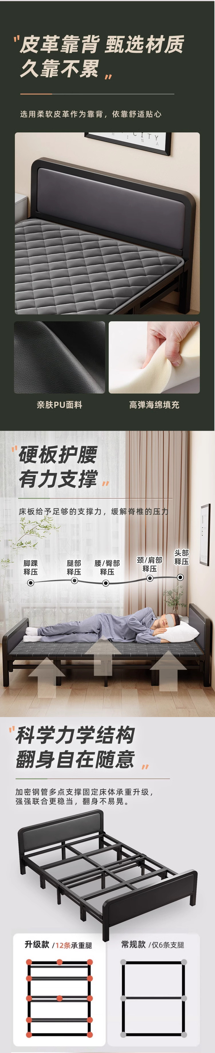 고급 접이식 침대 어린이 싱글 침대 성인 가구 초두꺼운 더블 침대 작은 아파트 하드 보드 침대 철제 프레임 침대스토어 가기