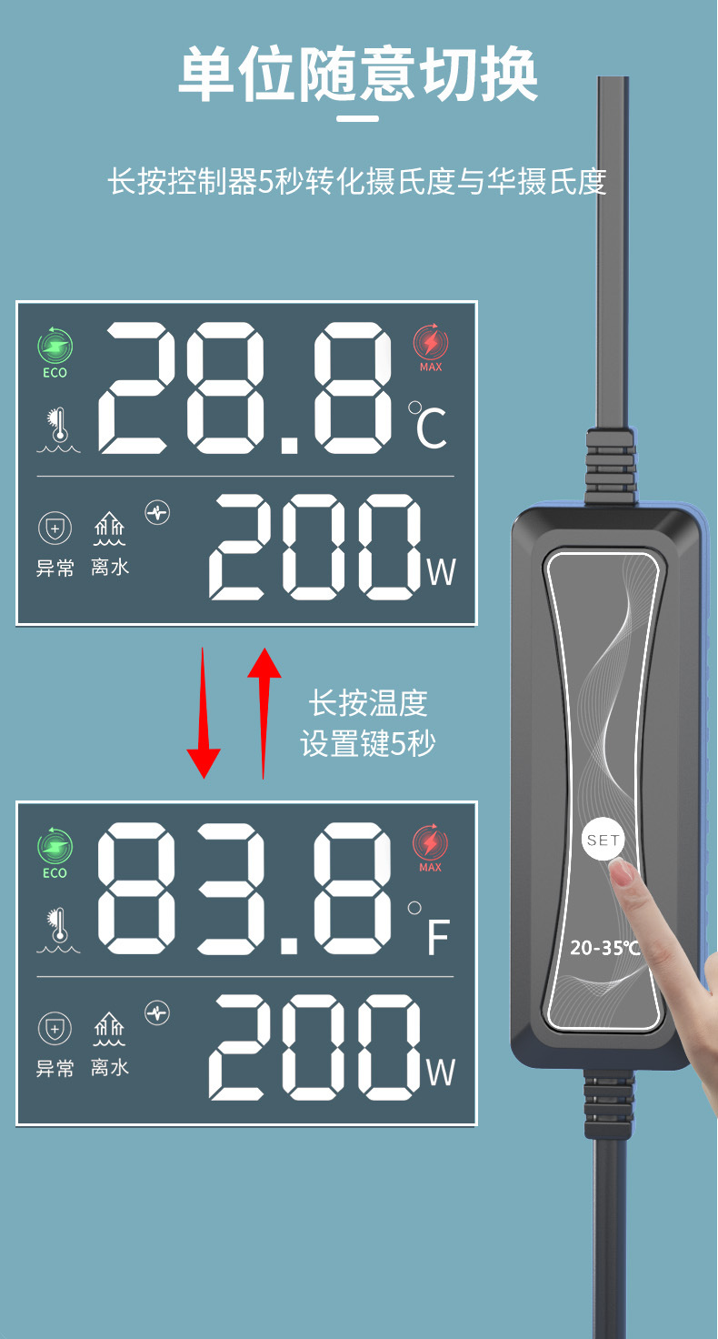 • 200W 실시간 온도 표시(물이 없을 때 전원 차단 + 과열 보호)