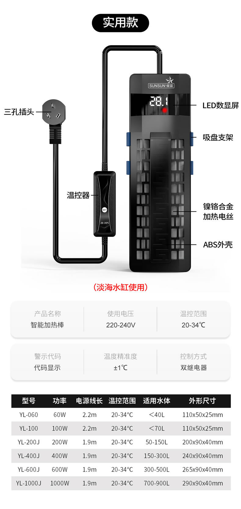 • 60W 실시간 온도 표시(물이 없을 때 전원 끄기 + 과열 보호)