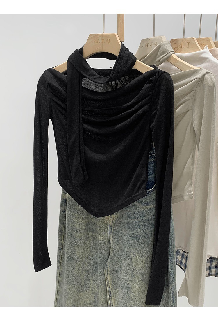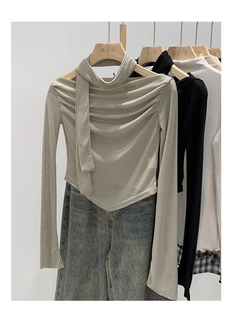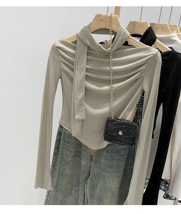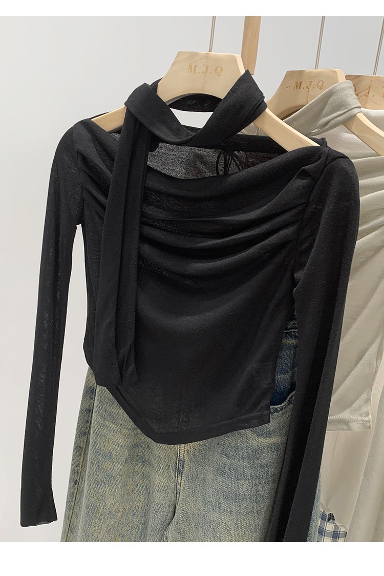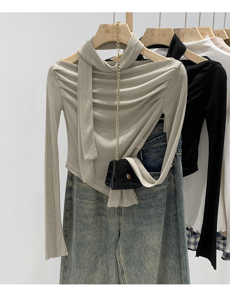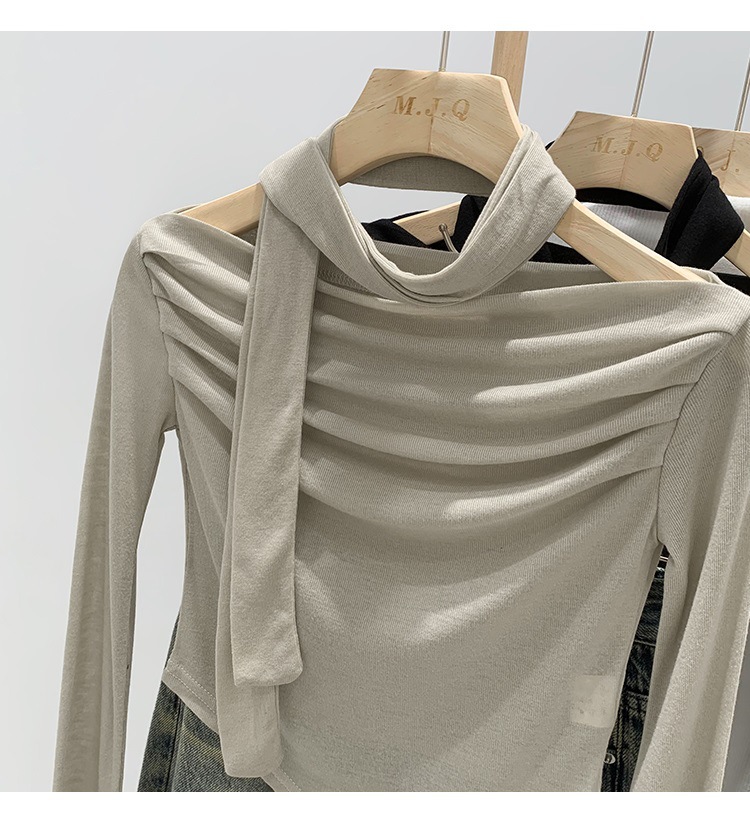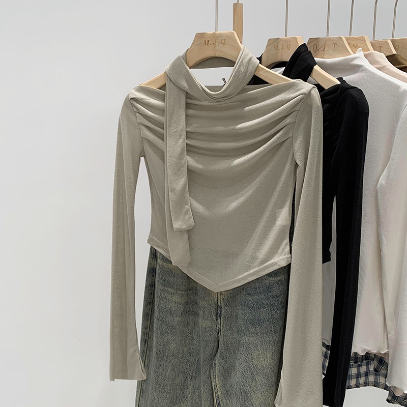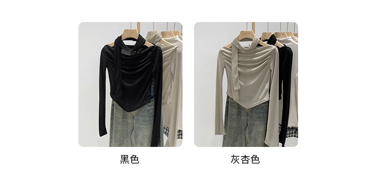 스파이스 걸스 한 캐릭터 칼라 슬리밍 짧은 긴팔 티셔츠 여성의 봄과 여름 2025 새로운베이스 셔츠 탑 스카프 세트