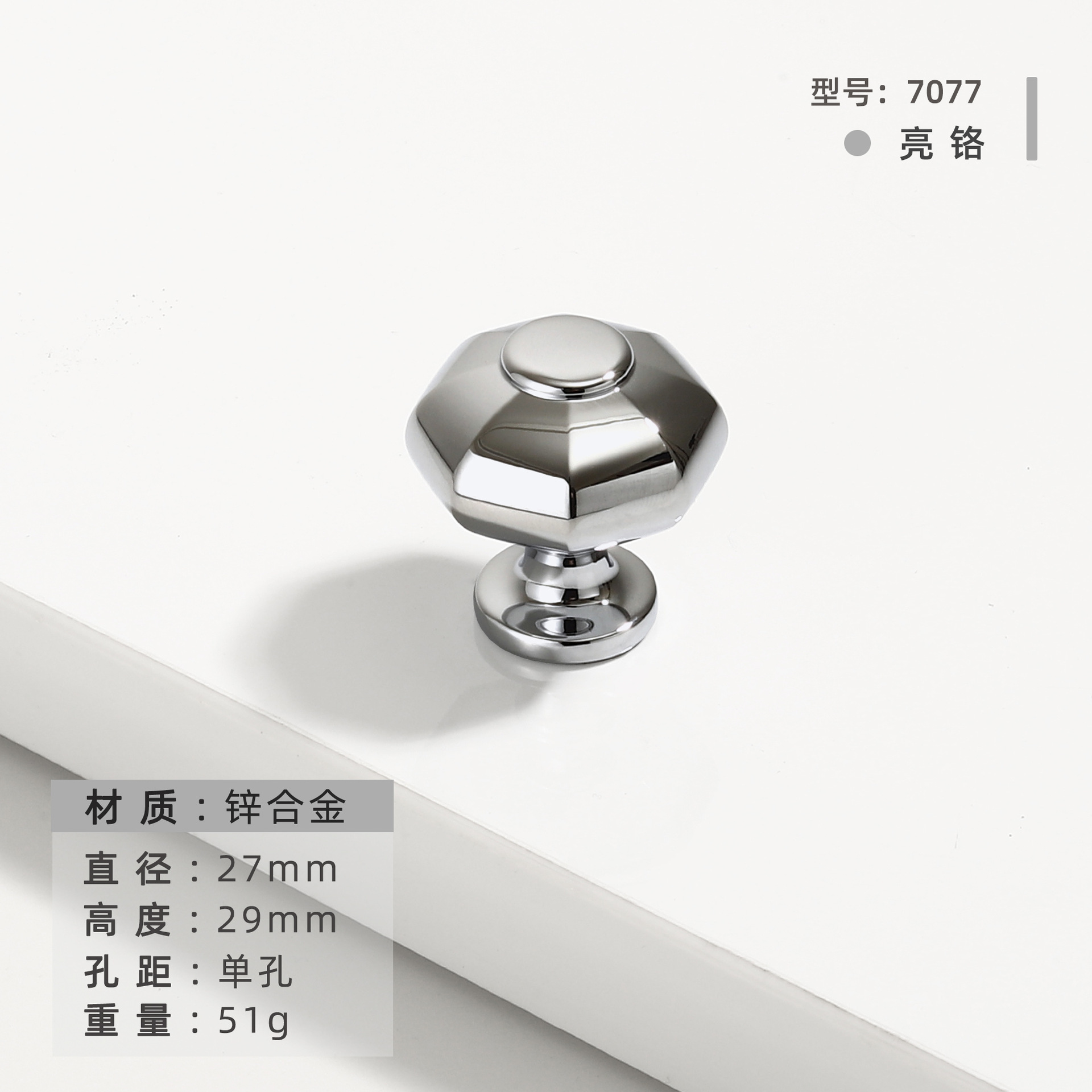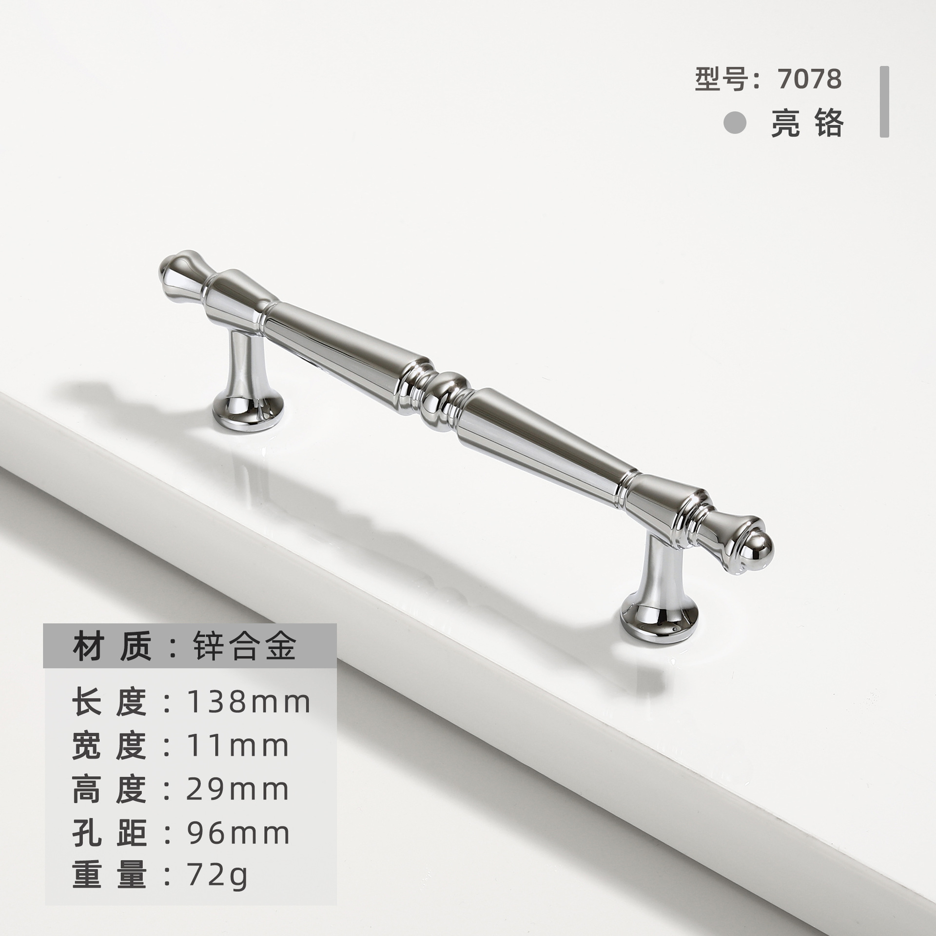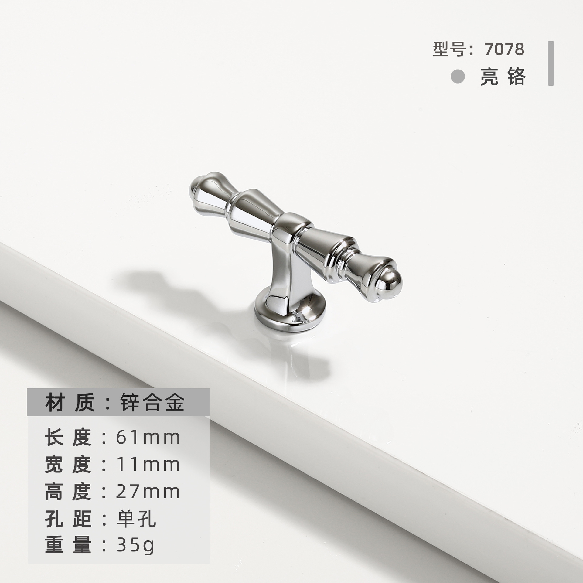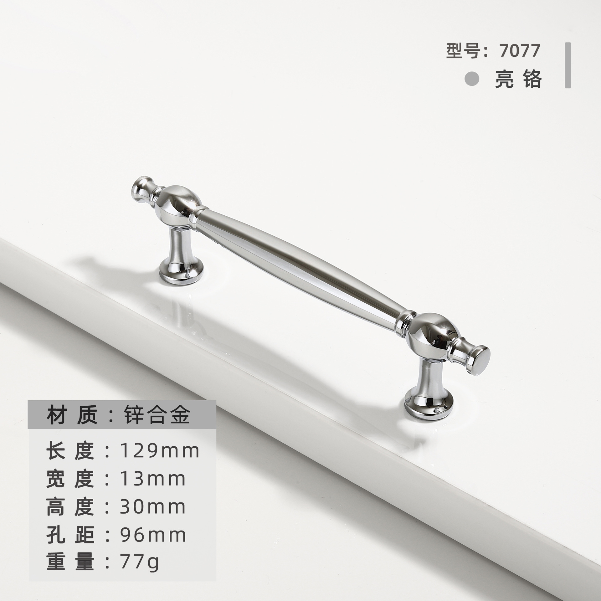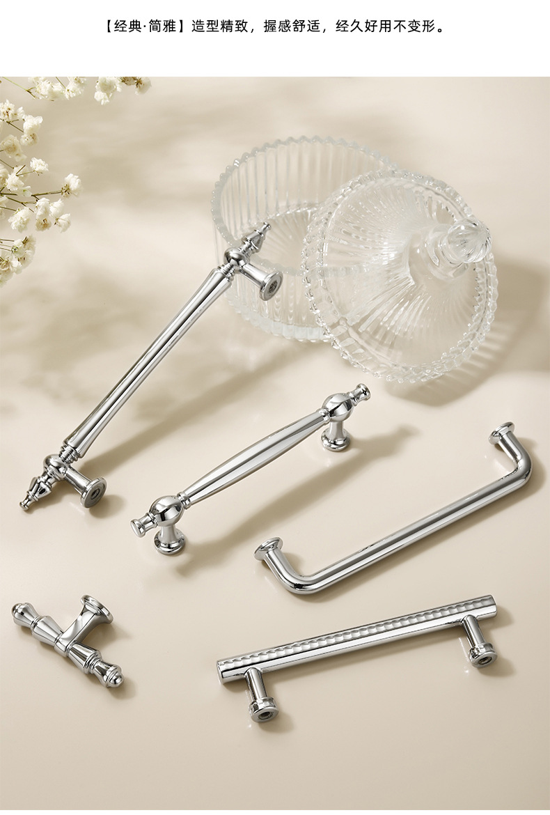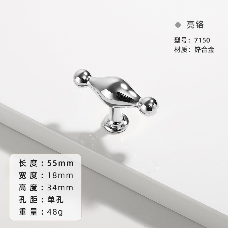 프랑스 아연 합금 옷장 문 손잡이 현대 간단한 크롬 도금 밝은 실버 서랍 단일 구멍 캐비닛 단단한 손잡이
