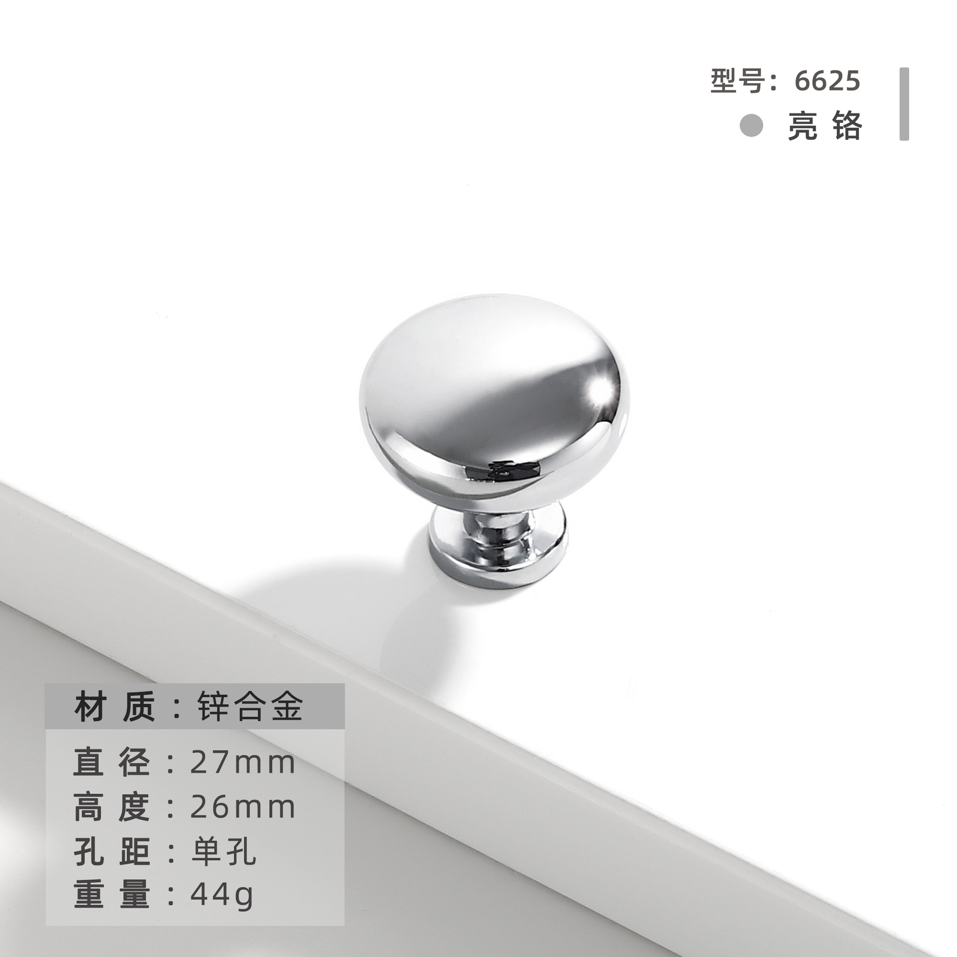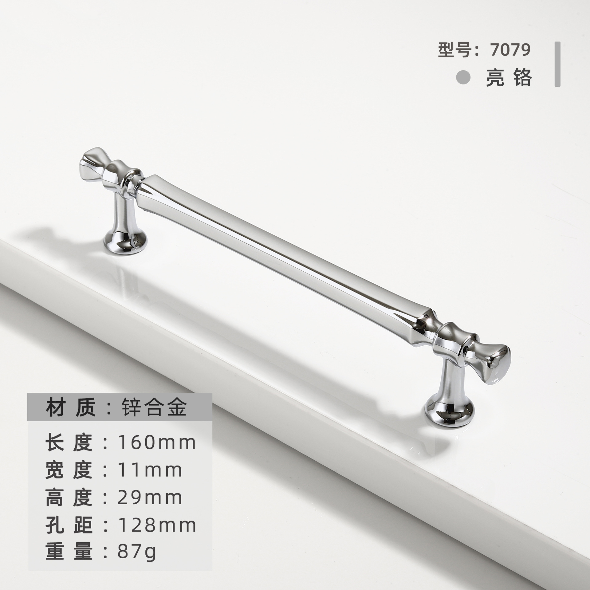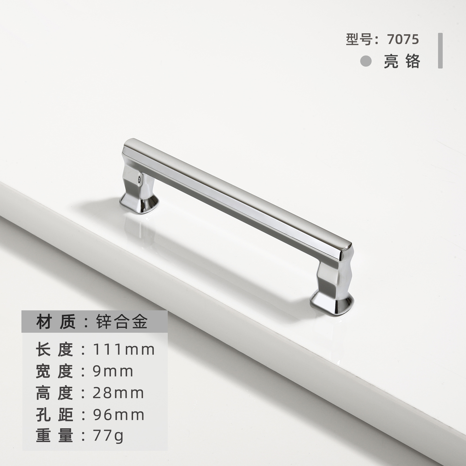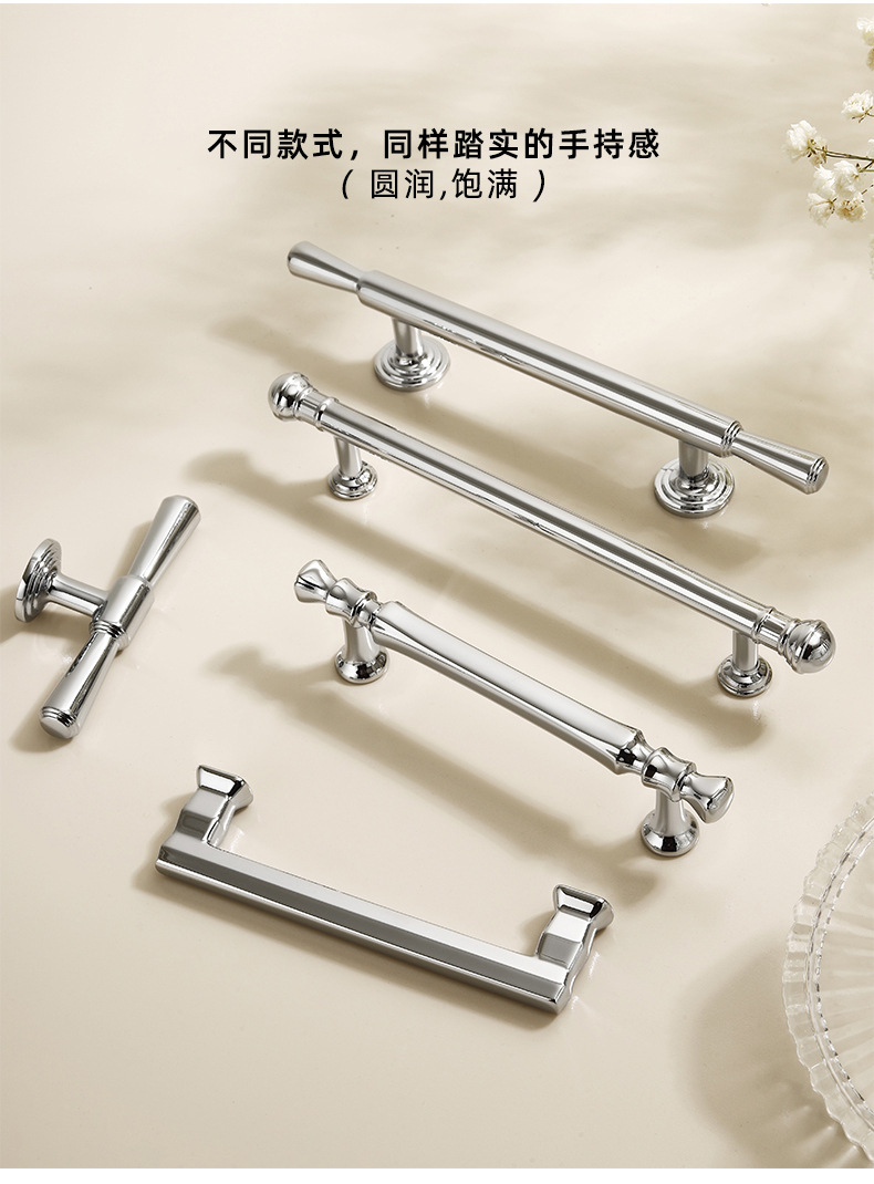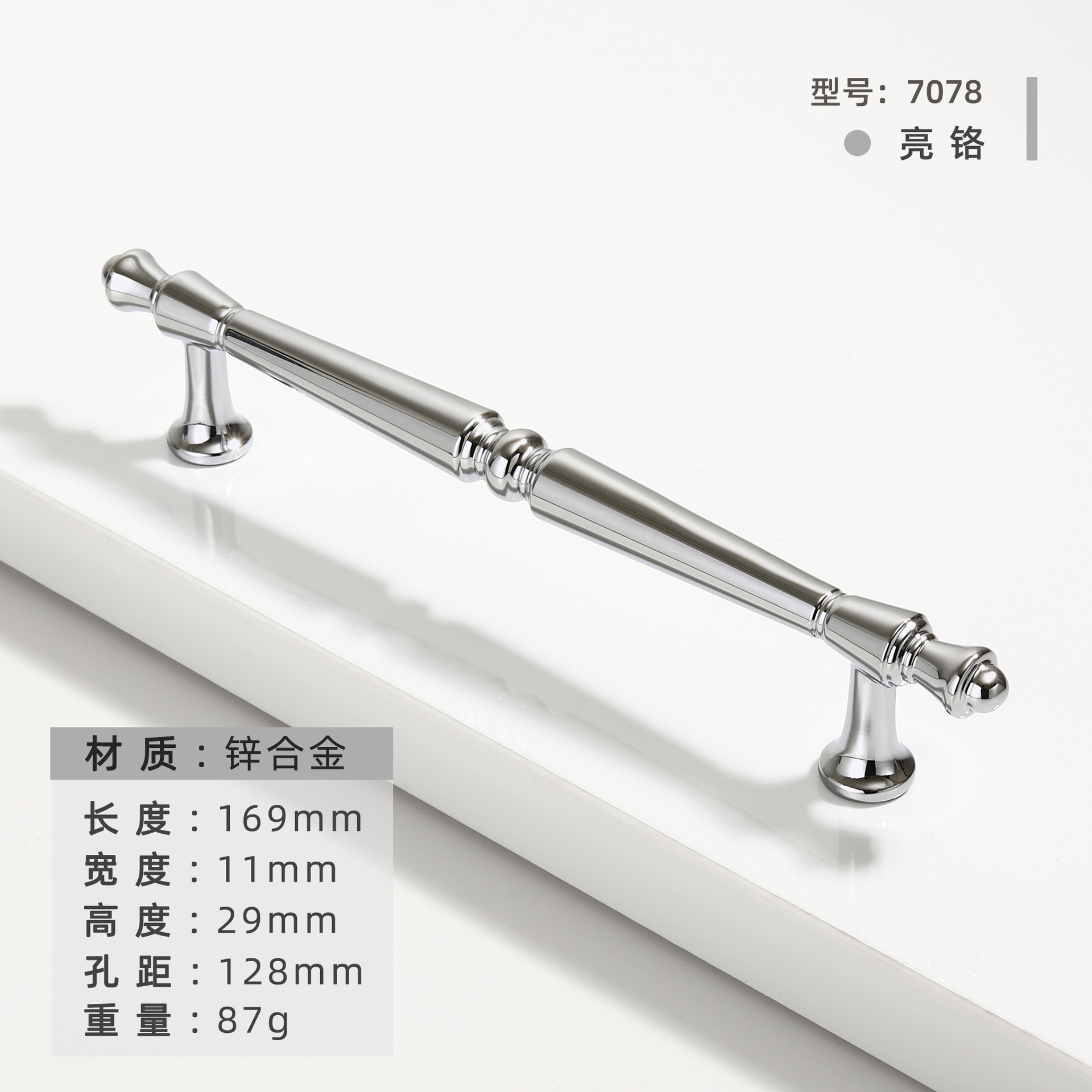 프랑스 아연 합금 옷장 문 손잡이 현대 간단한 크롬 도금 밝은 실버 서랍 단일 구멍 캐비닛 단단한 손잡이