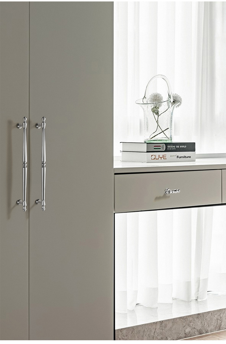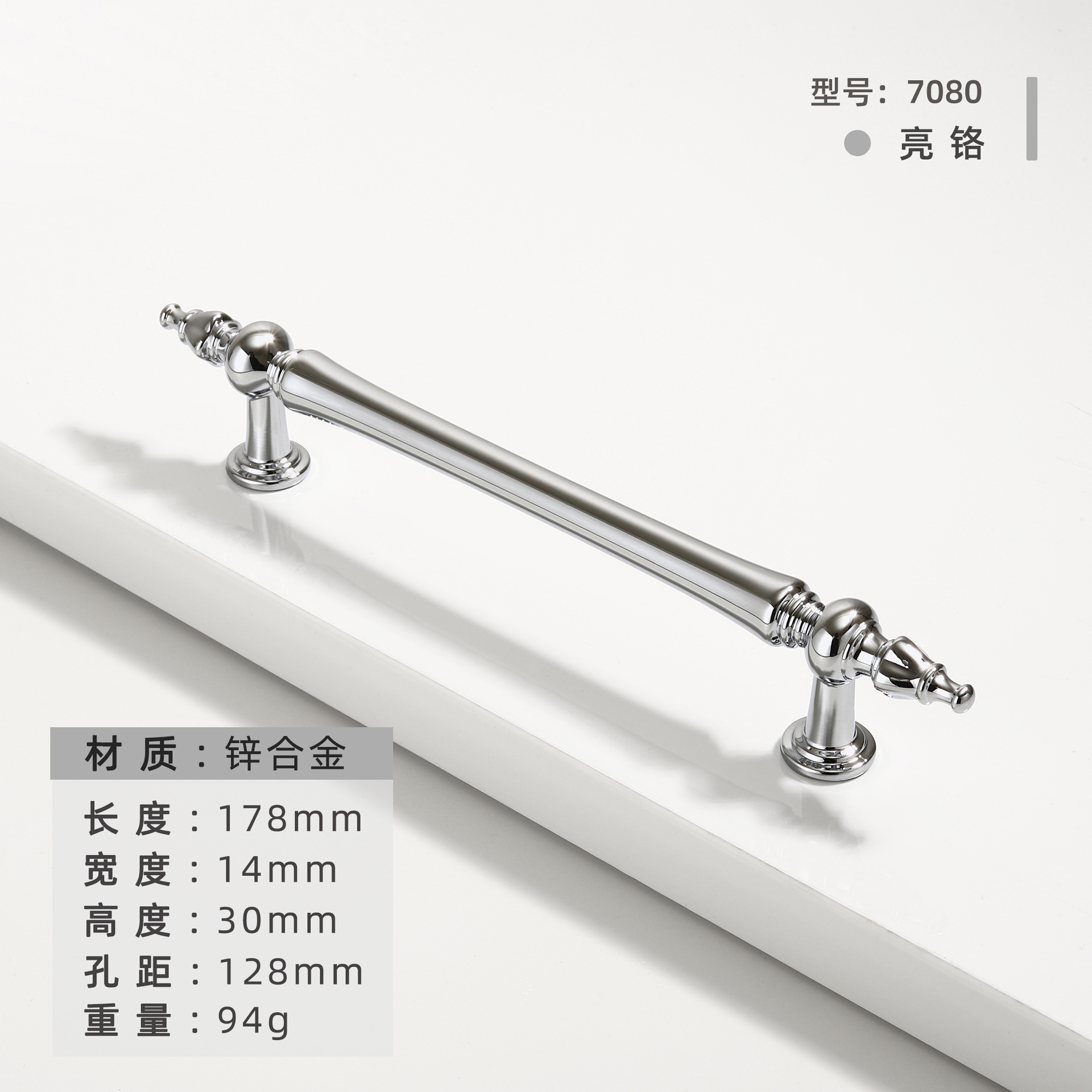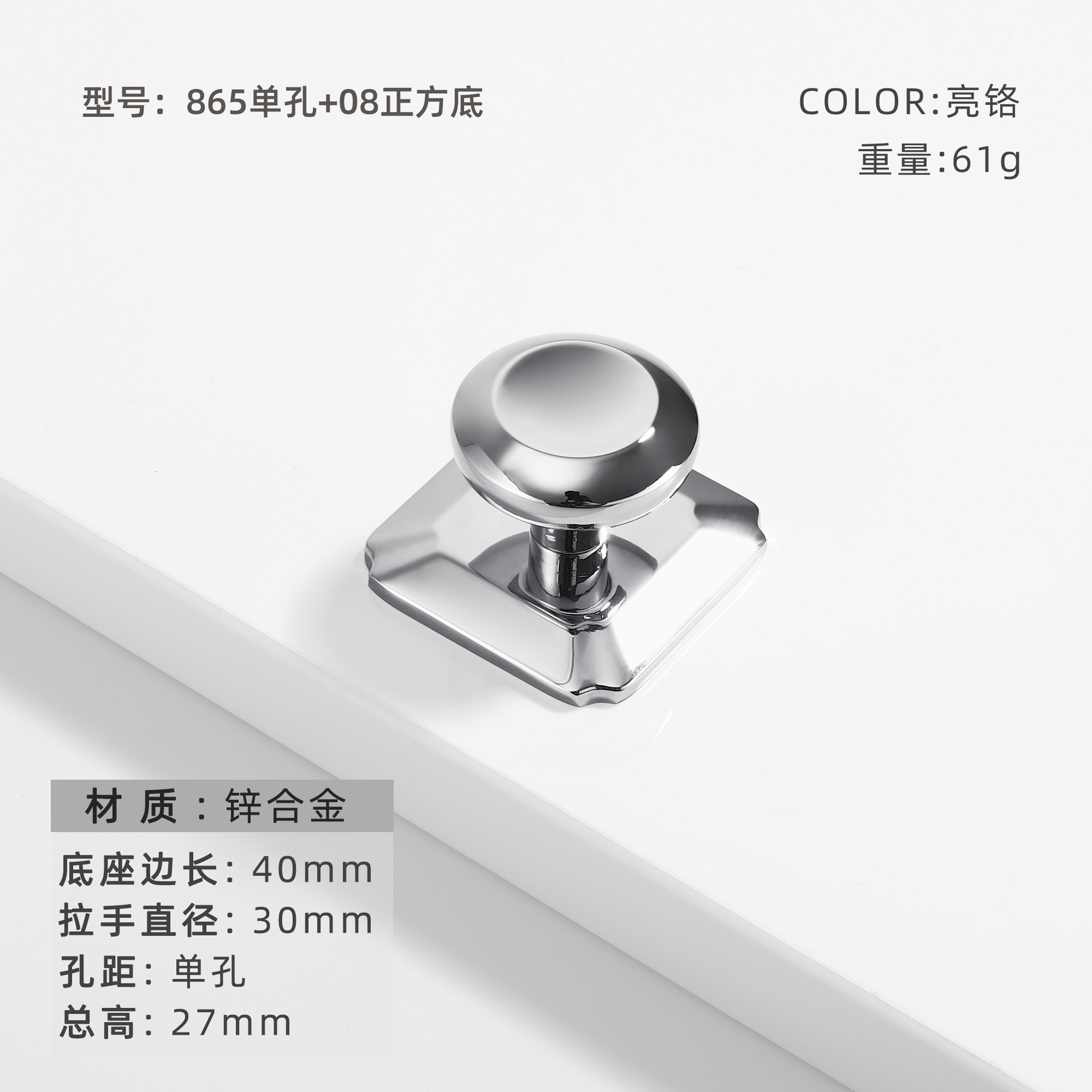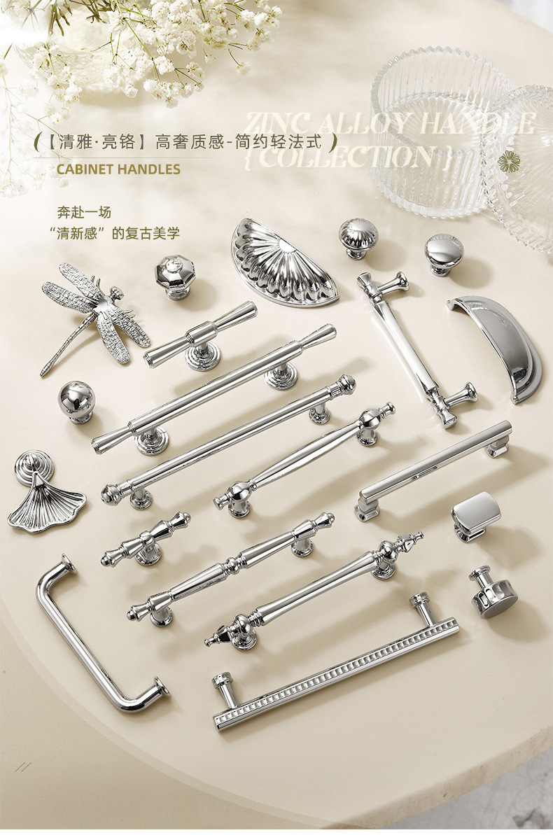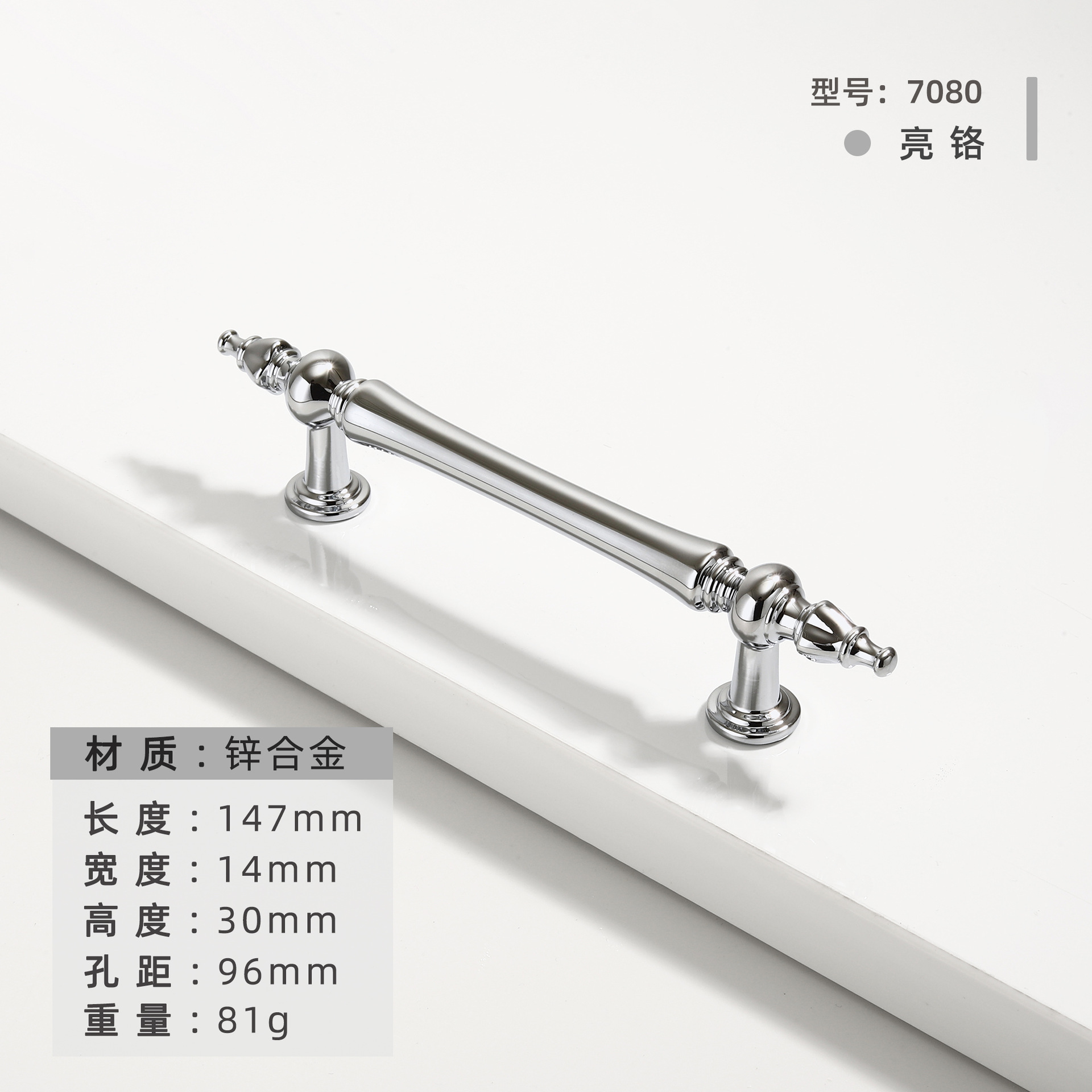 프랑스 아연 합금 옷장 문 손잡이 현대 간단한 크롬 도금 밝은 실버 서랍 단일 구멍 캐비닛 단단한 손잡이
