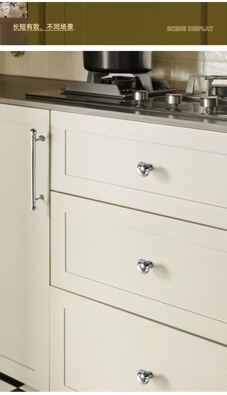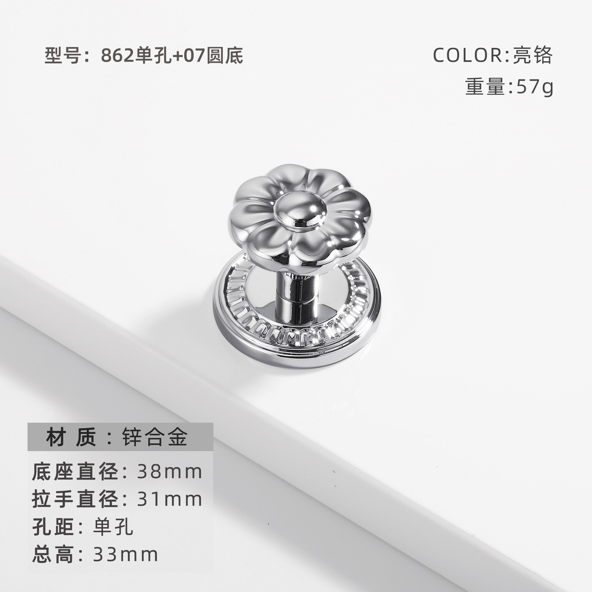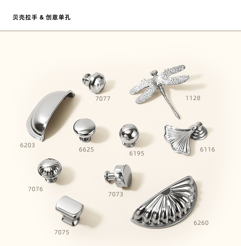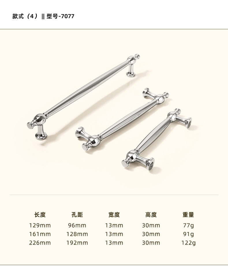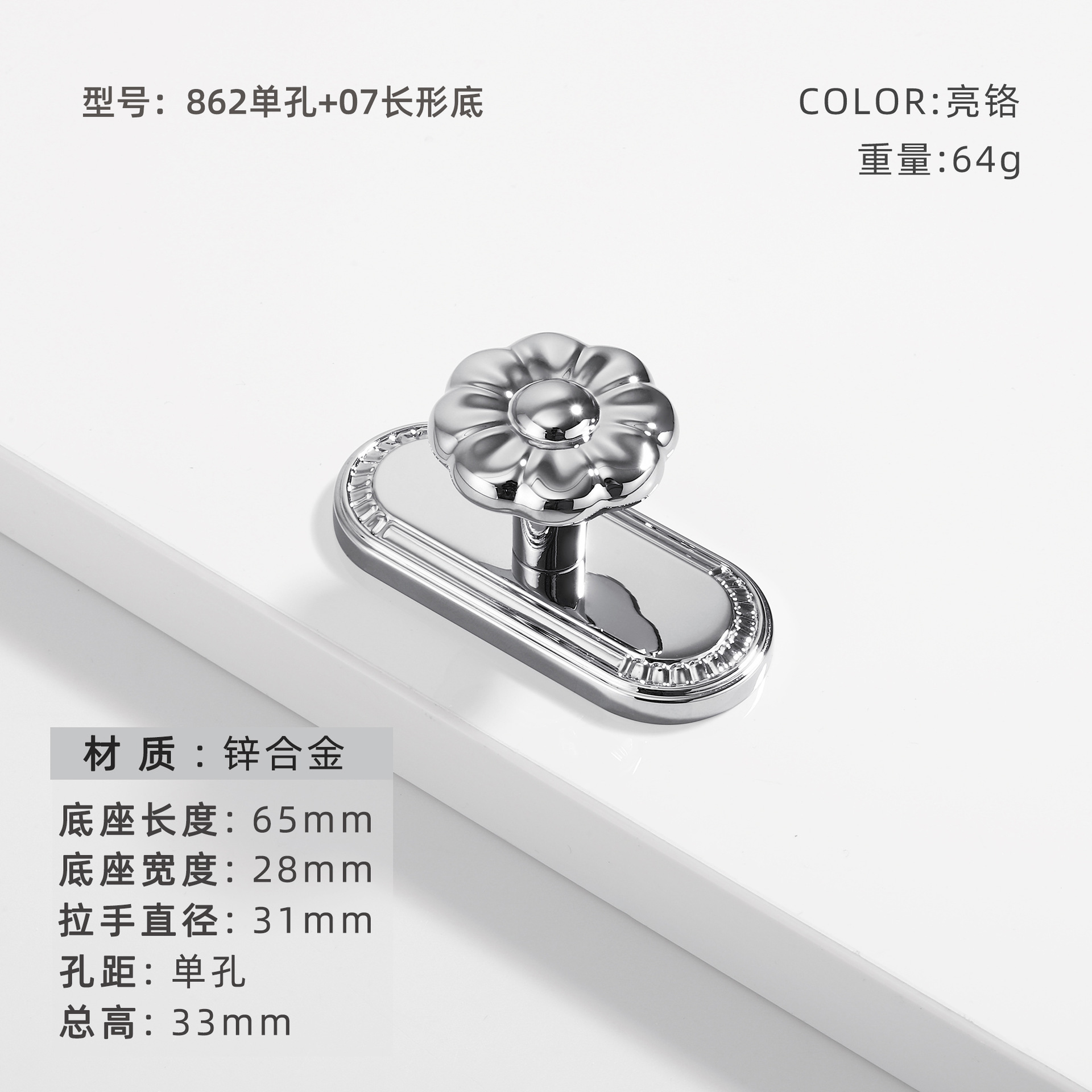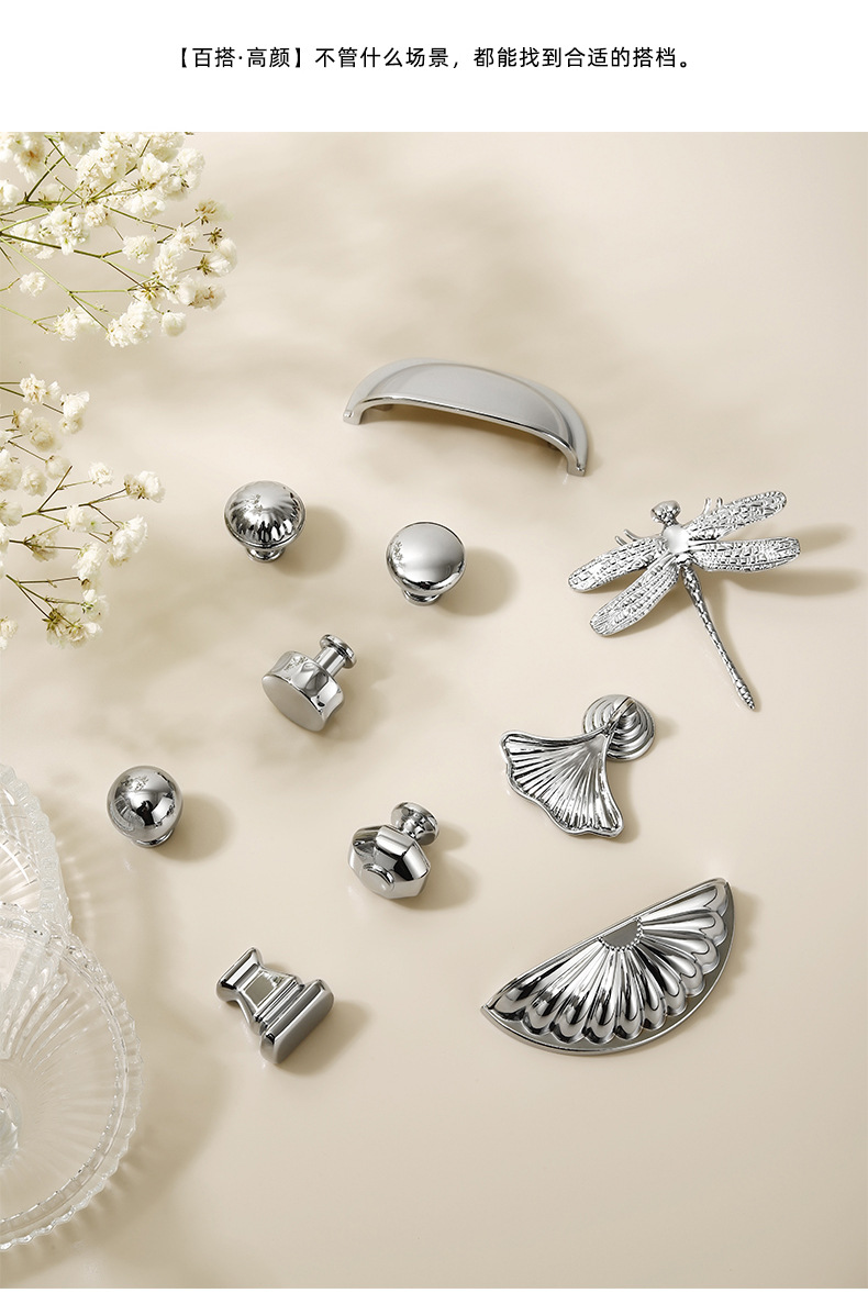 프랑스 아연 합금 옷장 문 손잡이 현대 간단한 크롬 도금 밝은 실버 서랍 단일 구멍 캐비닛 단단한 손잡이