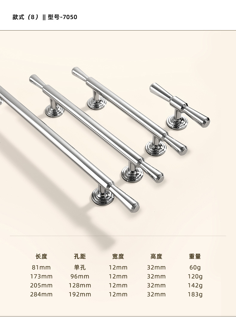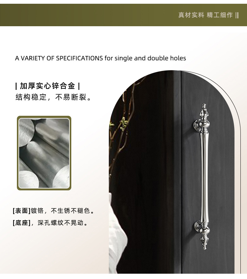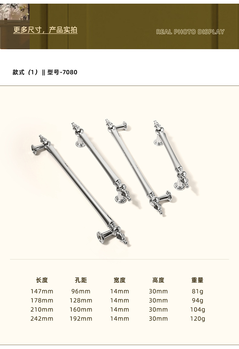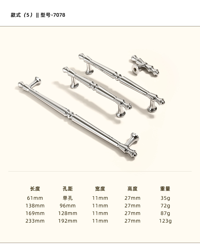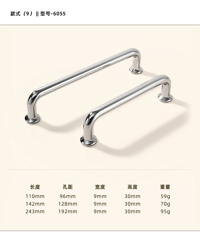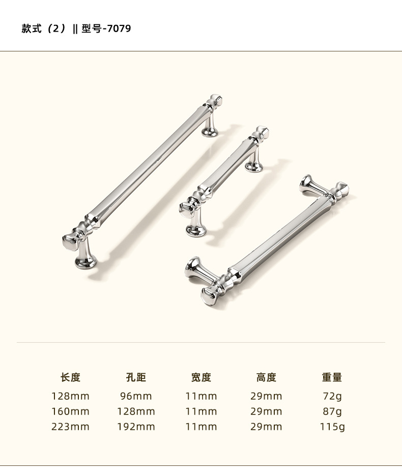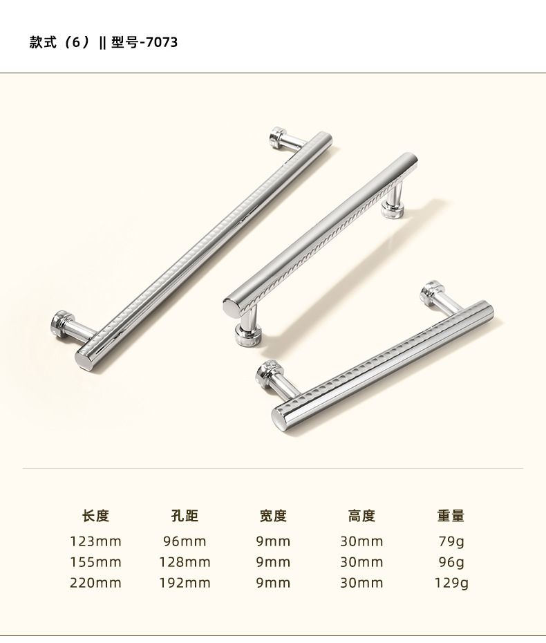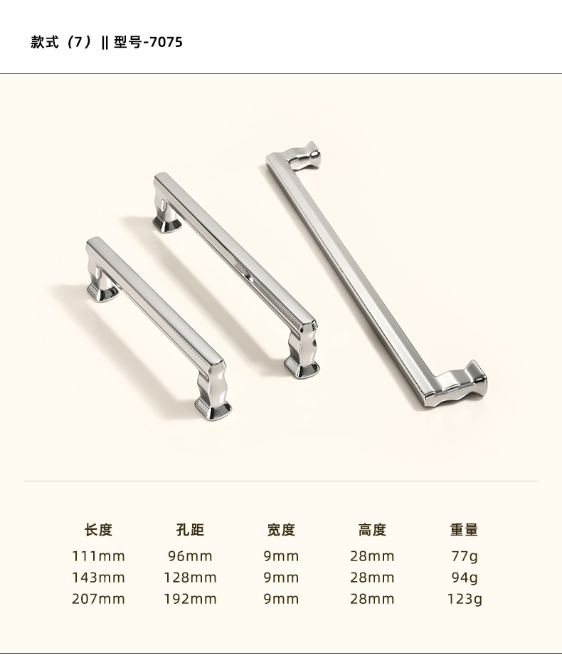 프랑스 아연 합금 옷장 문 손잡이 현대 간단한 크롬 도금 밝은 실버 서랍 단일 구멍 캐비닛 단단한 손잡이