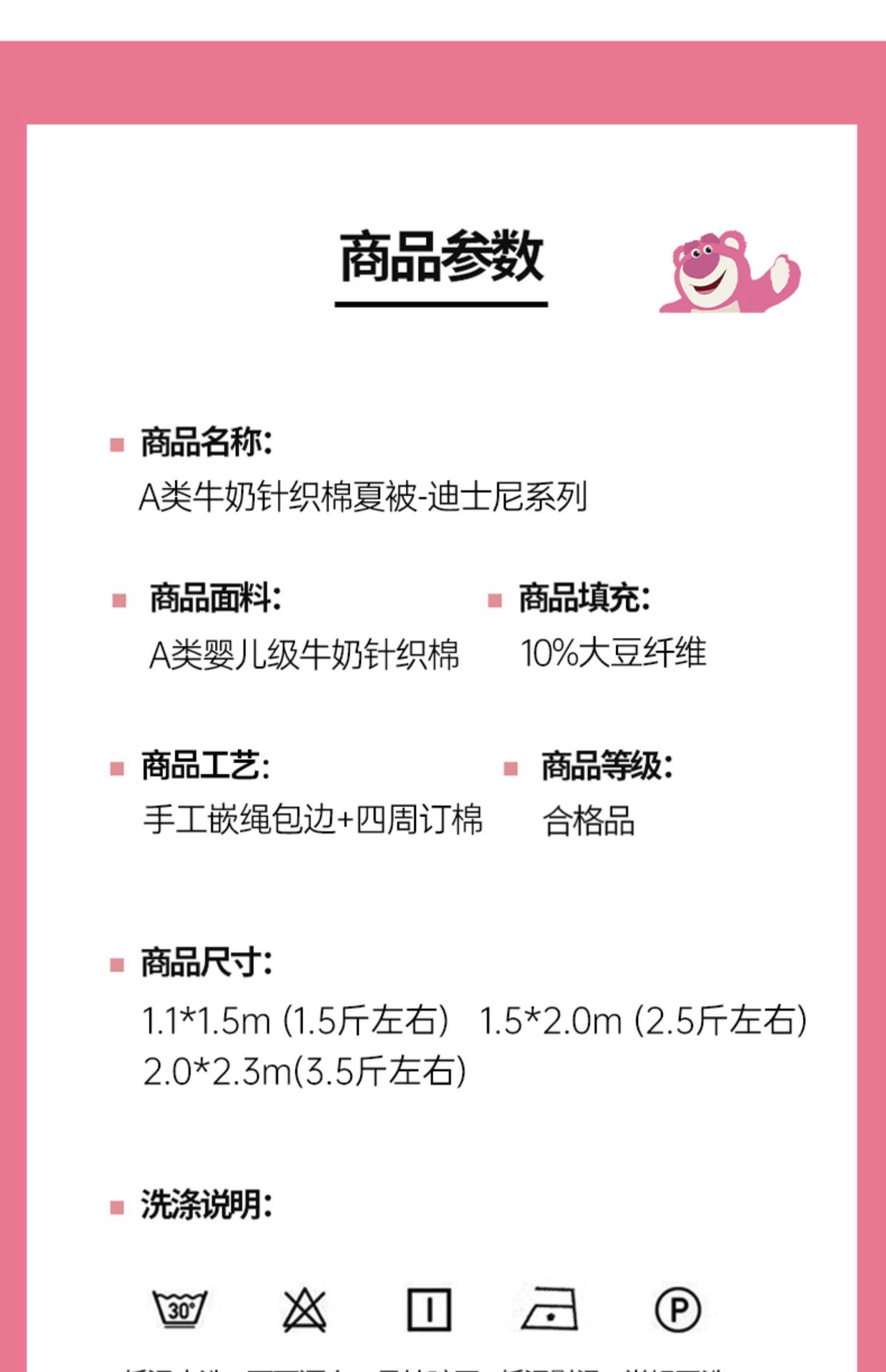 • 디즈니랜드 [대두면 충전재 전체, 뭉침 없이 세탁기로 세탁 가능]