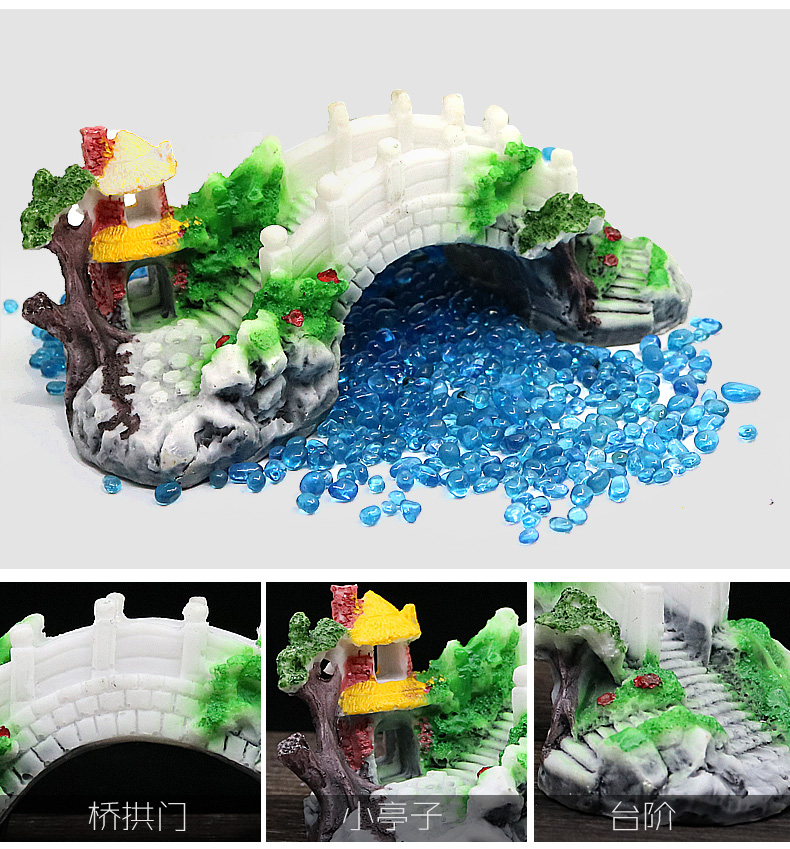물고기 탱크 수족관 풍경 장식 아치 다리 공예 물고기 탱크 바위 파빌리온 돌 다리 풍경 Xu Xiao