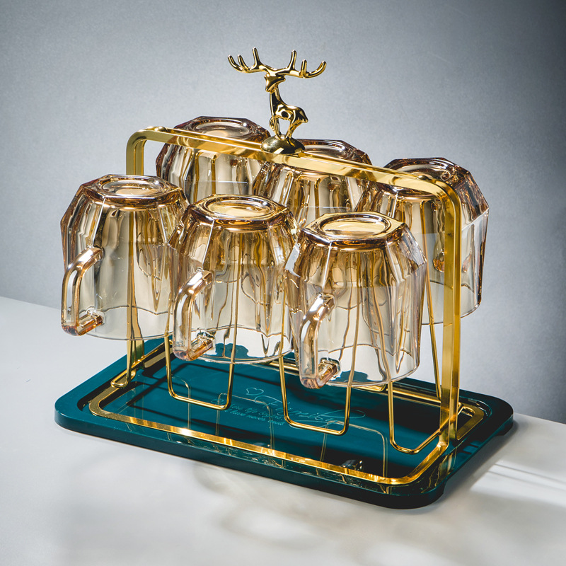 • 호박색 육각형 컵 6개 + 배수 트레이⚑⚑