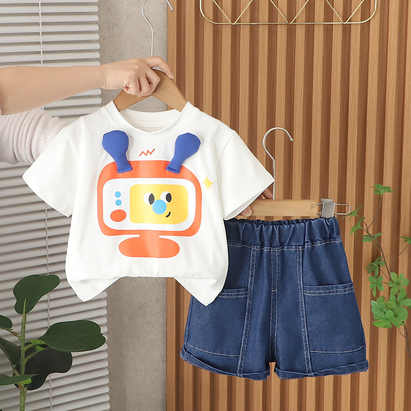 남학생 여름 세트 2025 새로운 아기 대학 스타일 반팔 투피스 유행 어린이 여름 폴로 셔츠 아동복스토어 가기