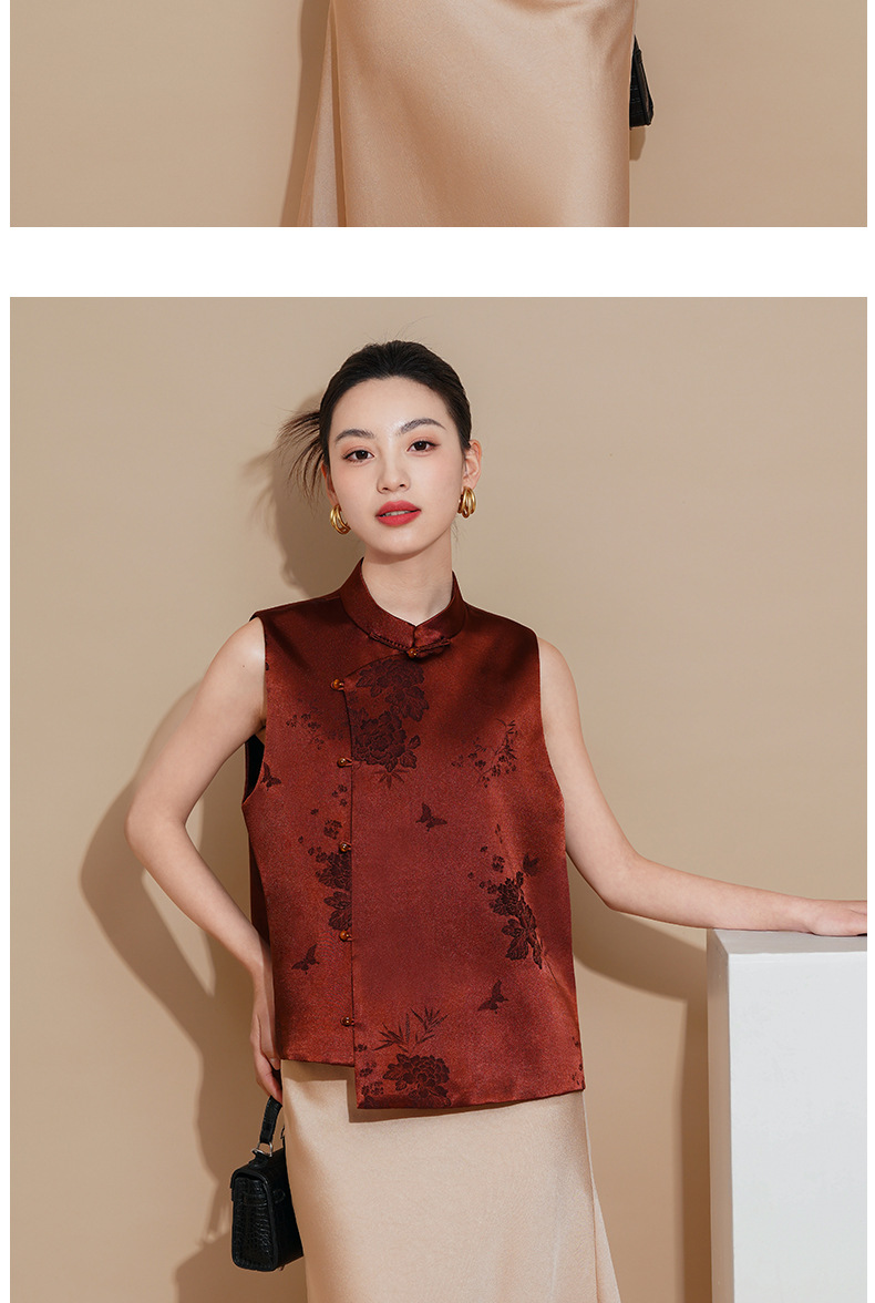 봄과 여름 새로운 중국 어머니 옷 여성 국가 스타일 청삼 조끼 여성 패션 연령 감소 카디건 수직 칼라 재킷